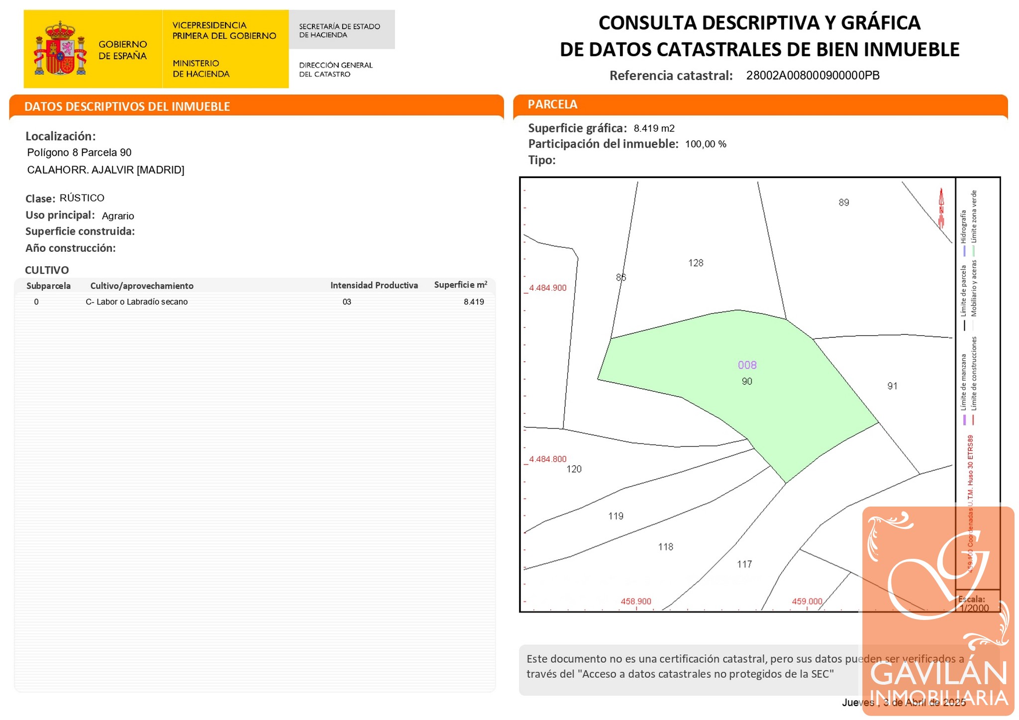 Cultivo actual: Secano – herbáceas (apta para cereal u otros cultivos similares)