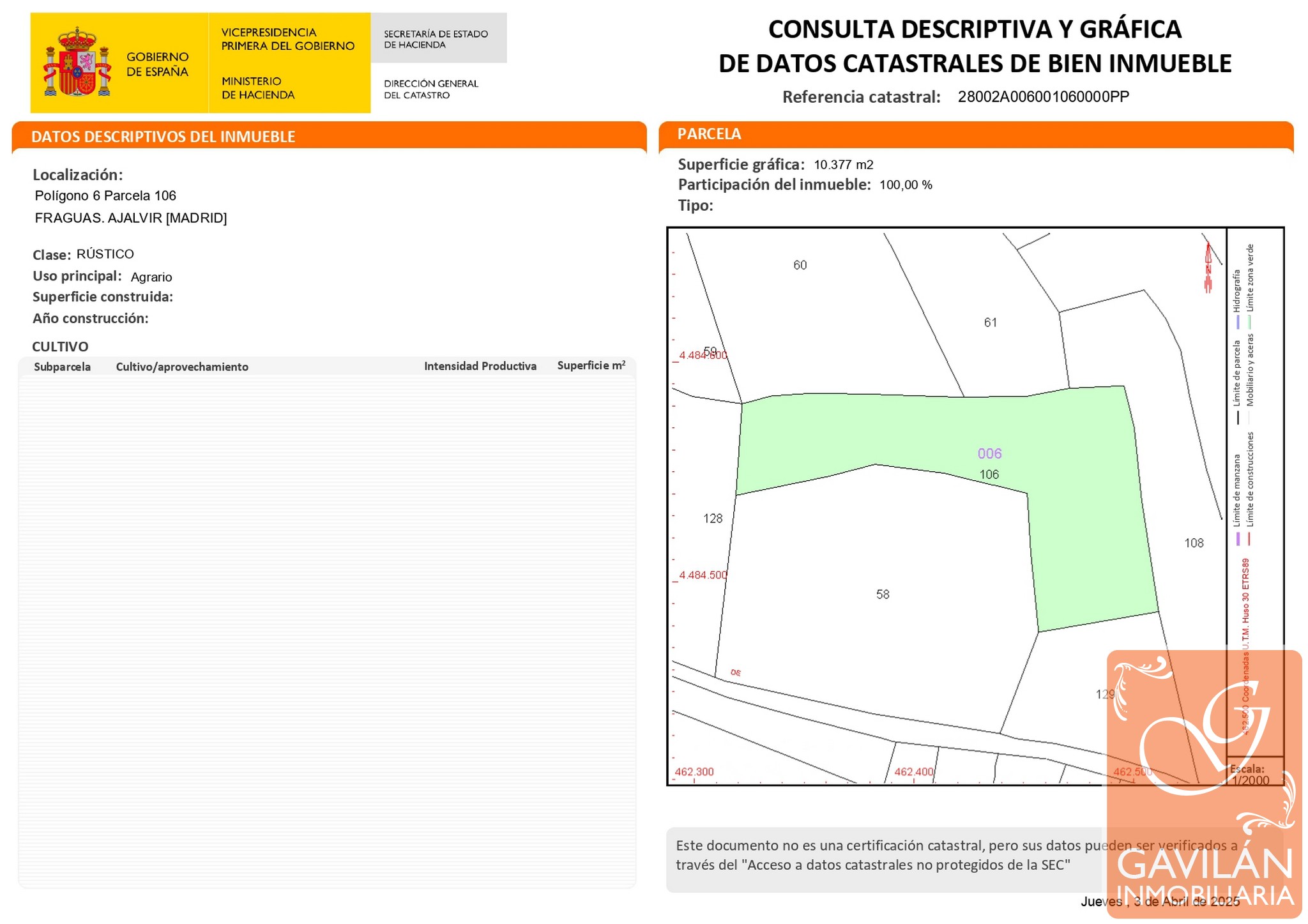 Oportunidad única para adquirir una parcela rústica de 8.540m² en el término municipal de Ajalvir (Madrid), ideal para uso agrícola, recreativo o como inversión a largo plazo.