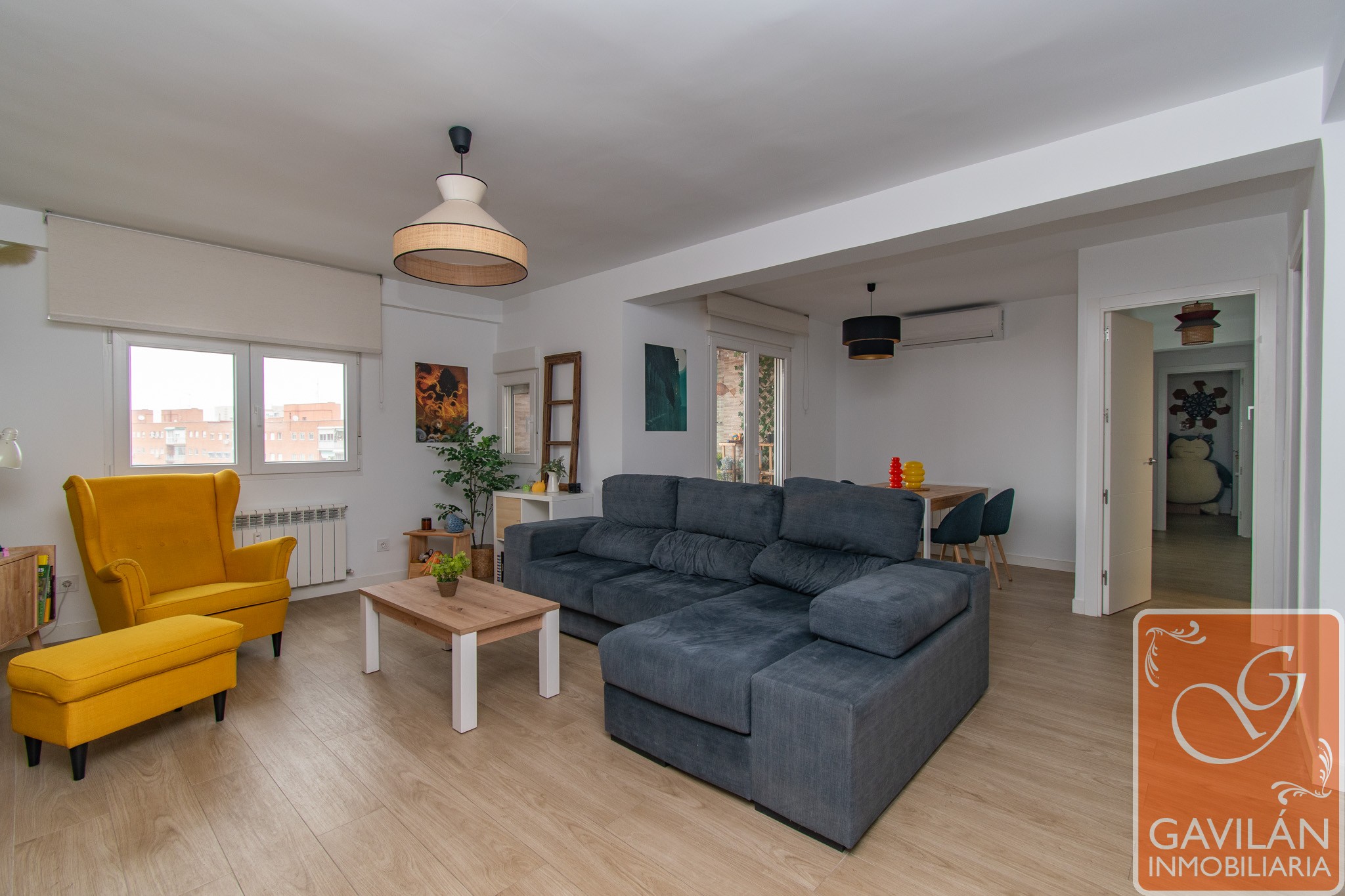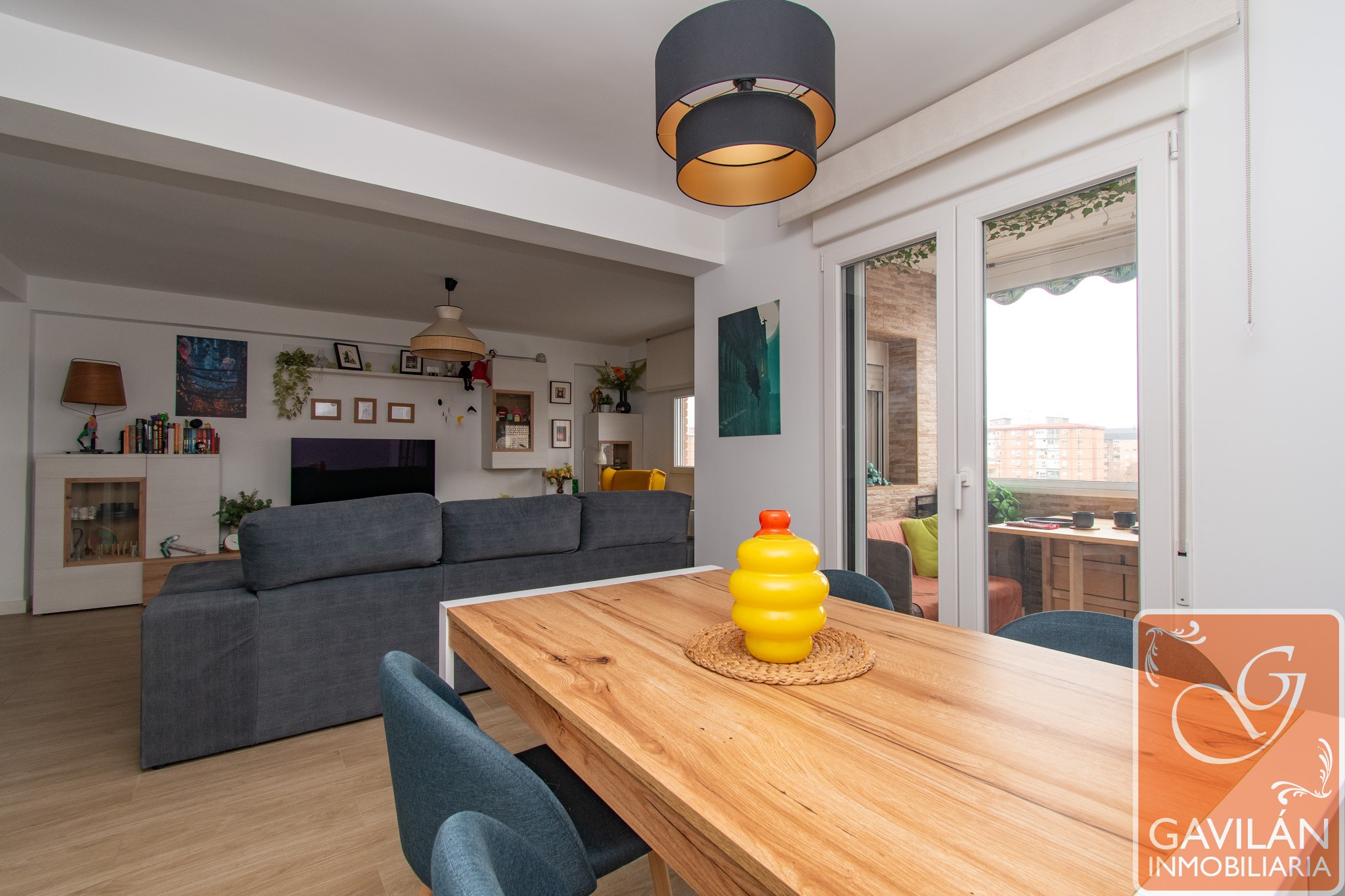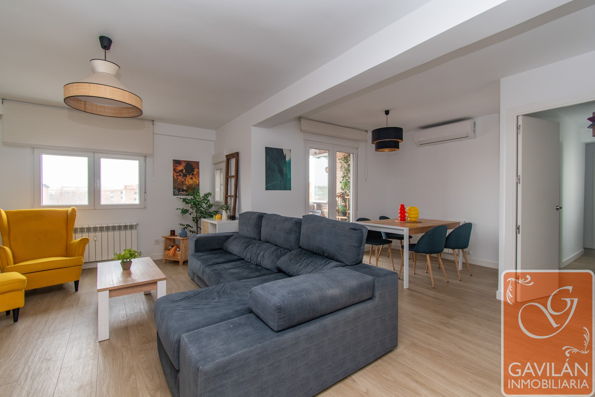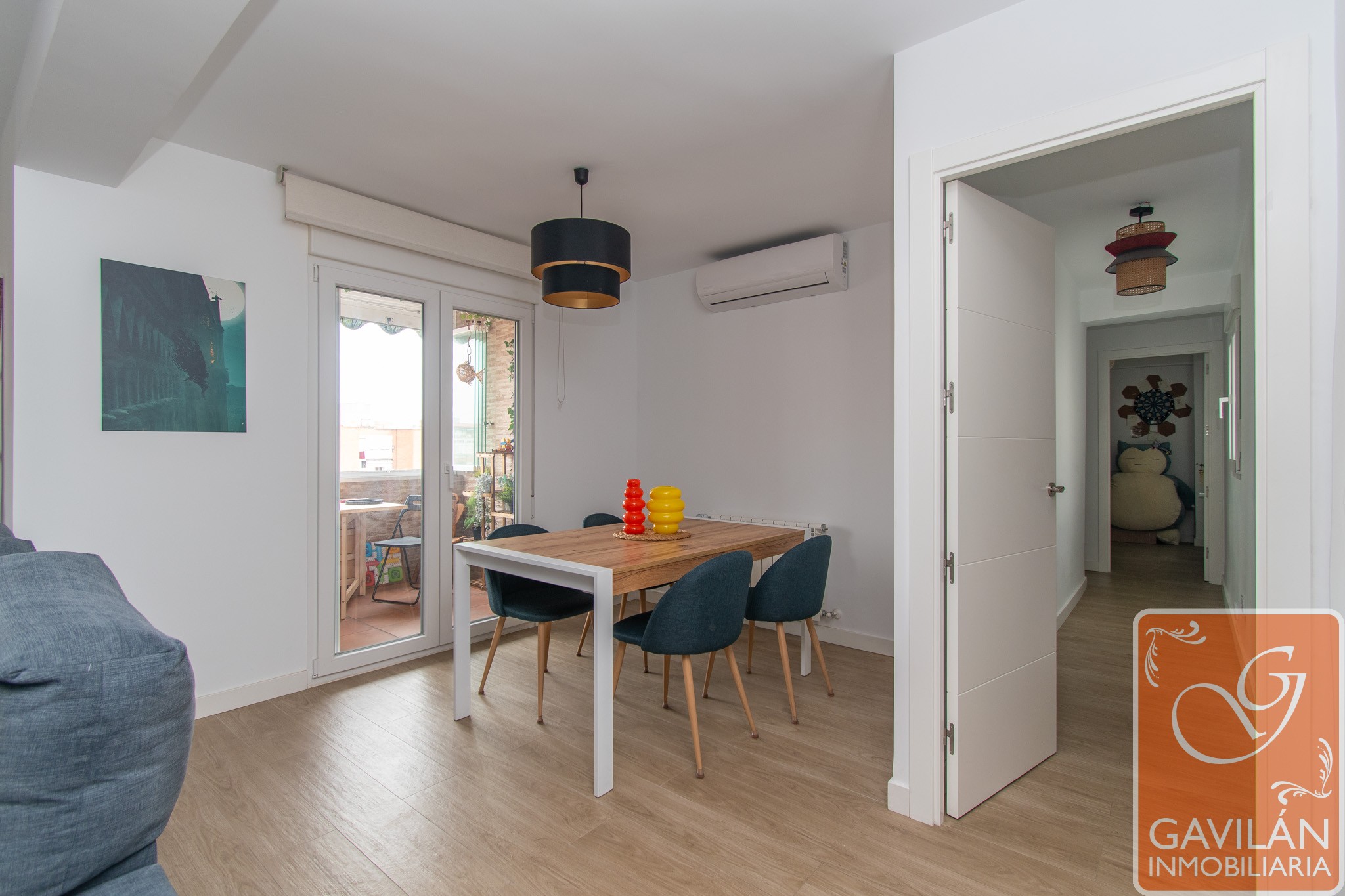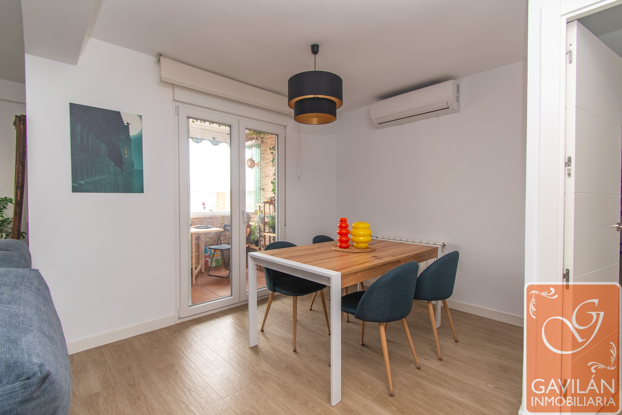 Avanzamos hacia el salón, amplio y muy luminoso, un espacio pensado para disfrutar tanto del día a día como de reuniones con familia y amigos. La reforma ha optimizado su distribución, integrando un dormitorio adicional y mejorando el acceso a la terraza. Cuenta con aire acondicionado con bomba de calor y conexión ethernet, aportando confort y versatilidad durante todo el año.