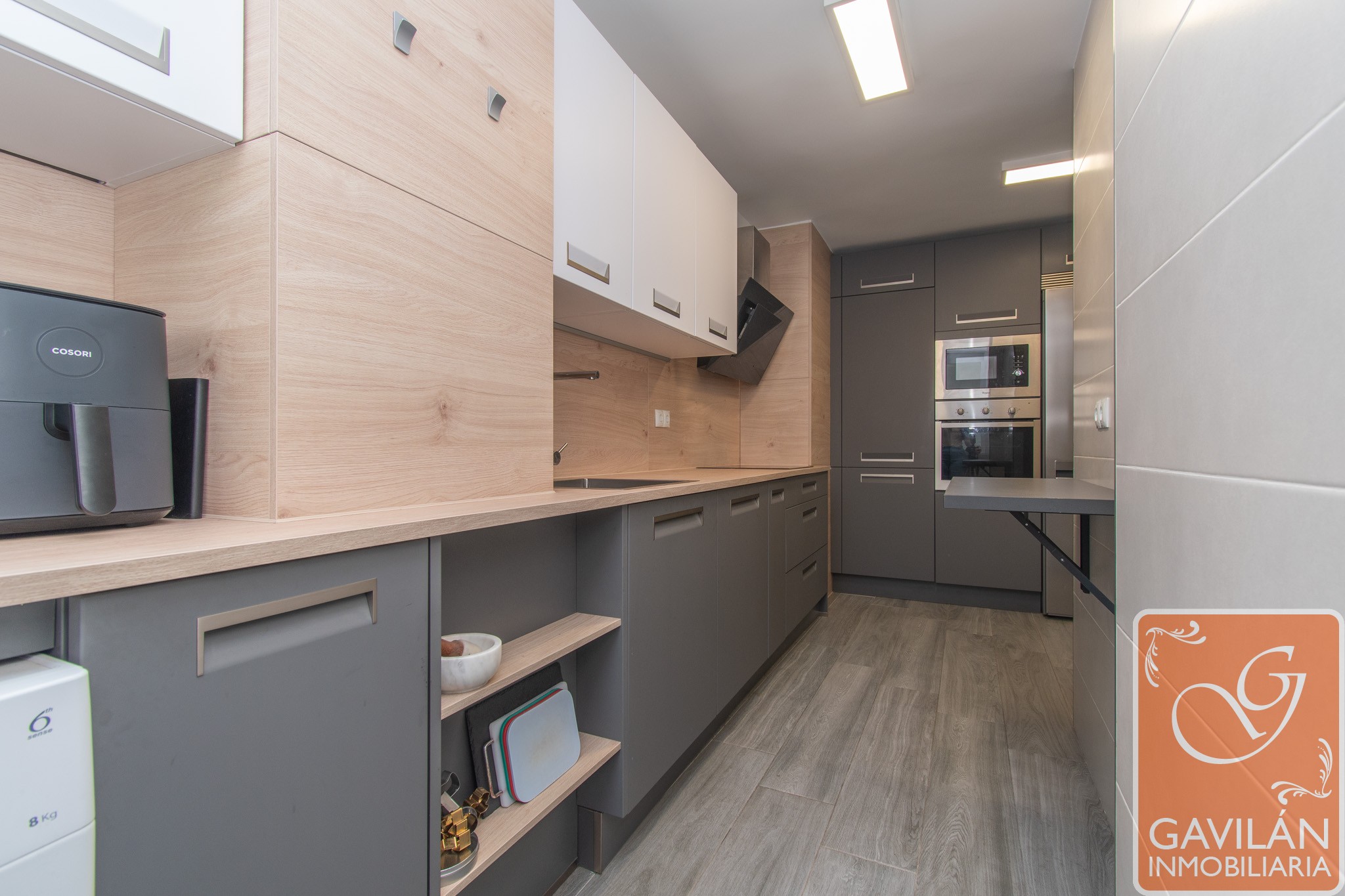 La cocina moderna y funcional, equipada con electrodomésticos integrados de primeras marcas, pensada para un uso diario cómodo y eficiente.