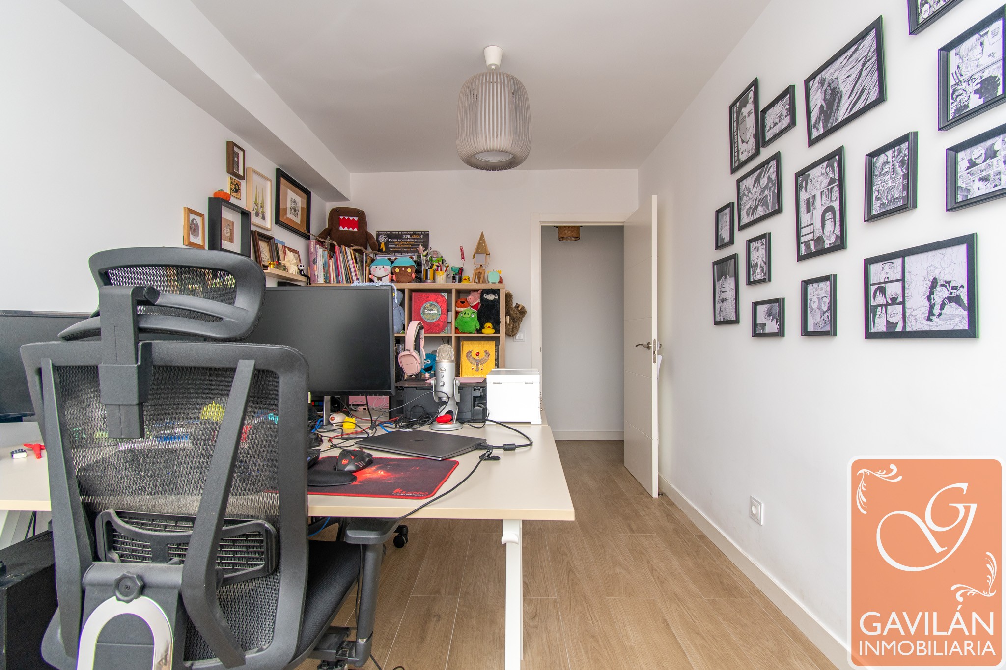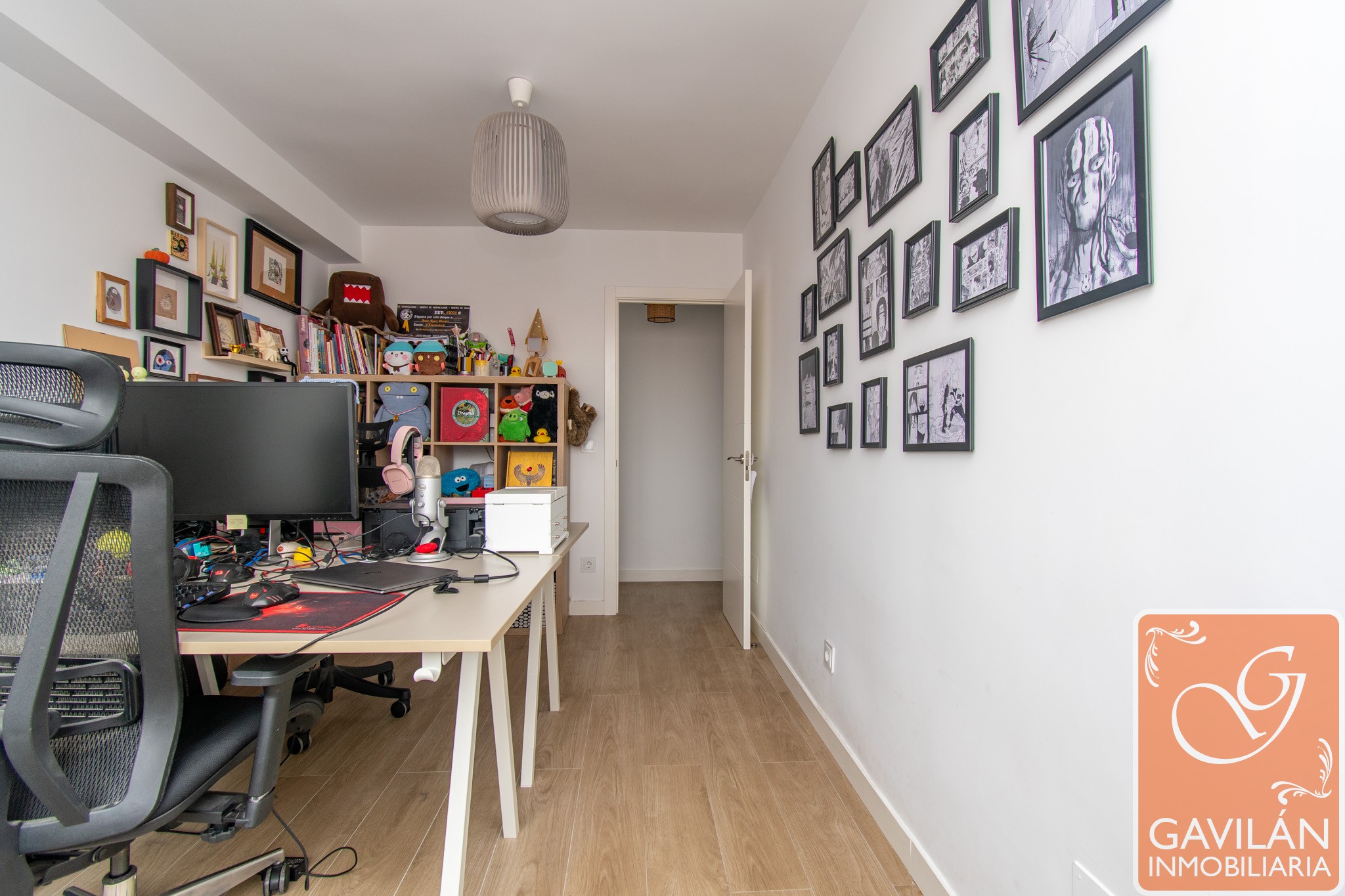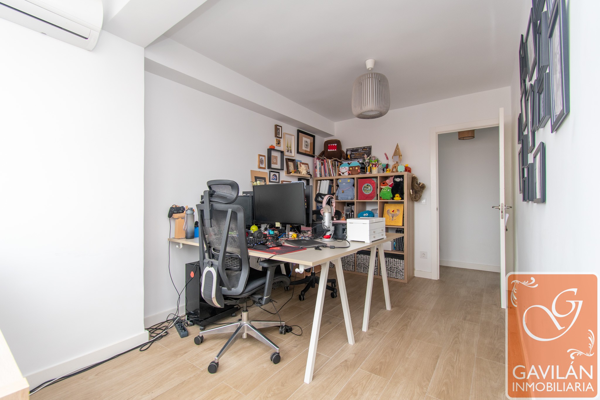 La zona de descanso se compone de tres dormitorios. El dormitorio principal es tranquilo y acogedor, equipado con aire acondicionado con bomba de calor. El segundo dormitorio, actualmente utilizado como despacho, destaca por su amplitud, luminosidad y conexiones ethernet, ideal tanto para teletrabajo como dormitorio juvenil. El tercer dormitorio es perfecto como habitación auxiliar, infantil o de invitados.