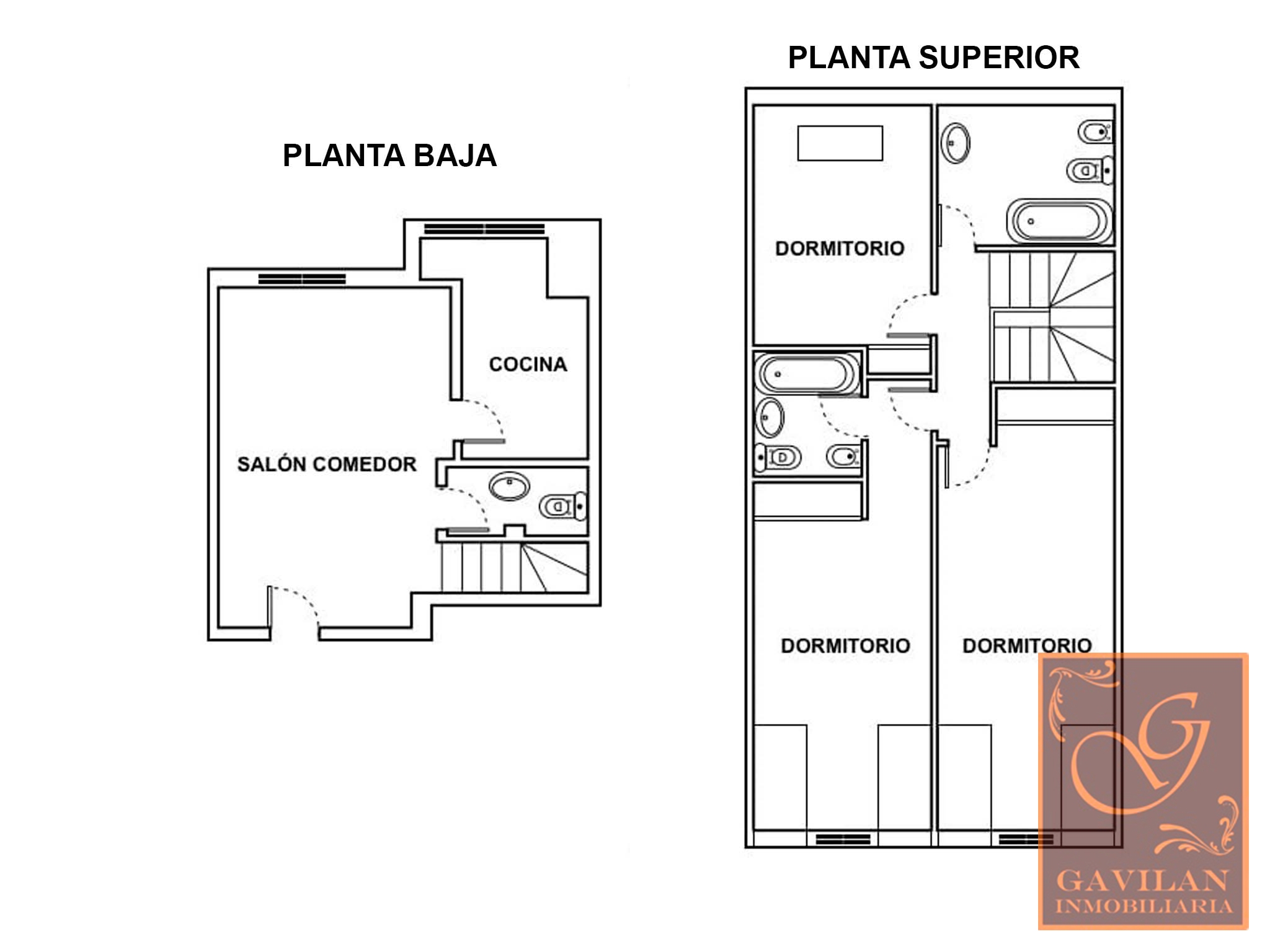 Esta vivienda cuenta con la siguiente distribución: En la planta baja encontramos salón comedor de 17m², cocina totalmente amueblada y equipada con electrodomésticos básicos y aseo.
