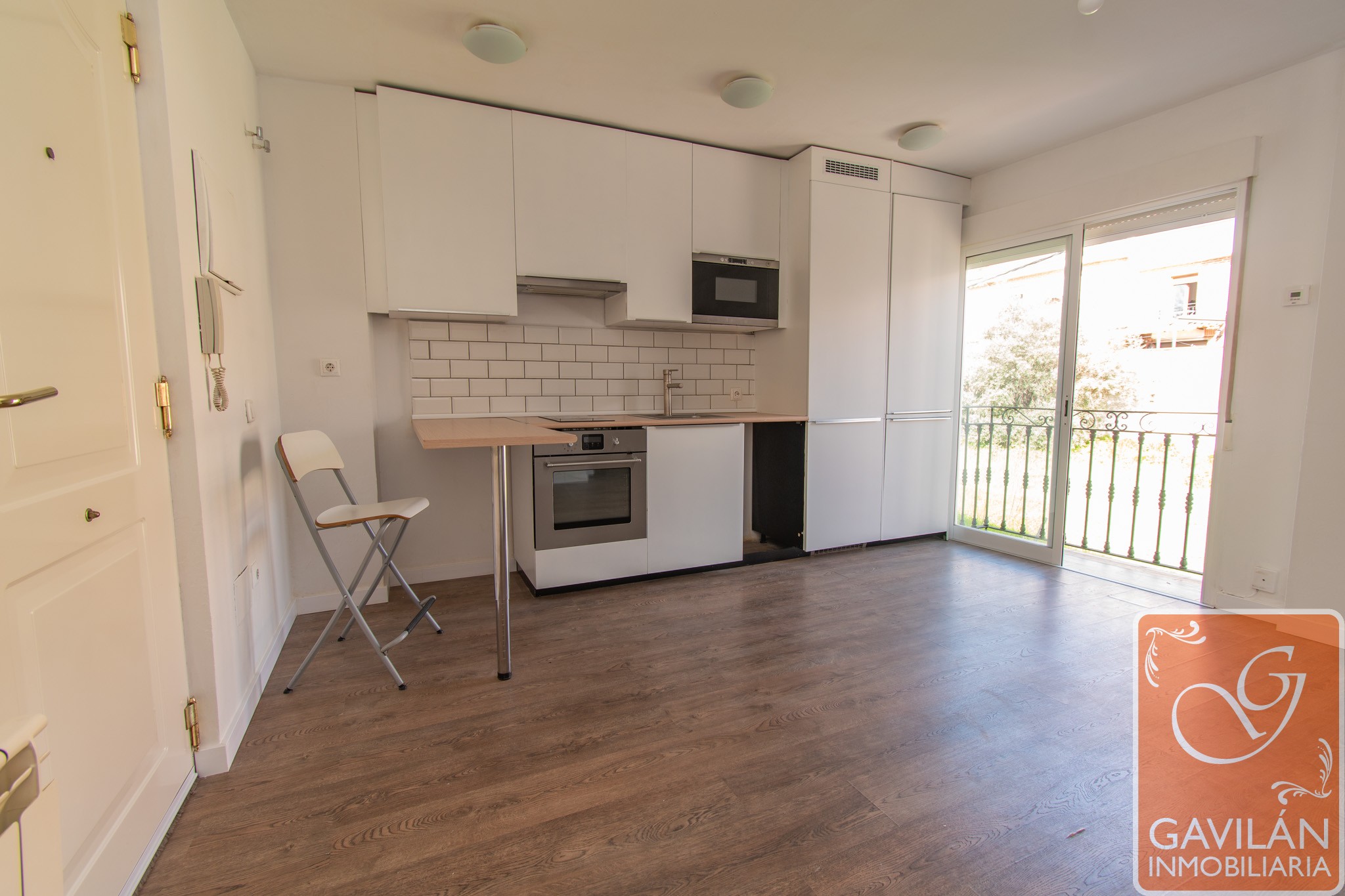 En la planta principal accedemos a un agradable salón con cocina integrada de concepto abierto totalmente equipada con muebles y electrodomésticos, desde aquí se accede a un práctico balcón que aporta ventilación y luminosidad al conjunto aportando ese extra de luz y desahogo que marca la diferencia.