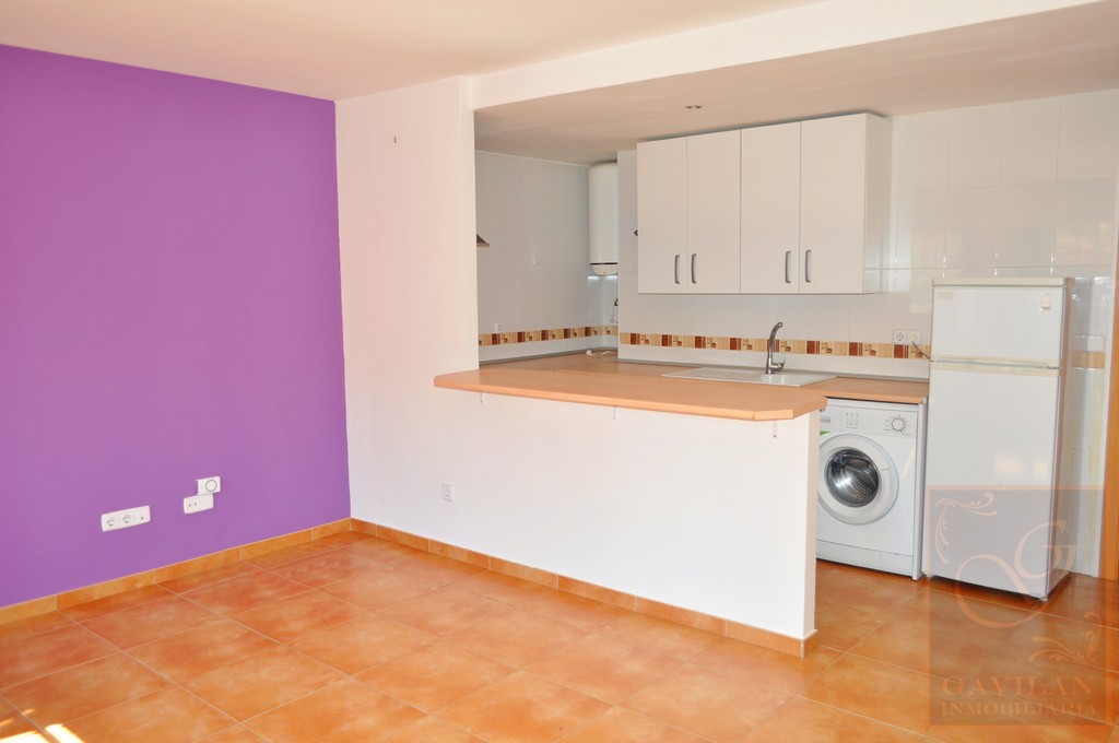 La vivienda se distribuye en salón de 16m² con cocina americana amueblada y equipada con electrodomésticos básicos, un dormitorio doble con armario empotrado y un baño con plato de ducha y mampara.