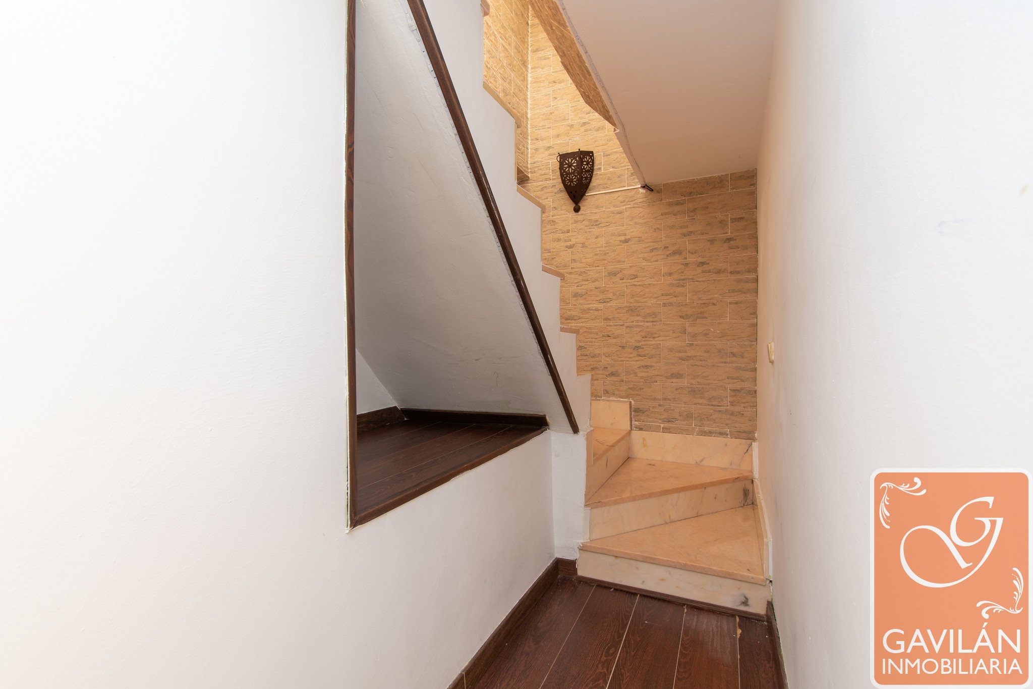 Esta vivienda está distribuida en cuatro plantas. En la planta baja encontramos patio delantero totalmente solado y con porche techado de madera. Salón comedor de 21m², cocina totalmente amueblada y equipada con electrodomésticos básicos y aseo en esta misma planta.