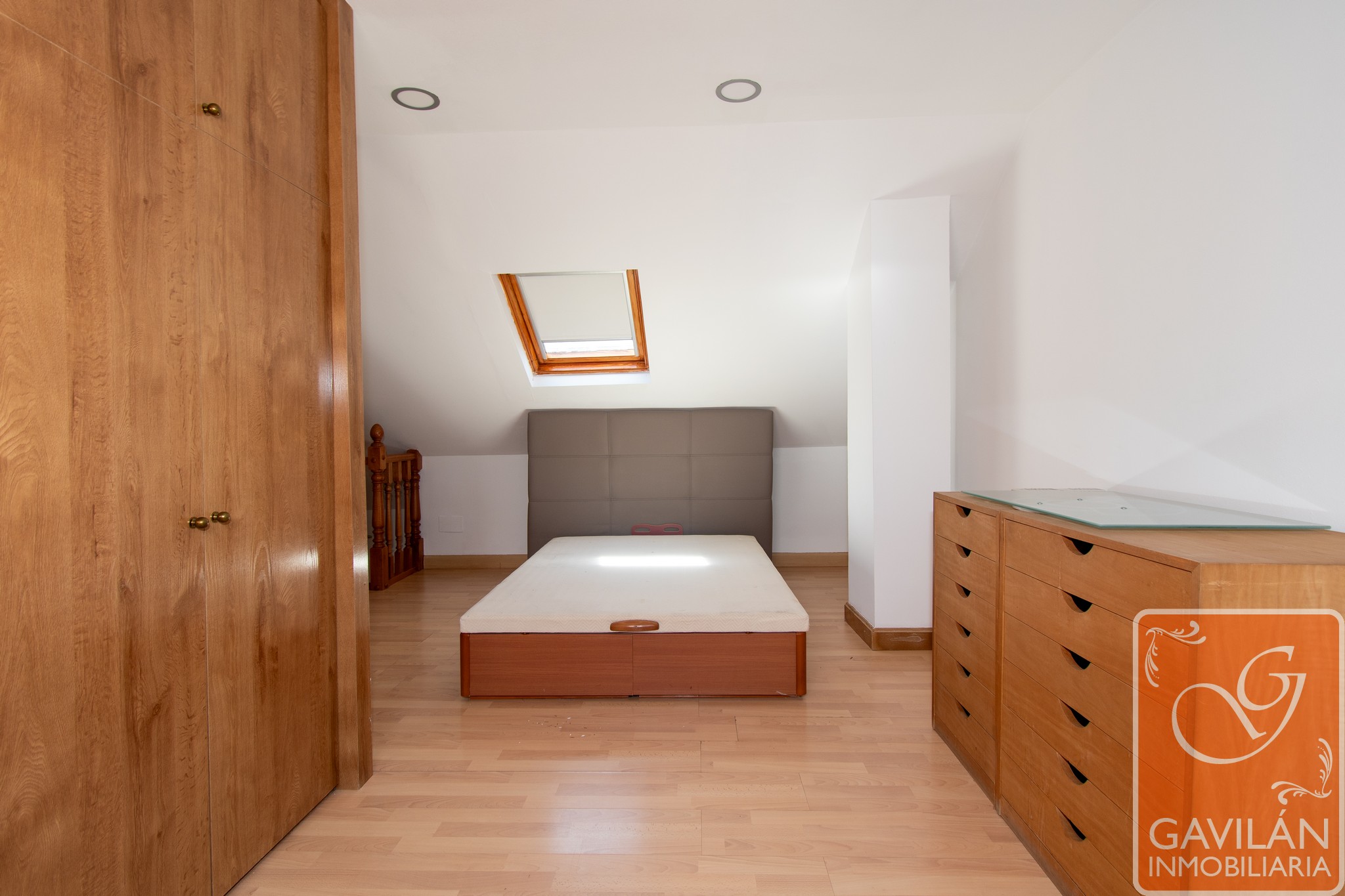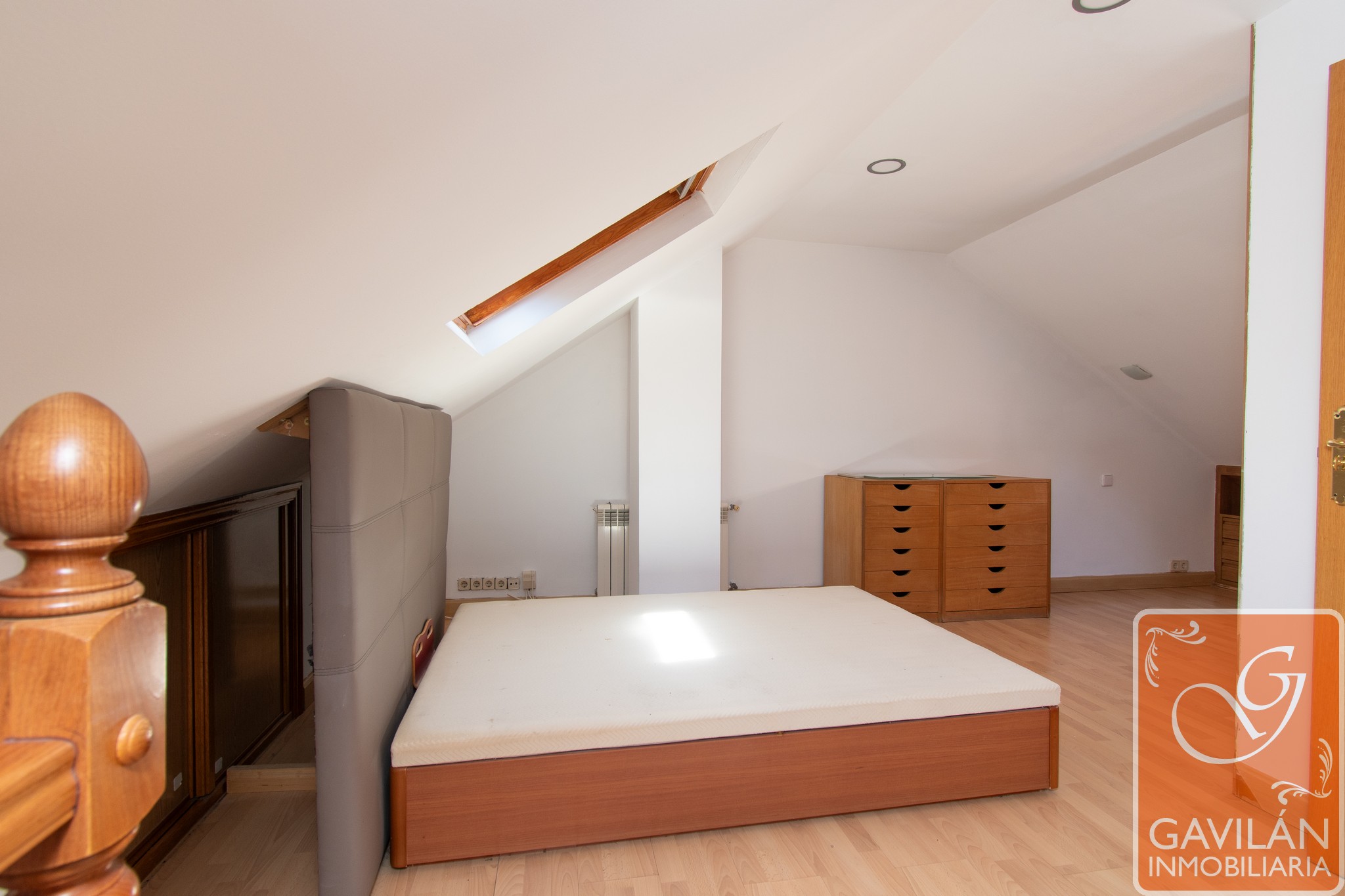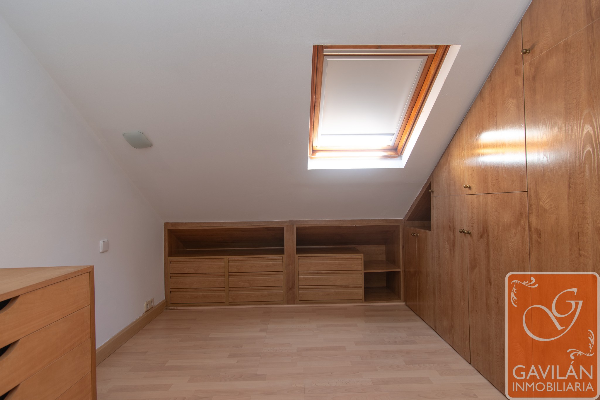 En la luminosa buhardilla gracias a los Velux que dejan pasar la luz natural se encuentra el dormitorio principal, armarios bajo cubierta y vestidor. También dispone de un bonito baño completo con bañera hidromasaje, halógenos y Velux.