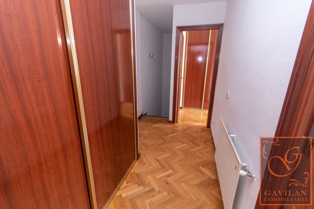 En la primera planta se encuentran los 2 dormitorios, el principal fue reformado, convirtiéndolo en un gran dormitorio de matrimonio con 2 armarios empotrados y gran ventanal. Otro dormitorio pensado para los mas pequeños. Baño completo con bañera. En el pasillo distribuidor nos encontramos un amplio armario empotrado de 2 cuerpos.