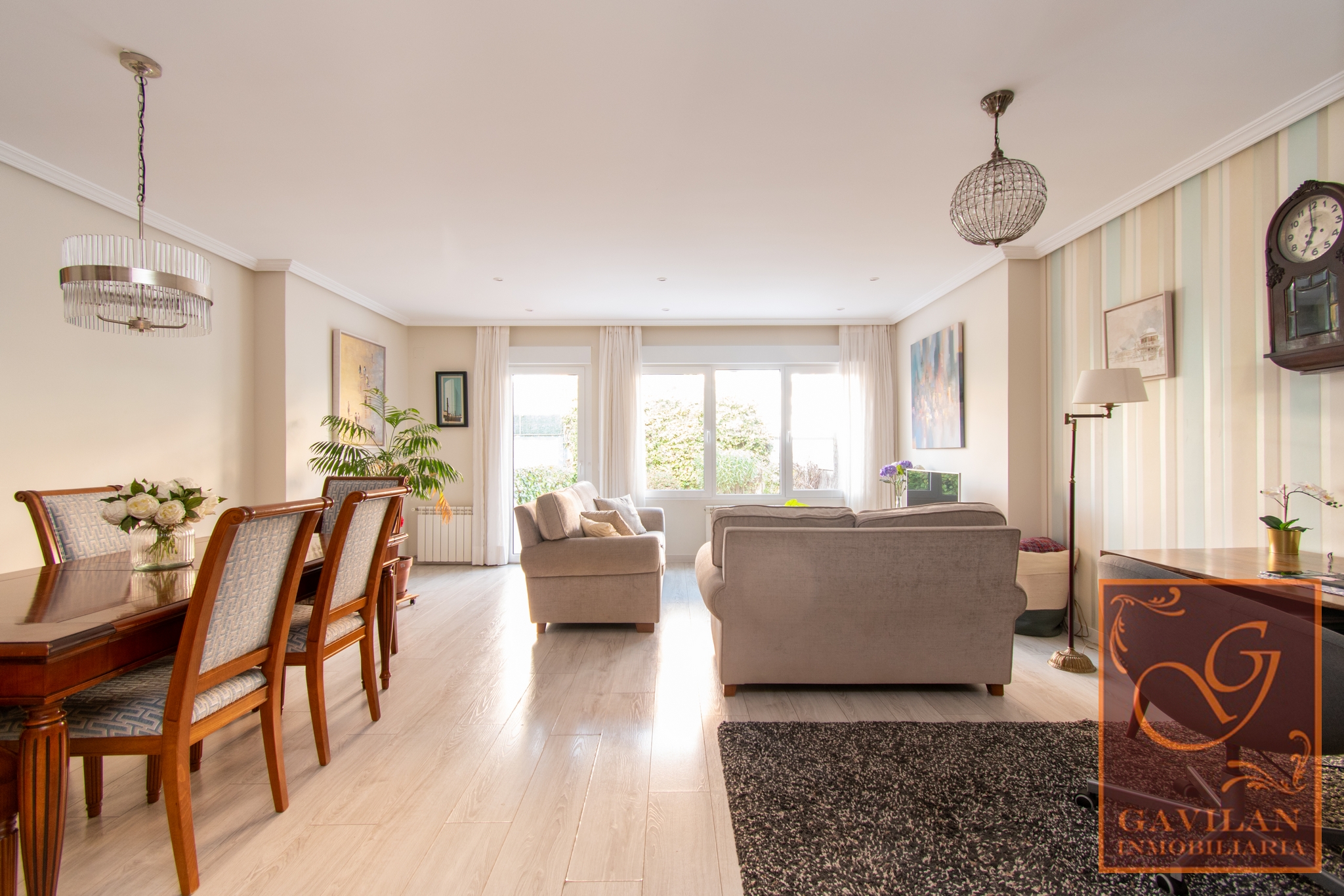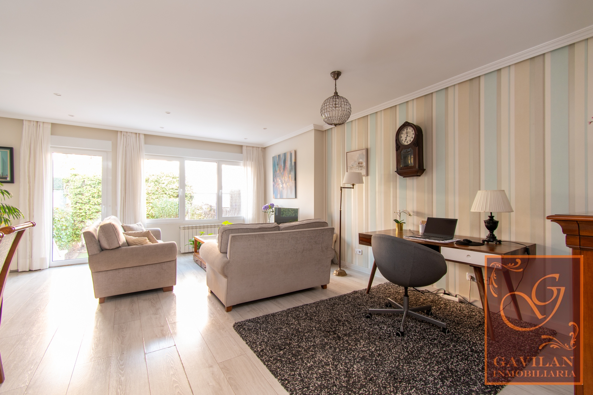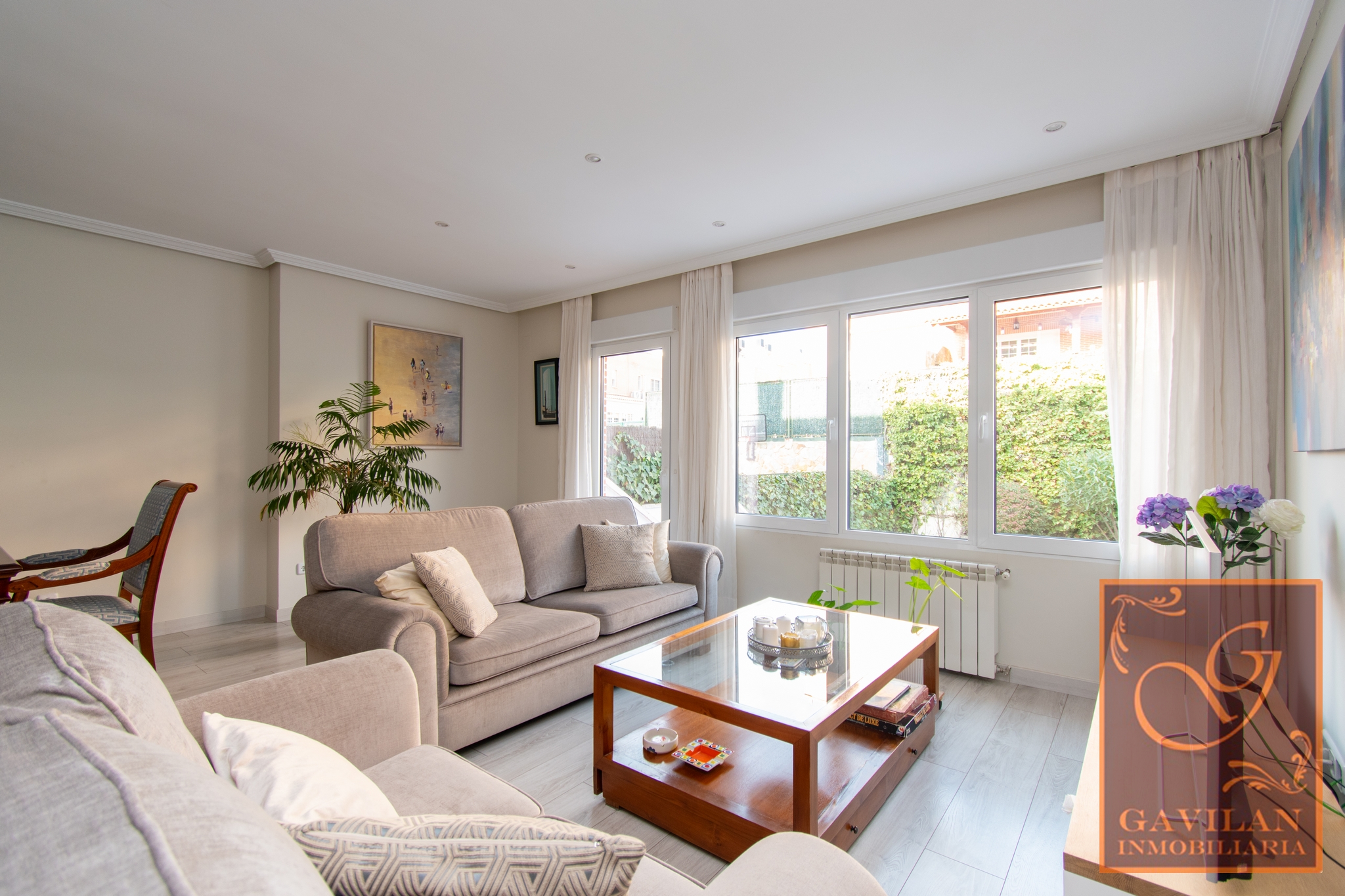 Esta fabulosa vivienda cuenta con la siguiente distribución: Patio delantero de entrada con acceso al garaje y a la vivienda a través de porche acristalado. Hall recibidor con armario empotrado, amplia cocina de 15m² amueblada y equipada con electrodomésticos básicos. Precioso salón comedor de 37m² desde el que podremos salir al jardín de 62m² equipado con toldo automático, riego automático en jardineras, parte solado y parte en césped artificial. Contamos con aseo en esta planta.