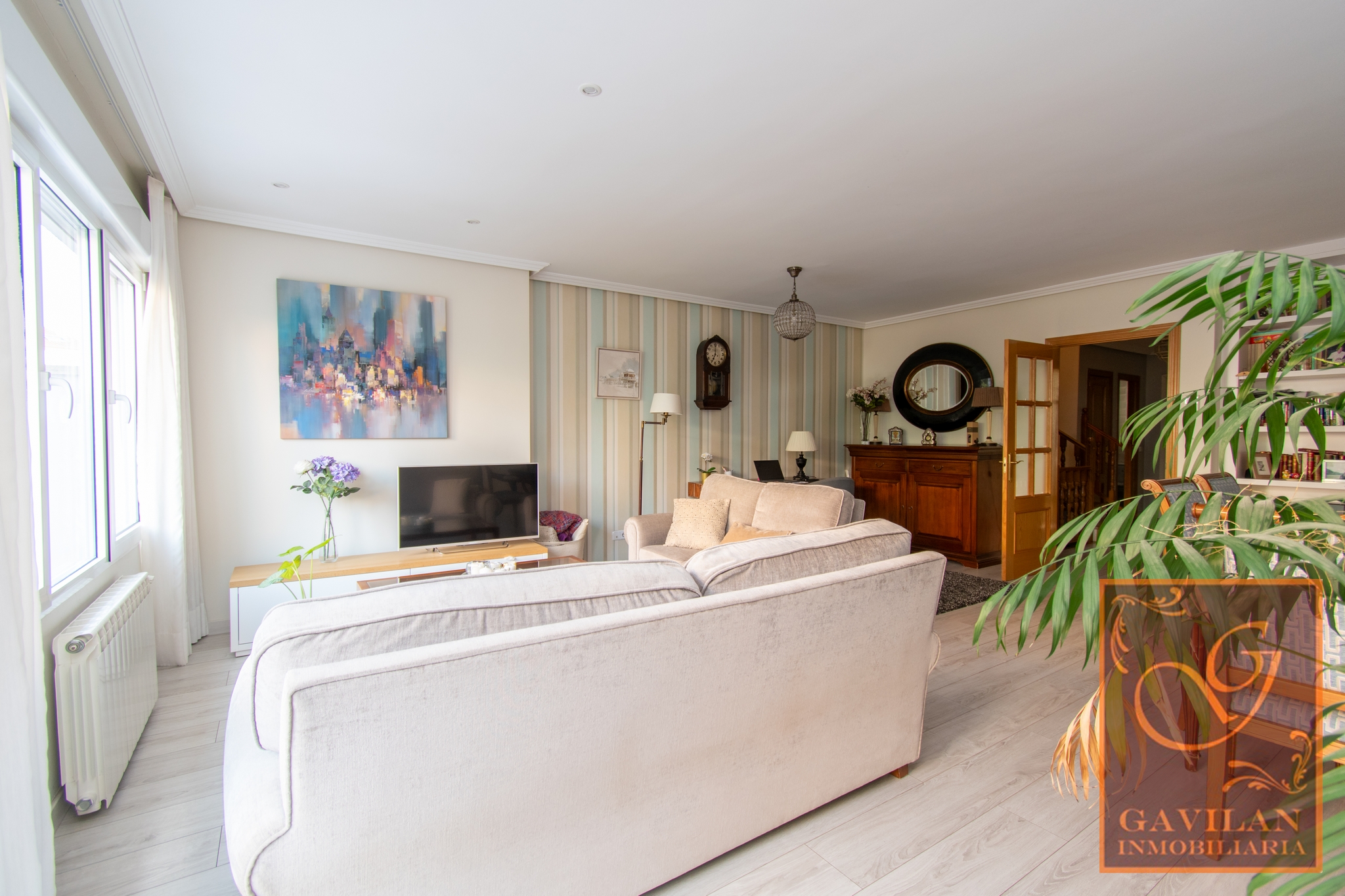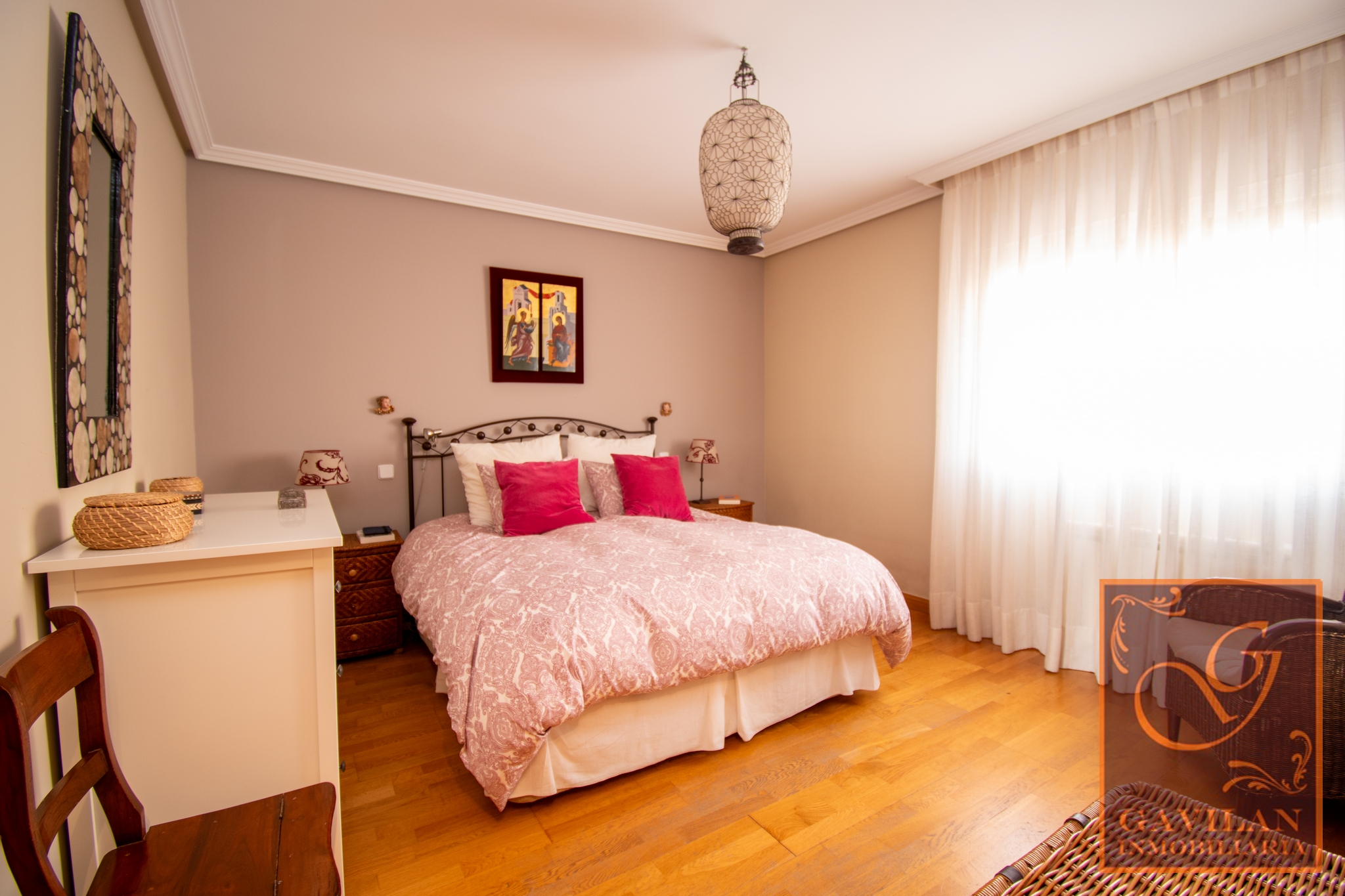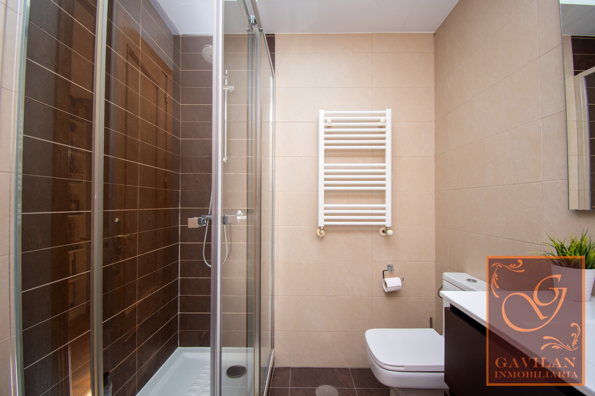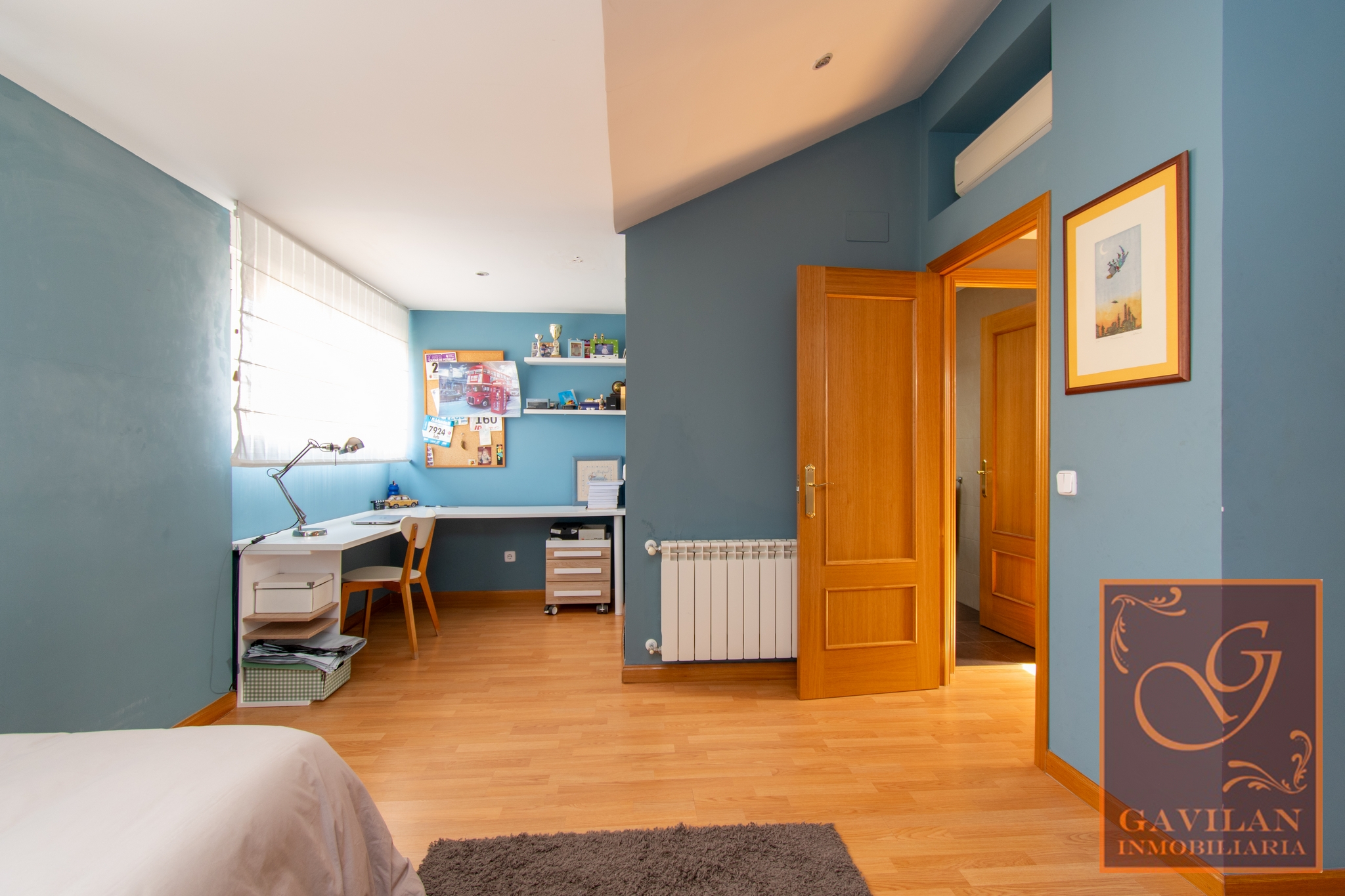 En la primera planta encontramos distribuidor con armario empotrado y 3 dormitorios dobles. El principal es tipo suite, dotado de vestidor y baño privado dentro del dormitorio. Disponemos de otro amplio baño completo equipado con plato de ducha con mampara.