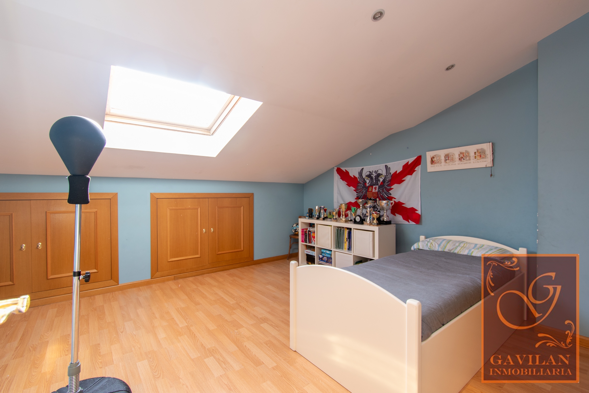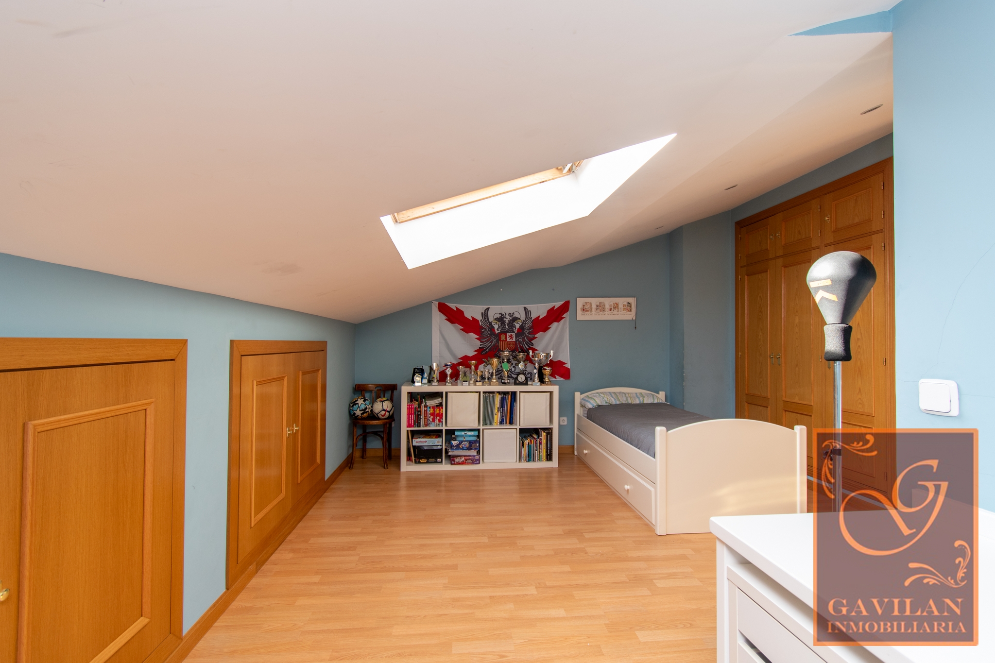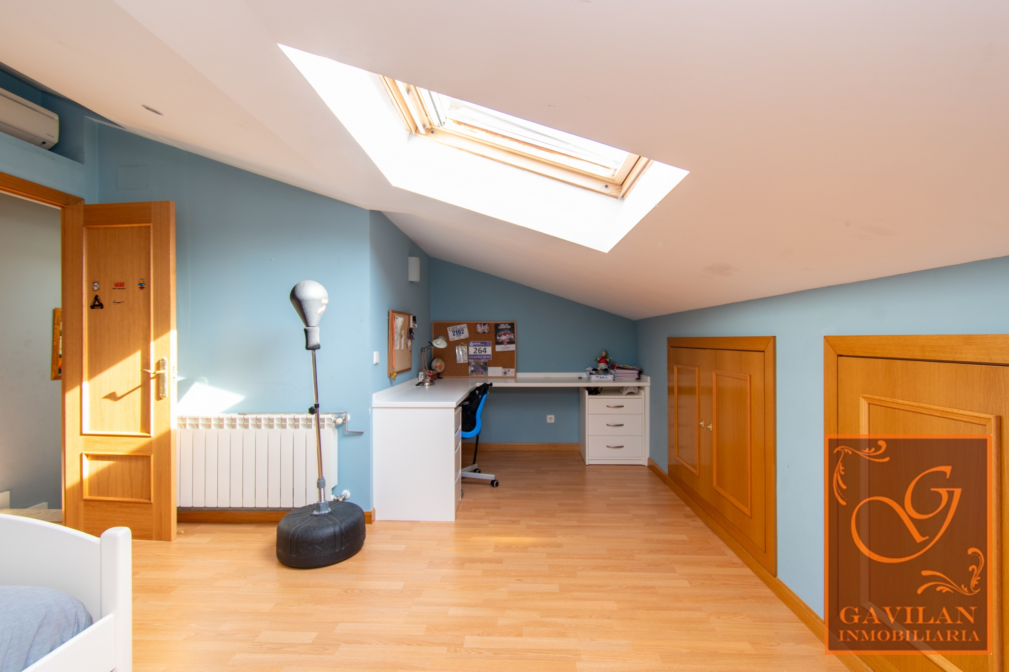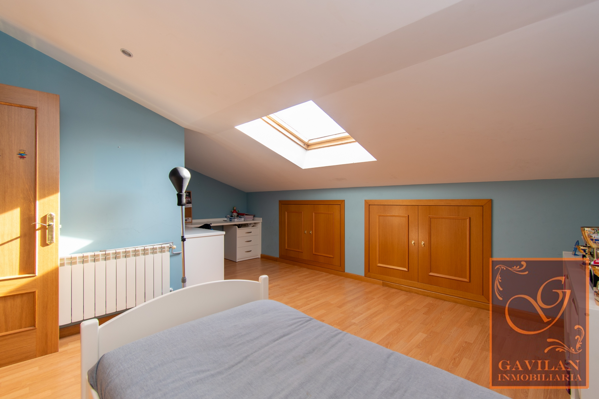 En la escalera de subida a la buhardilla, encontramos una ventana Velux para conseguir iluminación de forma natural. Buhardilla cerrada y totalmente acondicionada con 2 grandes dormitorios uno de 20m² y otro de 19m² con armarios empotrados. Baño con plato de ducha y mampara en esta planta.