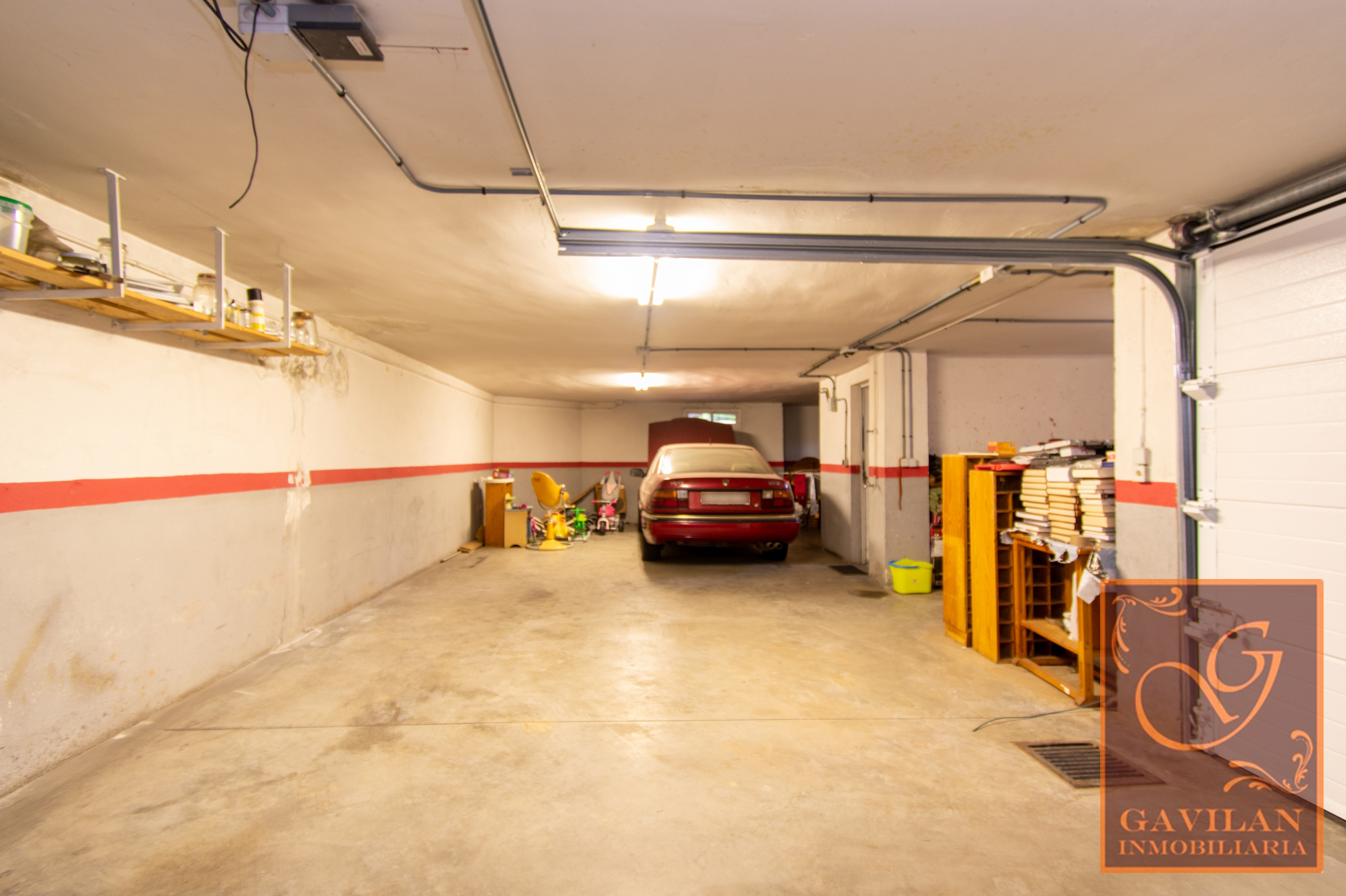 En el amplio garaje de 76m² disponemos de toma de agua, desagüe, ventanas y puerta automática. Perfecto para guardar varios vehículos, trastero, taller, gimnasio...