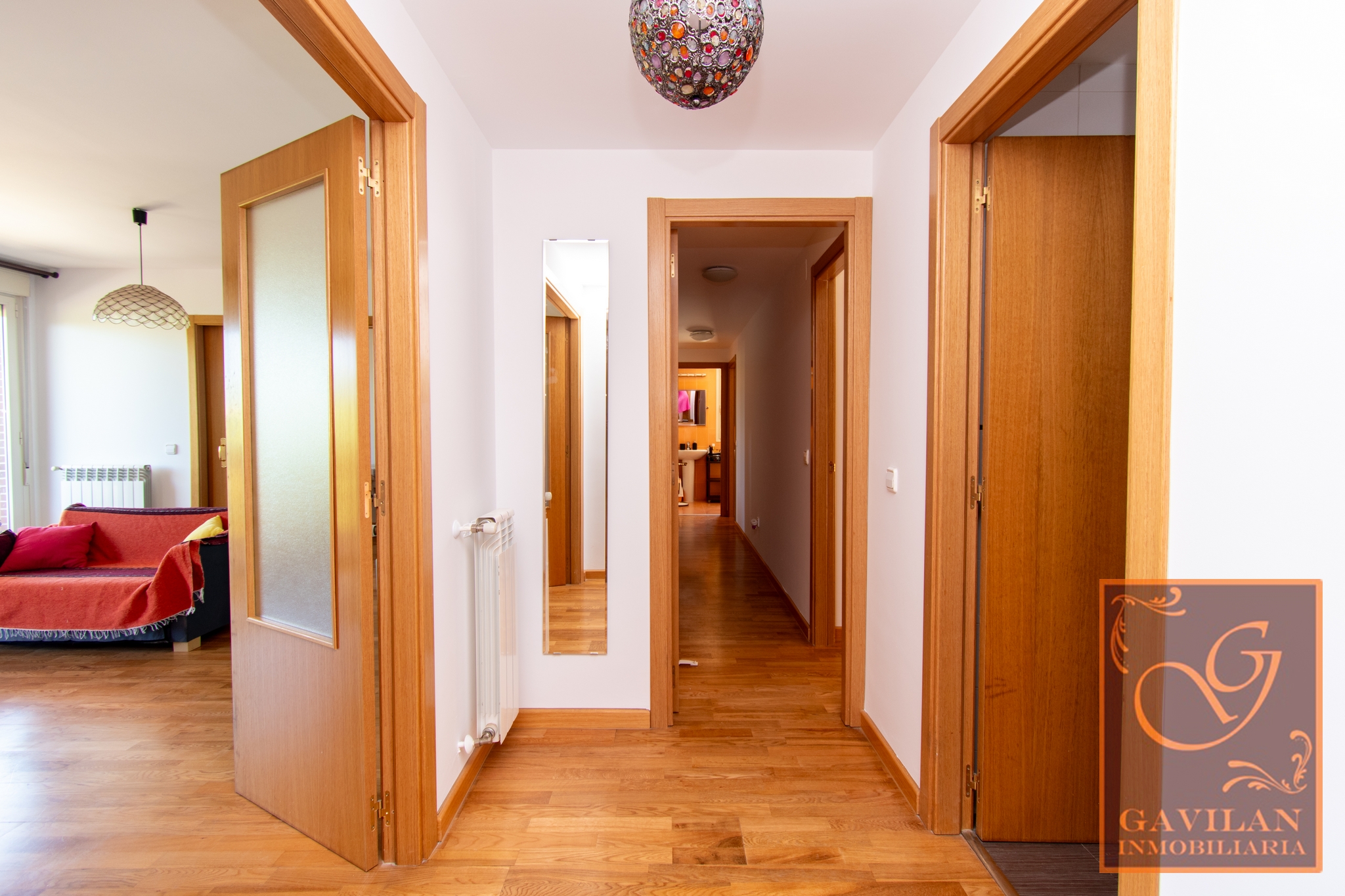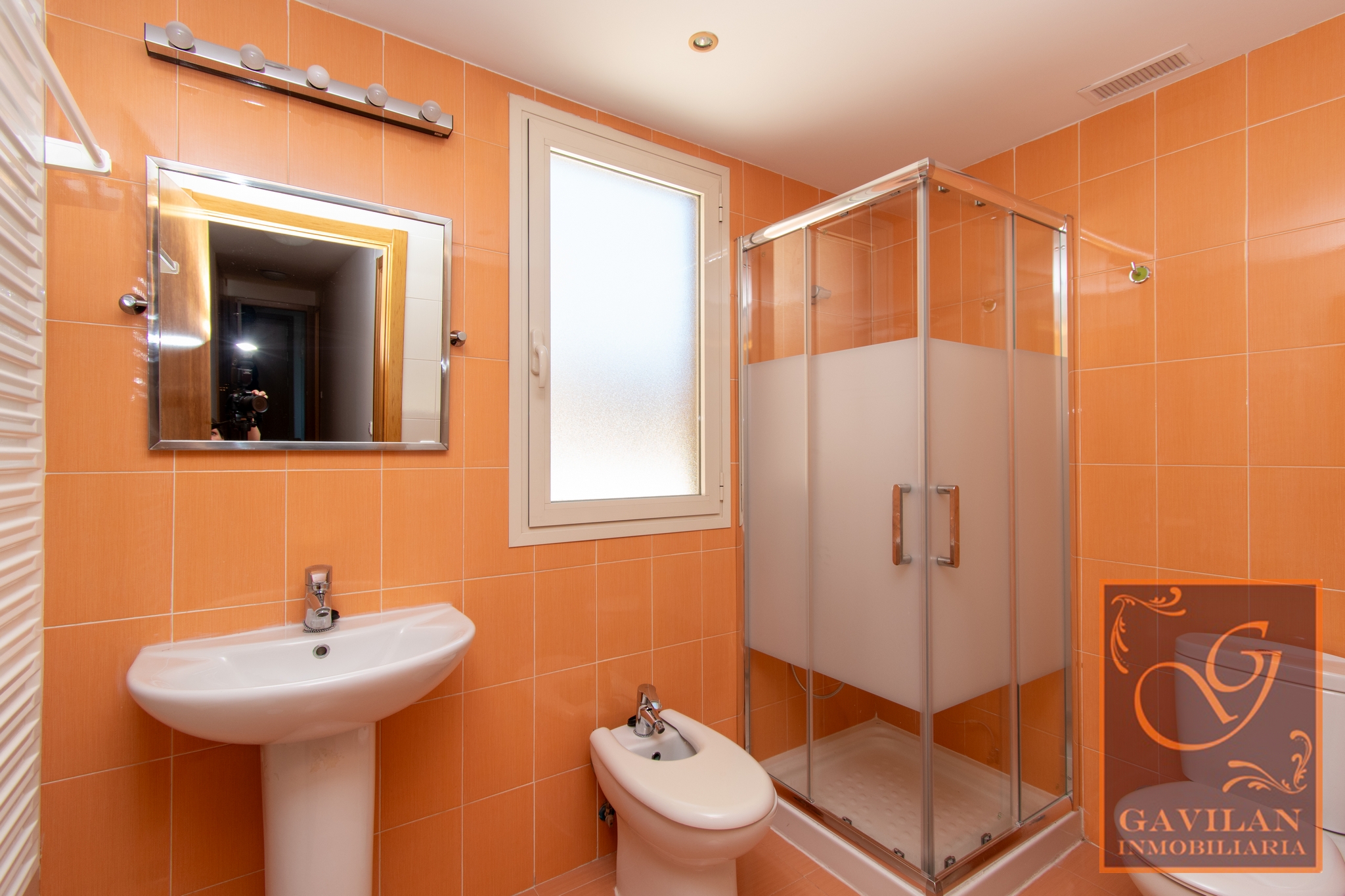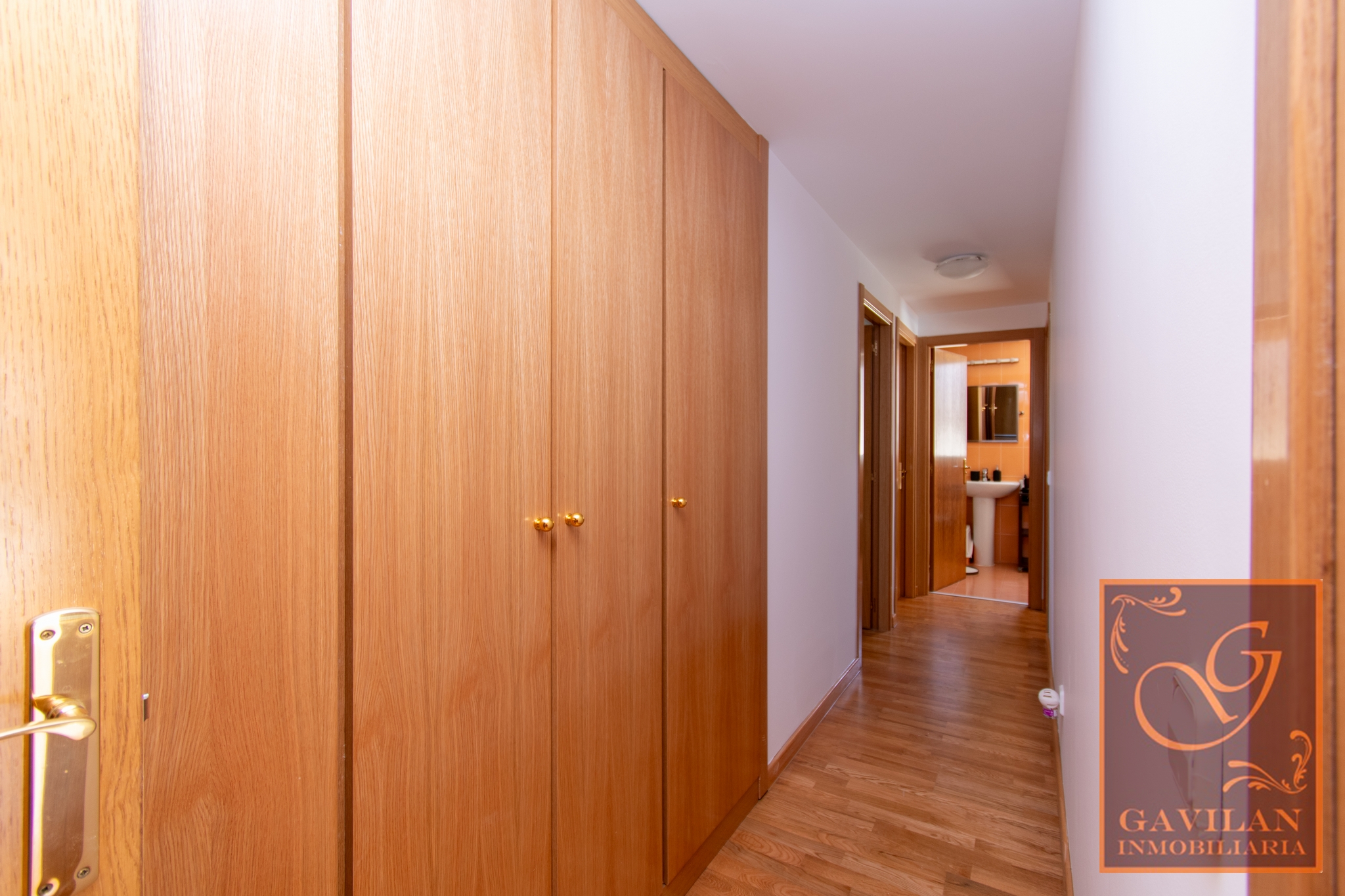 En el pasillo de acceso a los dormitorios encontramos armario empotrado de 5 puertas forrado y vestido. 3 dormitorios dobles. 2 de ellos con armario empotrado. El principal es tipo suite con aire acondicionado y baño completo dotado de bañera con mampara. Disponemos de otro baño completo con plato de ducha y mampara.