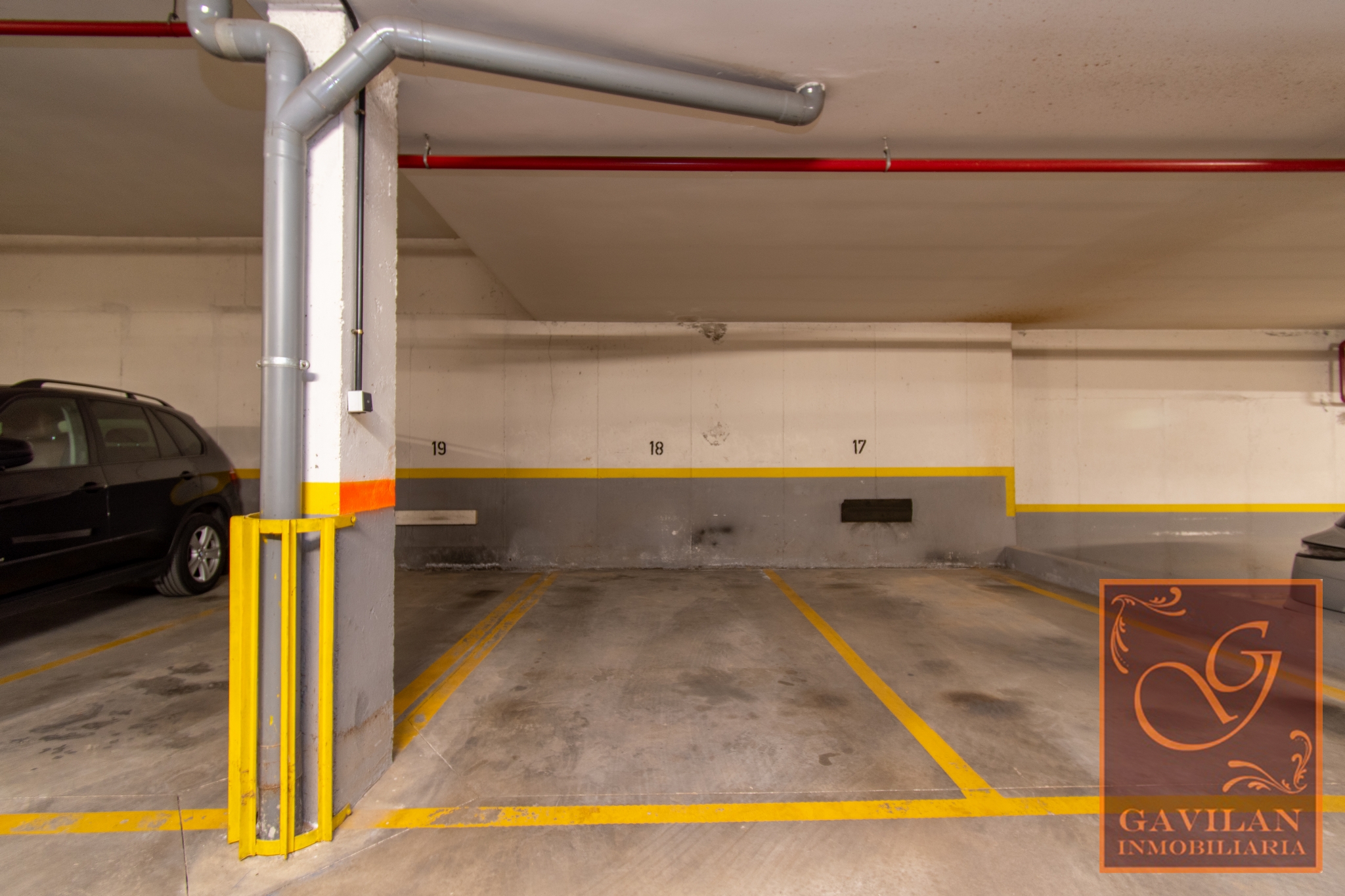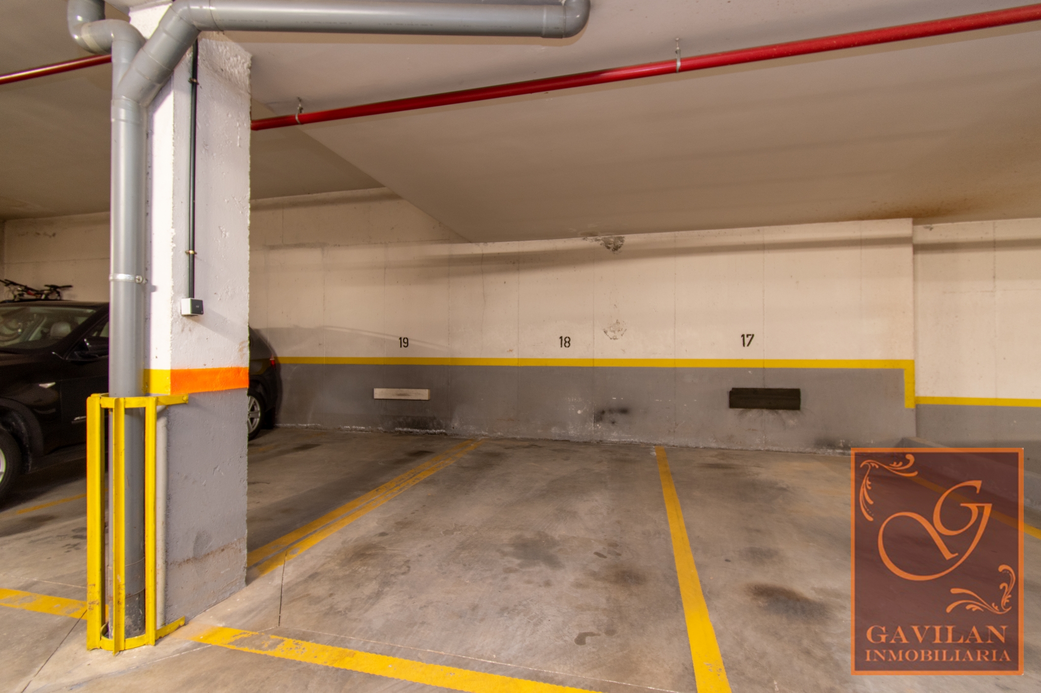 Plaza de garaje en aparcamiento comunitario subterráneo con puerta automática. Zonas comunes ajardinadas.
