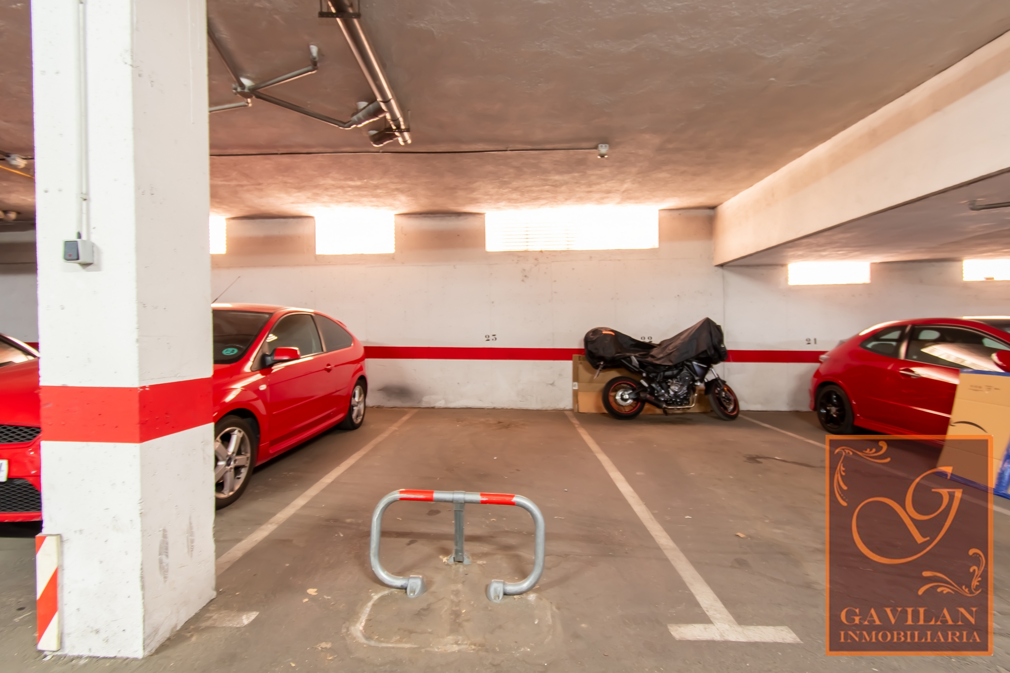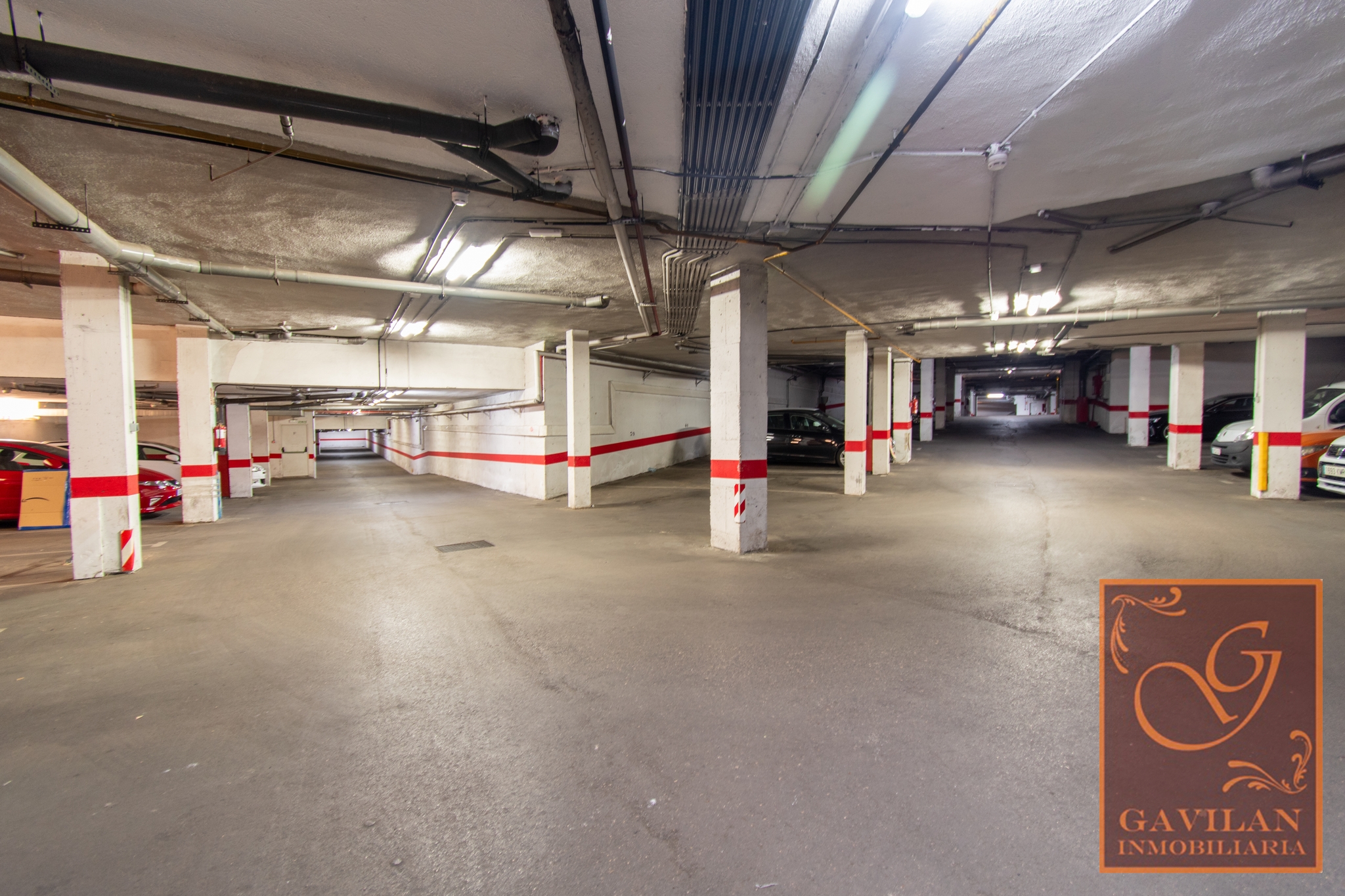 Zonas comunes interiores ajardinadas y plaza de garaje en aparcamiento subterráneo comunitario.