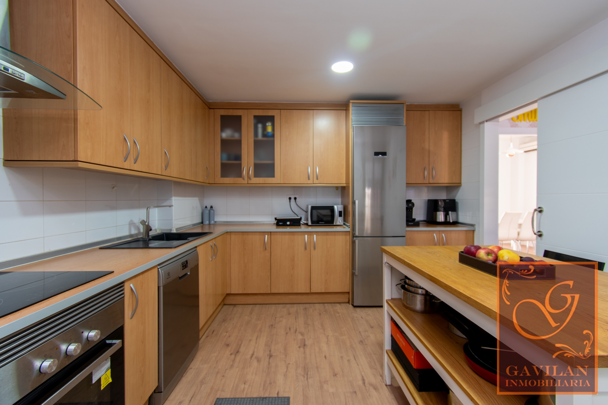Construida en 3 plantas, dispone de la siguiente distribución: Accedemos a través del patio delantero de 17m² con luces exteriores y riego automático. Porche techado con acceso a garaje americano de 17m² con puerta automática y cargador para vehículo eléctrico. Hall con armario empotrado bajo escalera. Luminoso salón comedor de 29m² con chimenea, aire acondicionado y salida al bonito jardín de 150m² con equipado con piscina privada, barbacoa de obra, riego automático, luces exteriores y ducha solar. Cocina totalmente amueblada, equipada con electrodomésticos básicos y lavadero cerrado y acristalado. Contamos con un aseo en esta planta.