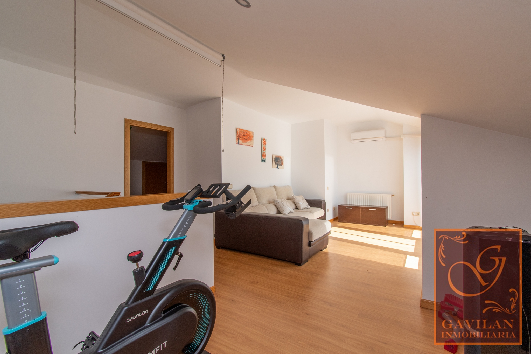 Buhardilla totalmente acondicionada distribuida en gran salón de 30m² con acceso a solárium de 11m². Amplio dormitorio doble con armario empotrado y baño completo con bañera.