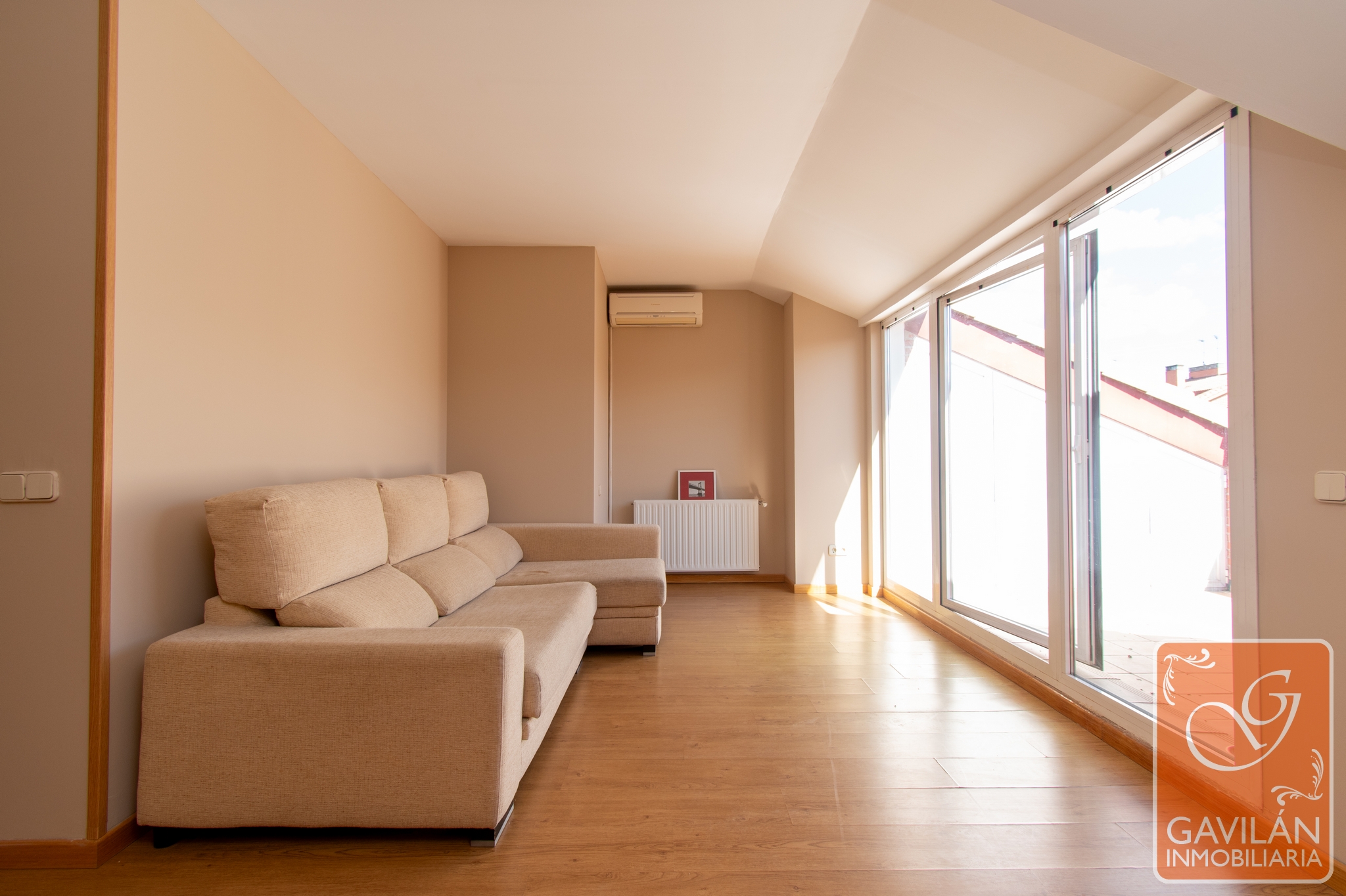 Buhardilla totalmente acondicionada y con estancias diferenciadas. Salón de 22m² con aire acondicionado y salida a solarium de 9m². Dormitorio de 15m² dotado de ventana Velux, armarios bajo cubierta y aire acondicionado. También contamos con otro baño equipado con bañera y mampara.