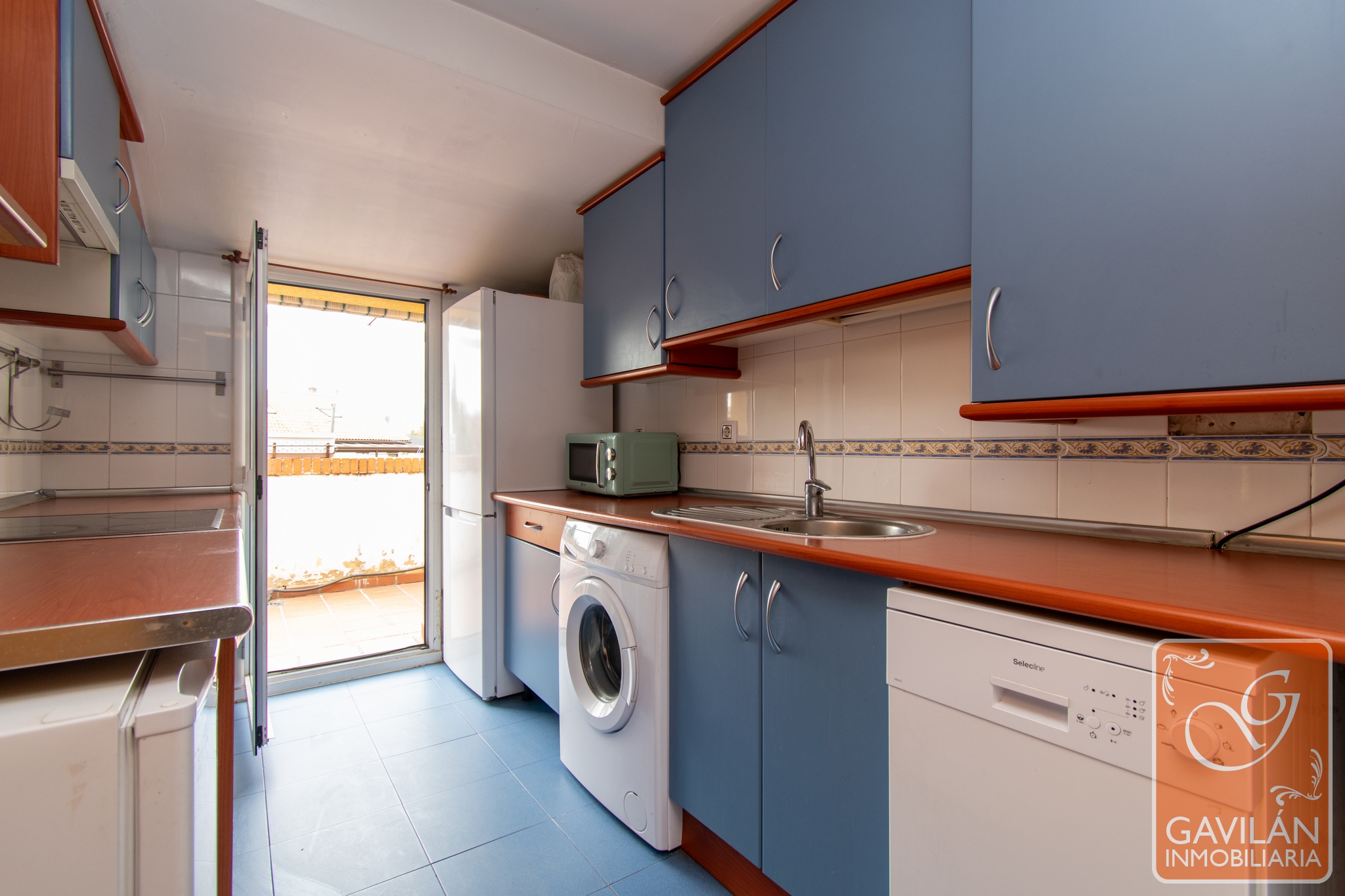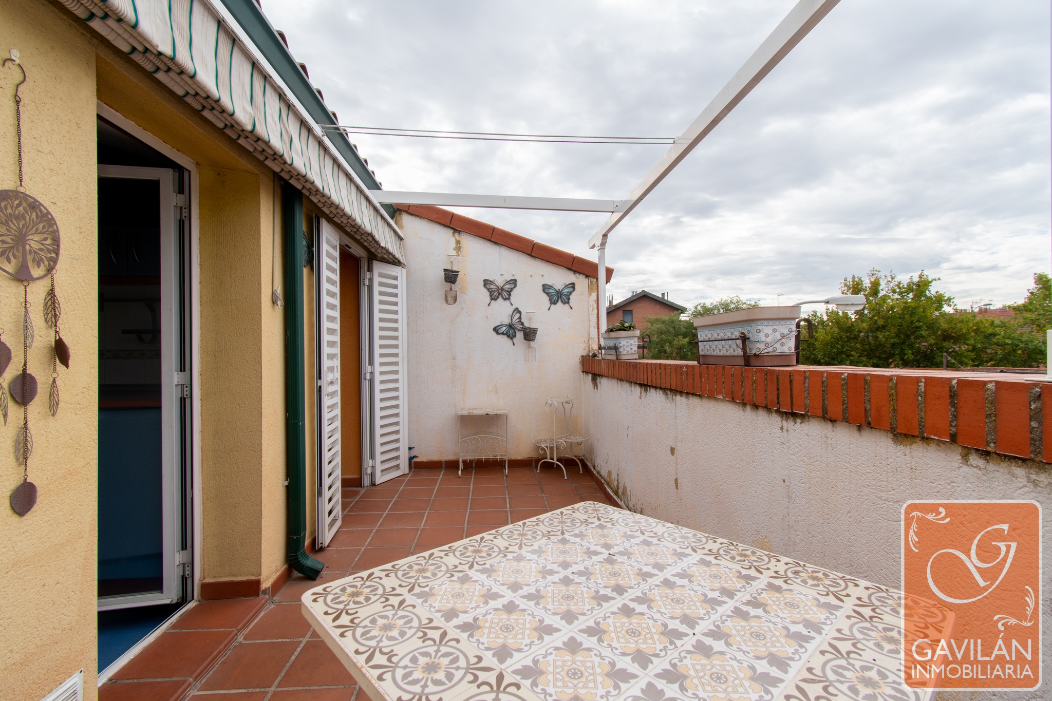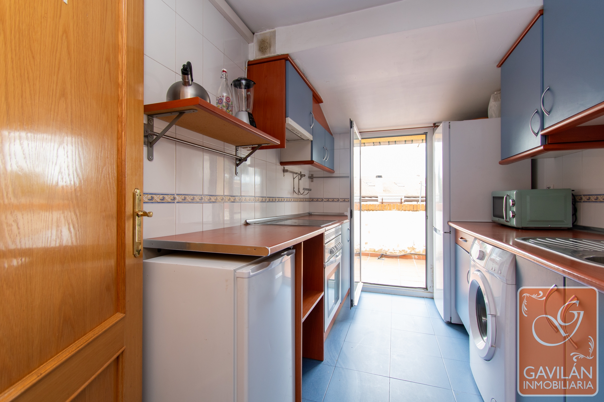 Esta vivienda cuenta con la siguiente distribución: Hall recibidor con puerta blindada, luminoso salón con Velux y acceso a terraza de casi 9m² con pérgola y toma de agua. Cocina totalmente amueblada y equipada con electrodomésticos básicos, desde la cual también podemos acceder a la terraza. El dormitorio dispone de 2 armarios empotrados de 2 cuerpos forrados y vestidos. Baño completo con bañera. Trastero en la misma planta que la vivienda.