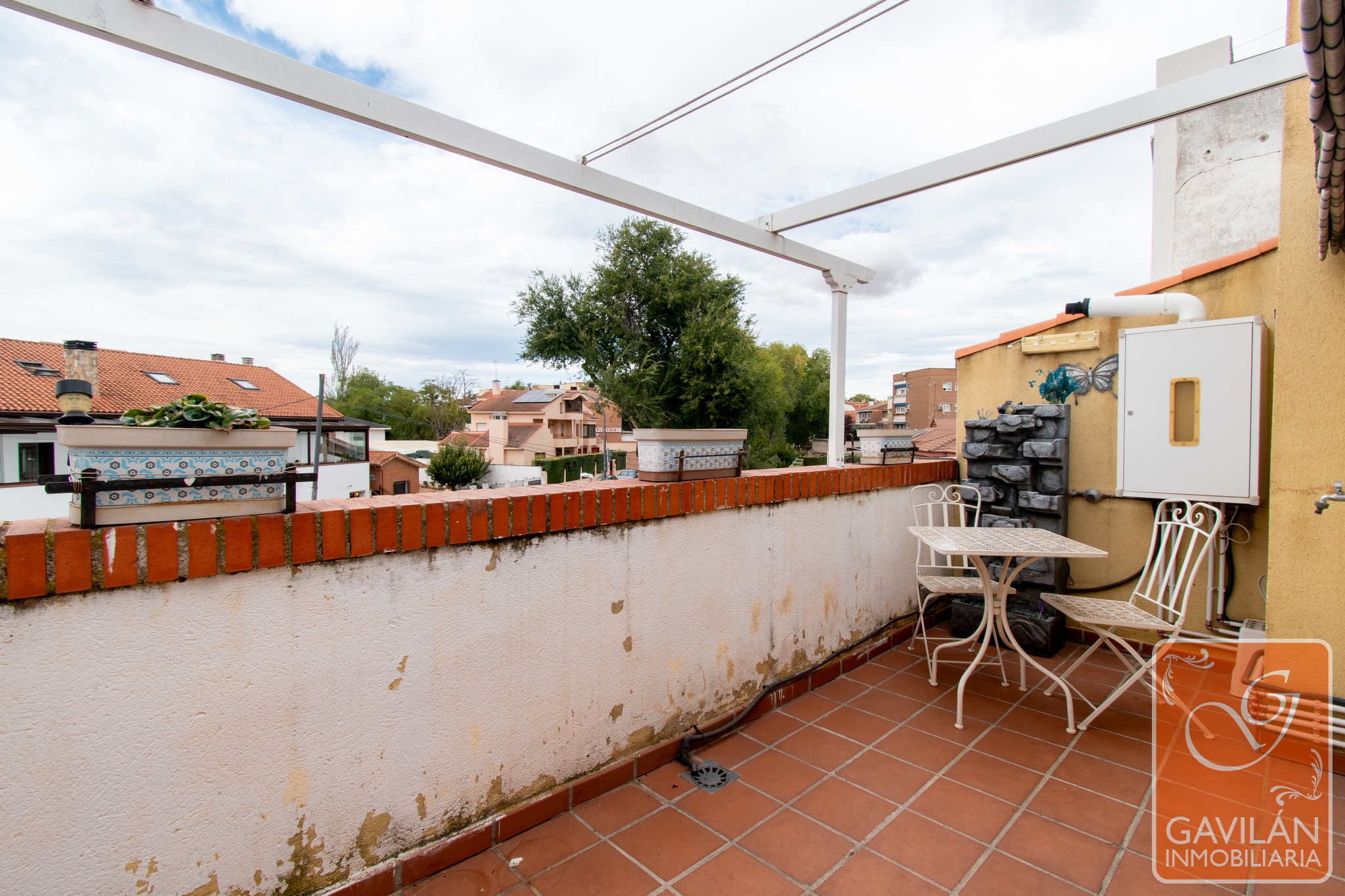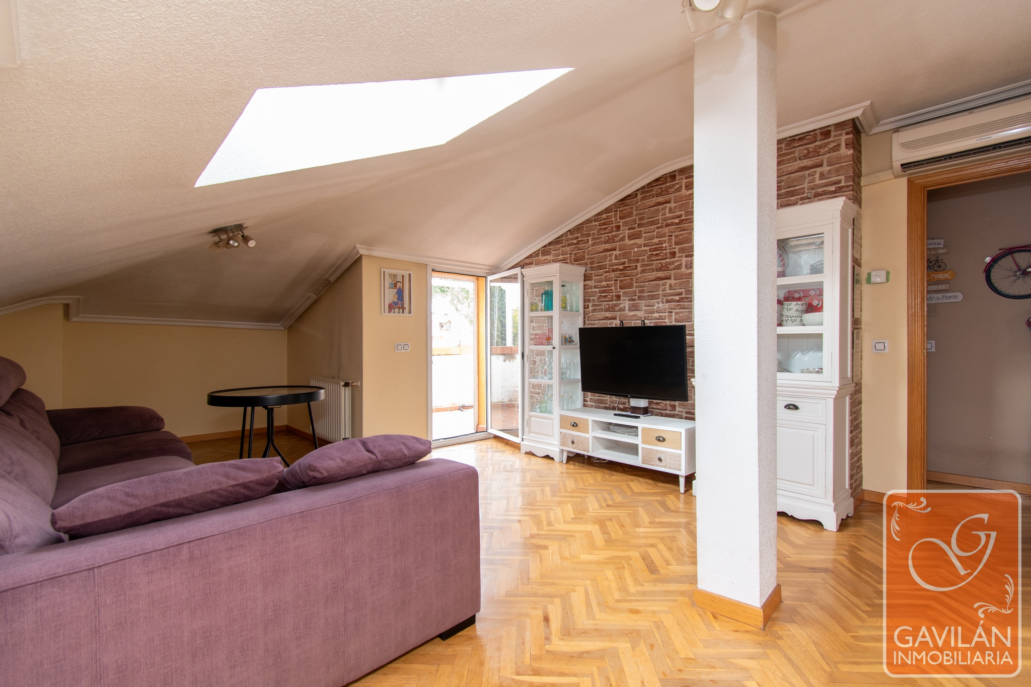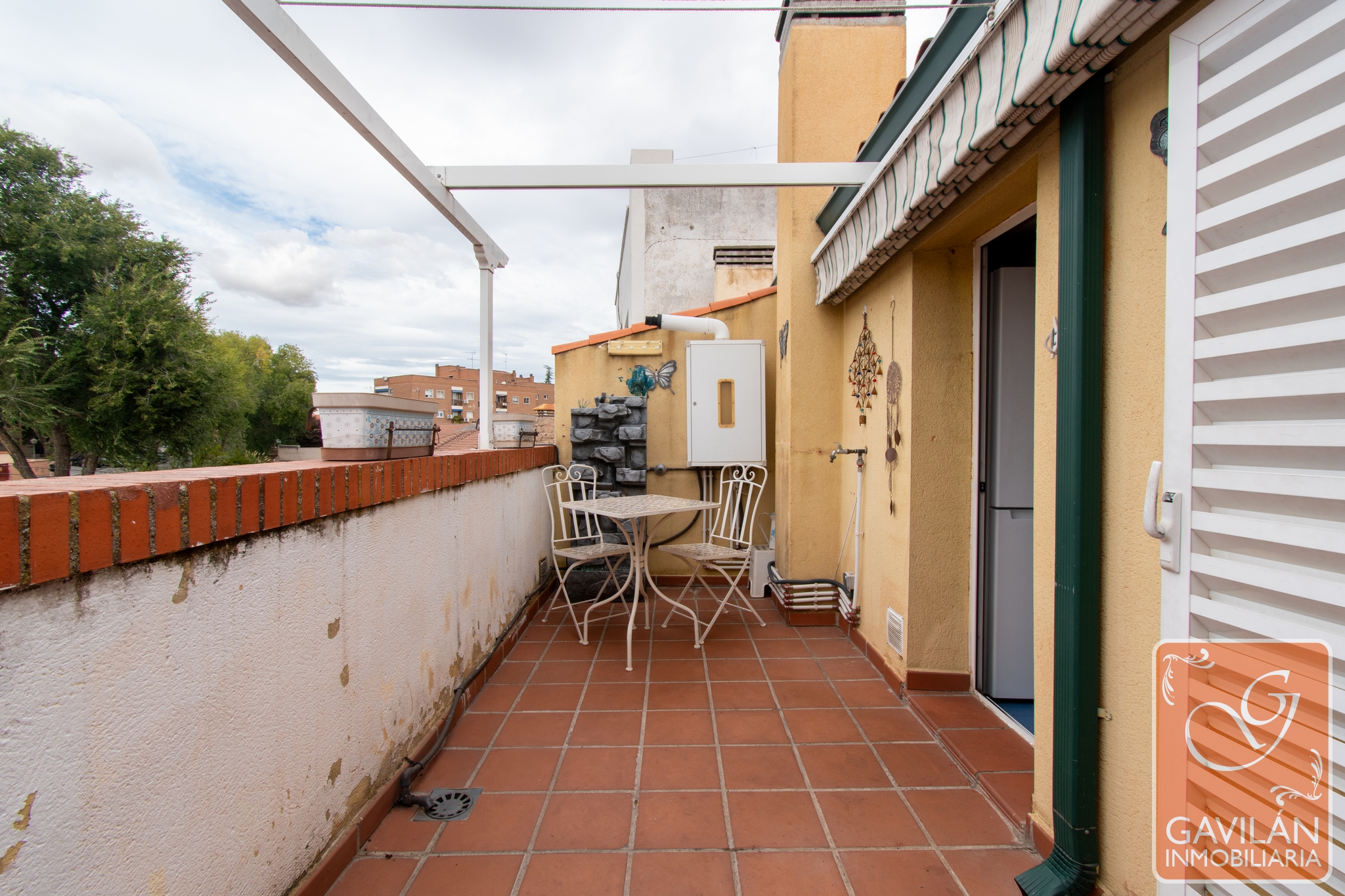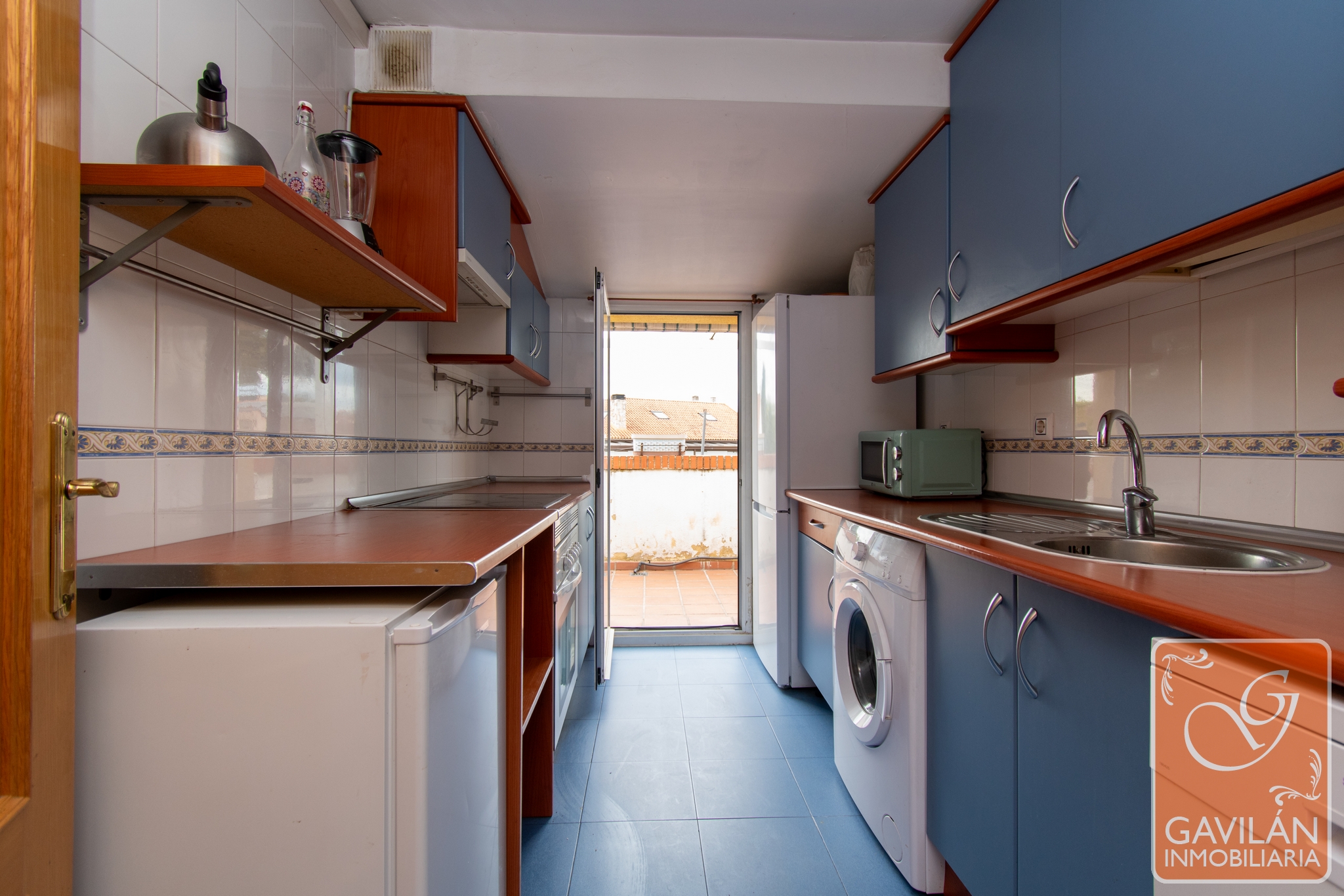 Esta vivienda cuenta con la siguiente distribución: Hall recibidor con puerta blindada, luminoso salón con Velux y acceso a terraza de casi 9m² con pérgola y toma de agua. Cocina totalmente amueblada y equipada con electrodomésticos básicos, desde la cual también podemos acceder a la terraza. El dormitorio dispone de 2 armarios empotrados de 2 cuerpos forrados y vestidos. Baño completo con bañera. Trastero en la misma planta que la vivienda.