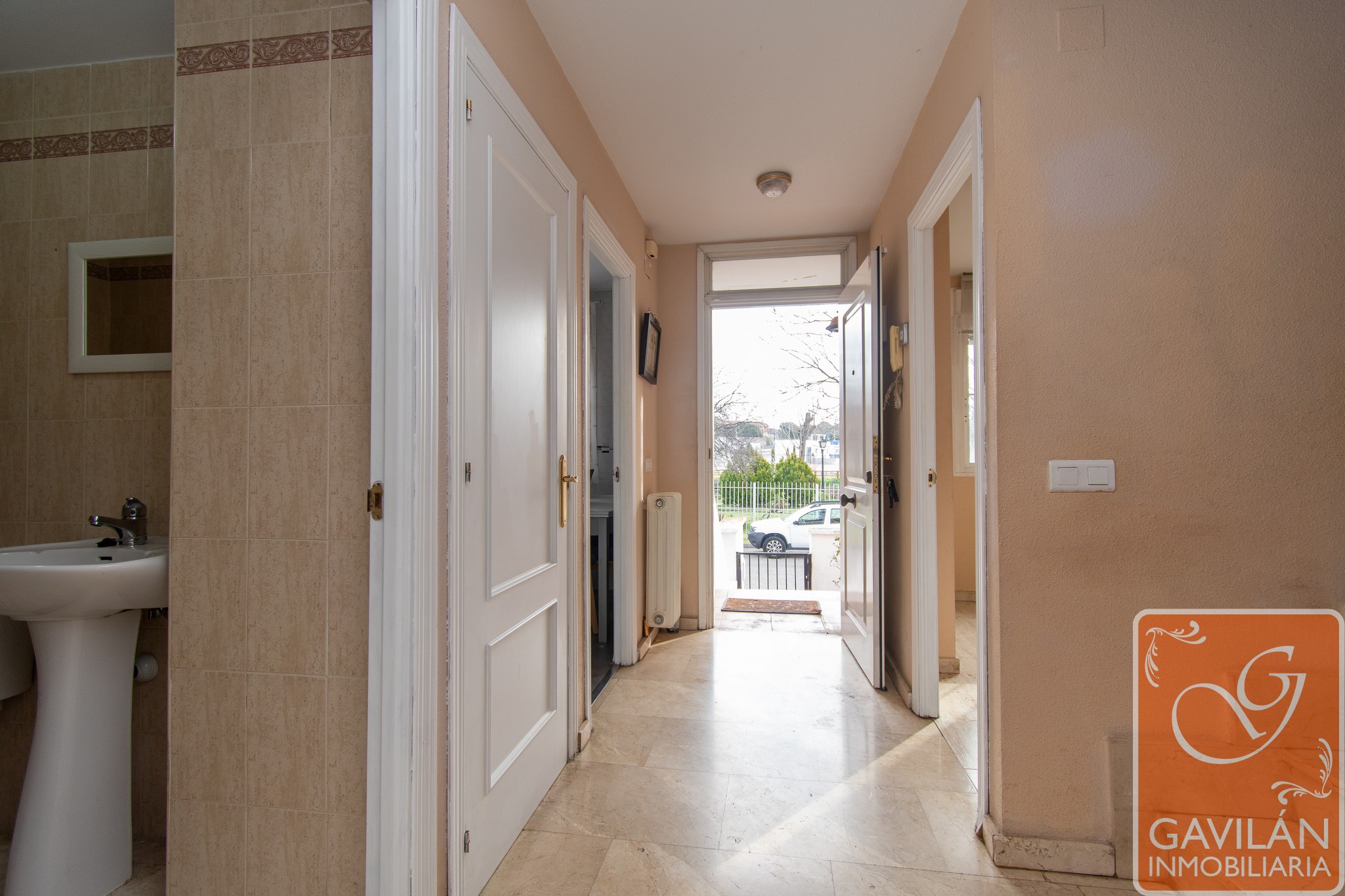 Esta vivienda cuenta con la siguiente distribución: Patio delantero de entrada con rampa hacia el garaje y escaleras de acceso a la planta baja. Hall recibidor con armario empotrado. Amplia cocina reformada, amueblada y equipada con electrodomésticos básicos. 1 dormitorio en esta planta perfecta para usos variados. Baño con plato de ducha. Luminoso salón comedor de 28m² chimenea y salida a porche desde el que accedemos al bonito jardín de 70m² dotado de riego automático, césped artificial, zona solada donde colocar mesa y sillas de jardín. Desde aquí se podría hacer una puerta de entrada al sótano.