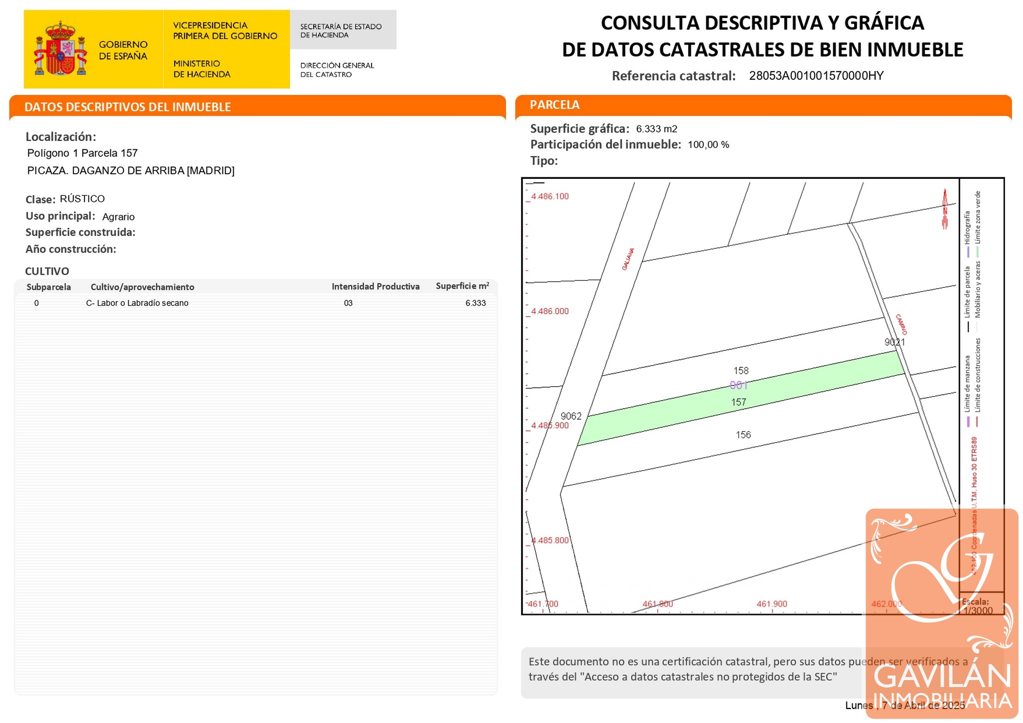 Oportunidad única para adquirir una parcela rústica de 4.959m² en el término municipal de Daganzo (Madrid), ideal para uso agrícola, recreativo o como inversión a largo plazo.