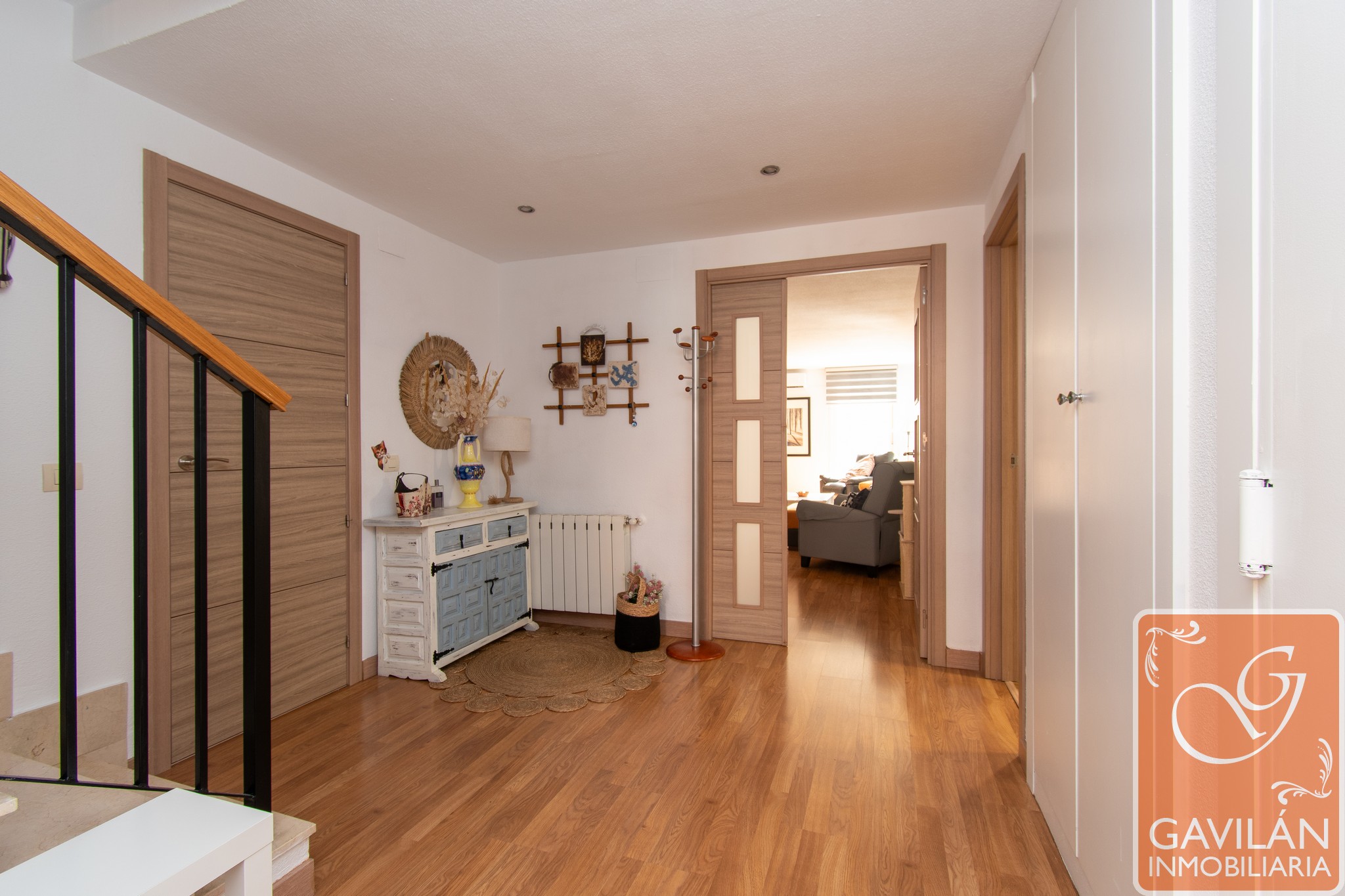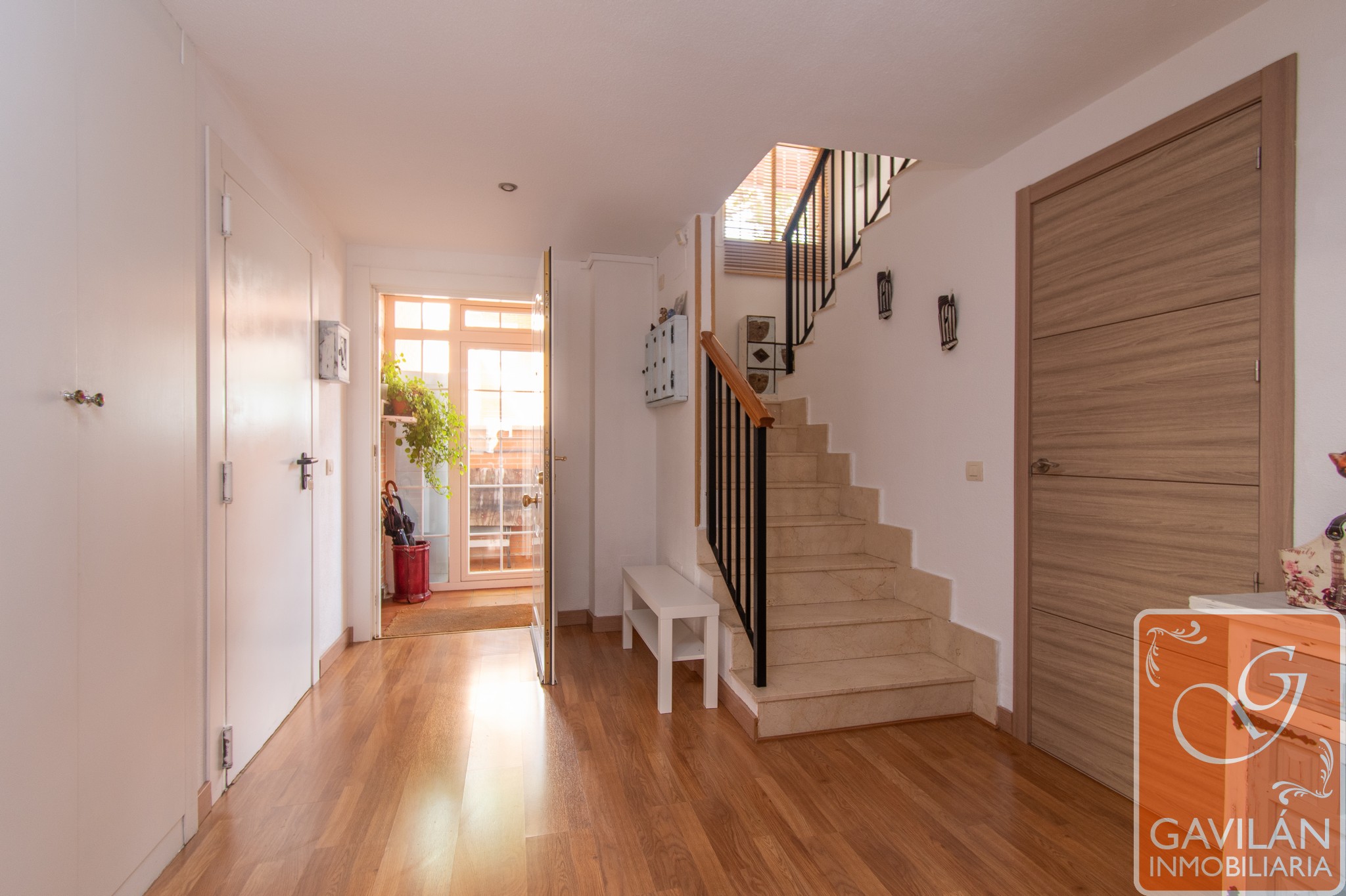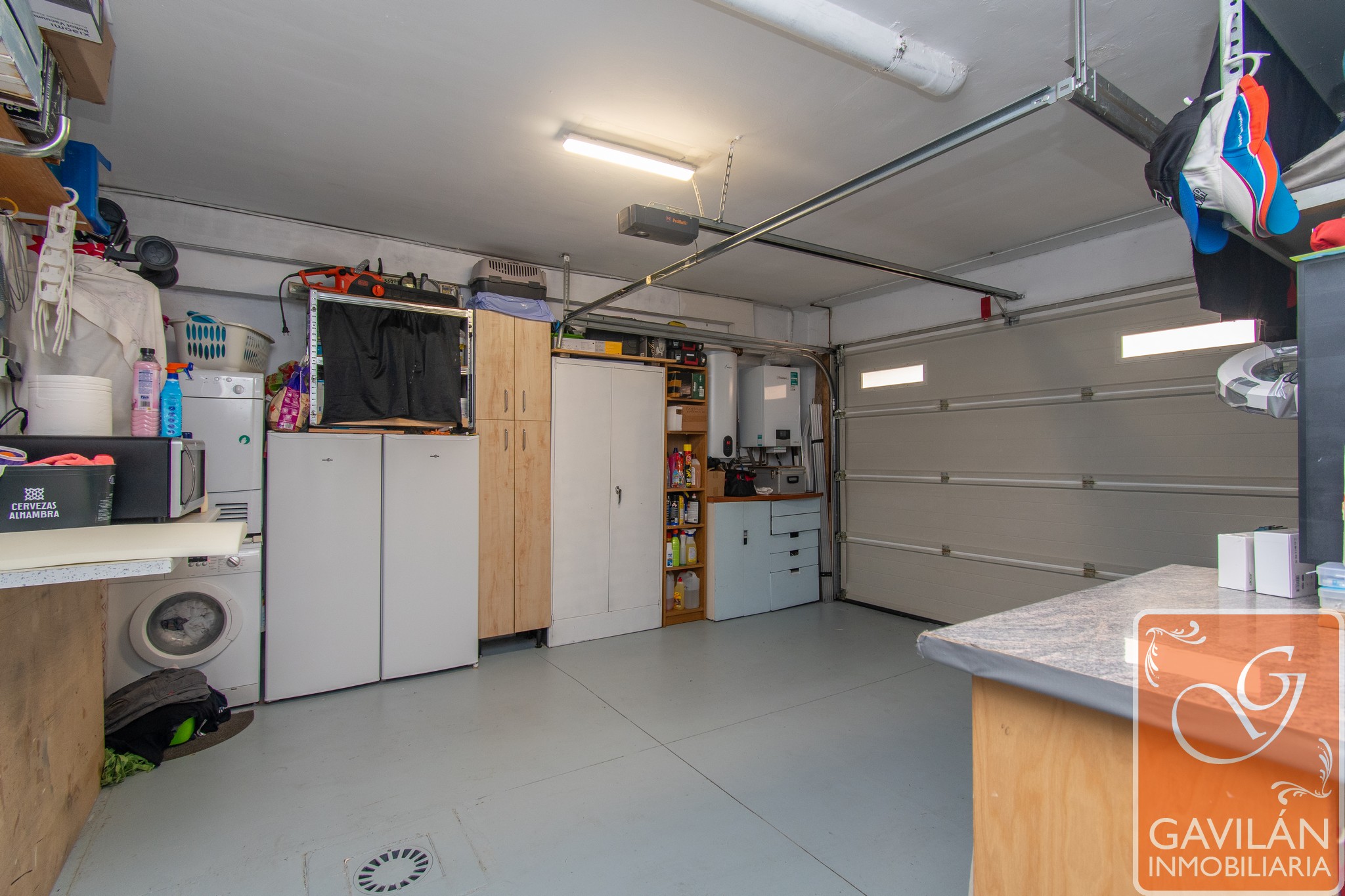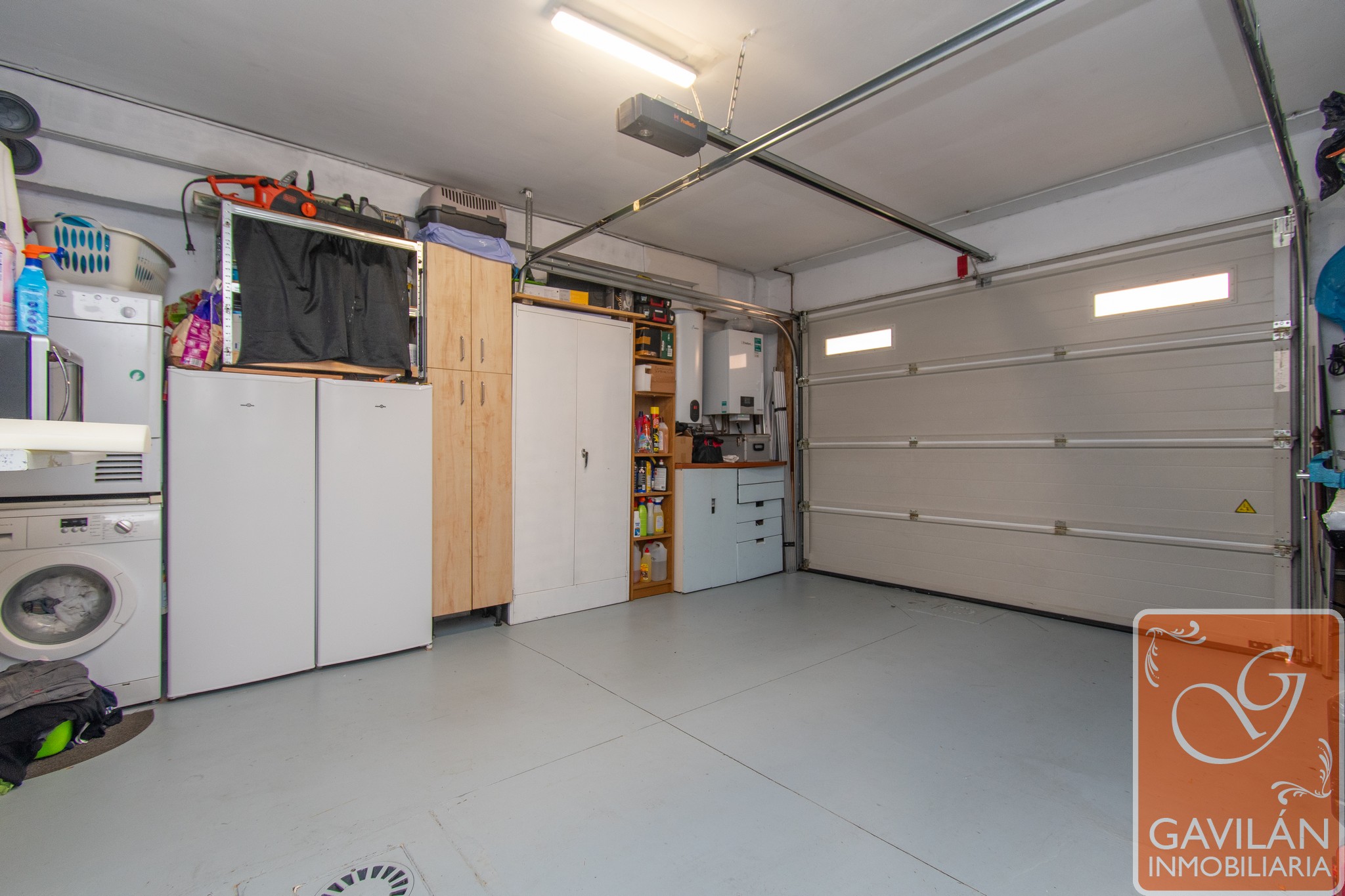 Al entrar en la vivienda, te encuentras con un amplio recibidor de 10m², que cuenta con A/E de 2 cuerpos totalmente forrado y vestido, que conecta con diferentes zonas del chalet y tiene acceso directo al garaje. El garaje de 25m², cuenta con puerta automática, diferentes tomas para lavadora y secadora, caldera, termo y toma de agua, ofreciendo comodidad y funcionalidad.