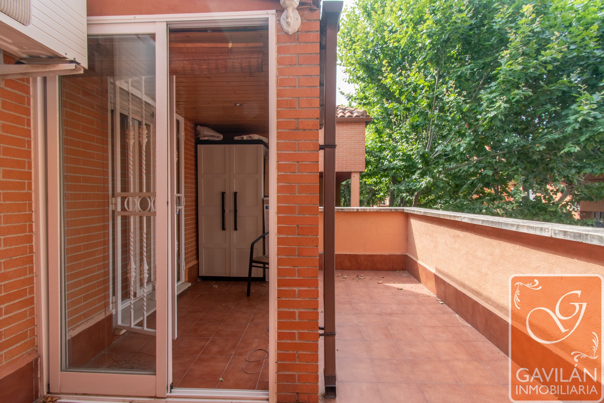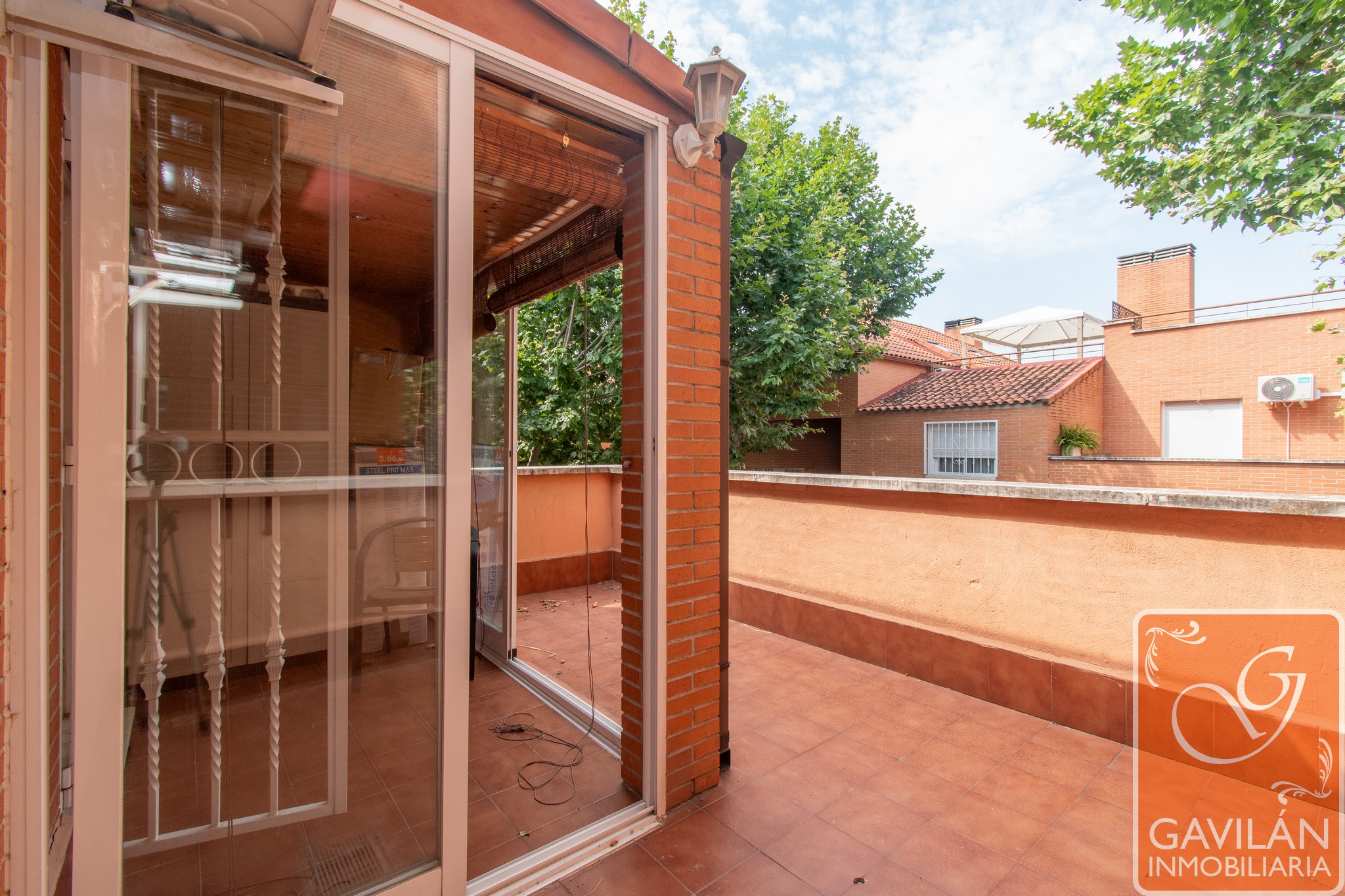 Este chalet adosado cuenta con la siguiente distribución: entrada de 4m² con espacio de porche cubierto y acristalado, dotado de Leñera.