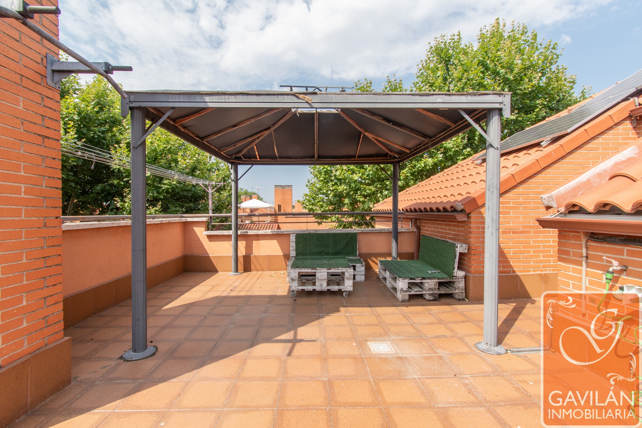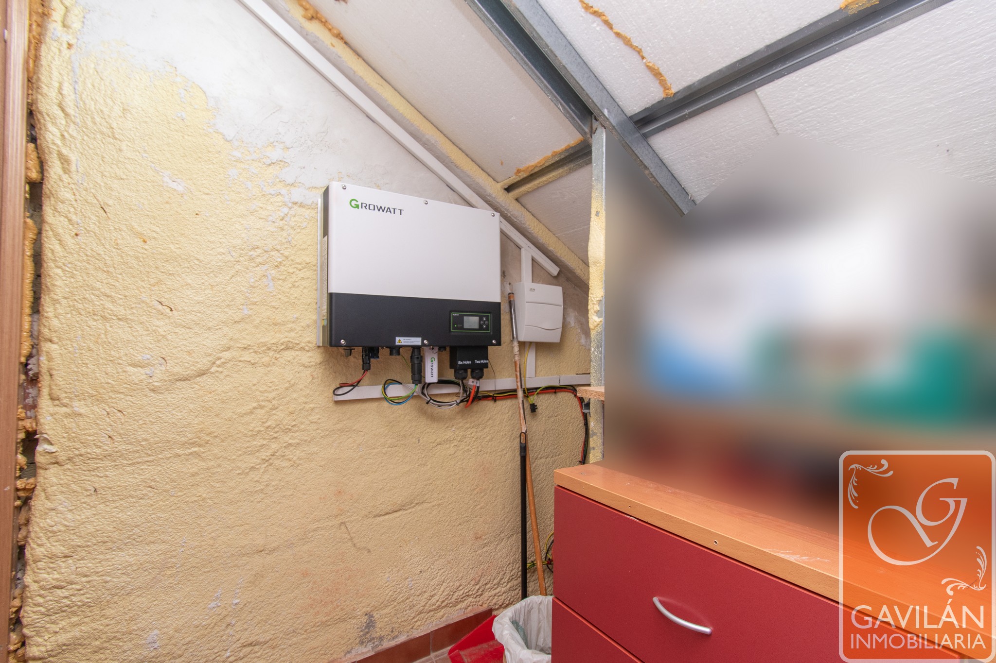 Por último, la zona de buhardilla se distribuye en un espacio de 25m² que puede funcionar como sala o dormitorio adicional, con salida de aire procedente de la chimenea, y un vestidor con luz presencial, distribuidor con salida a una terraza solárium de 27m², equipada con pérgola, toma de agua y desagüe, suelo reformado y 11 placas solares. Finaliza con un trastero de 10m², donde se encuentra el inversor de las placas solares y dos baterías, contribuyendo a la eficiencia energética del hogar.