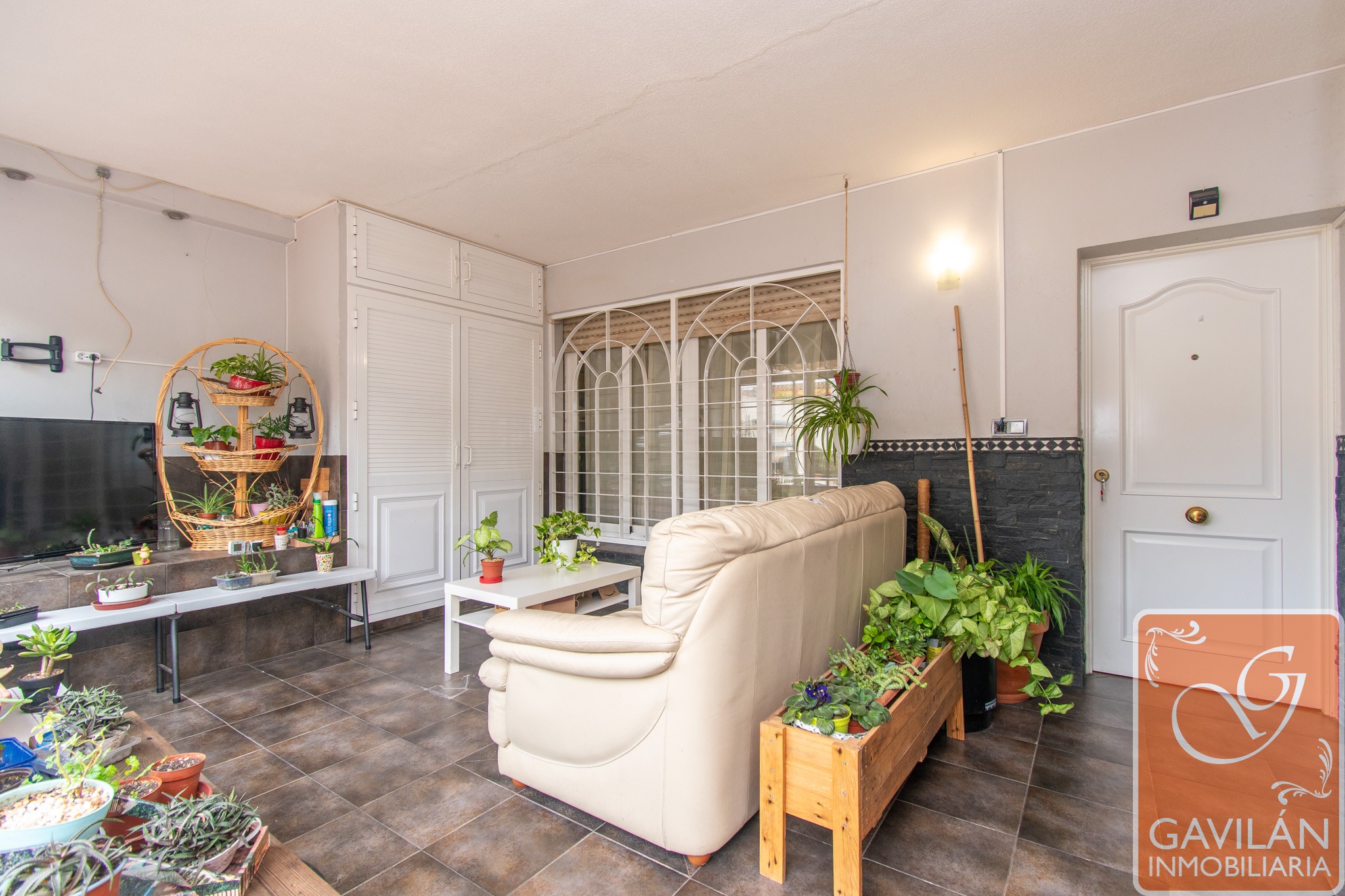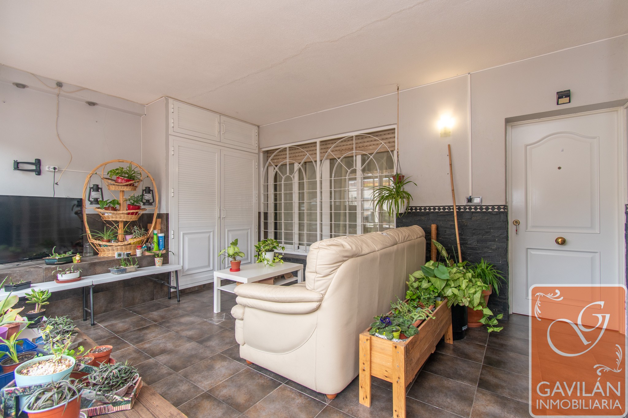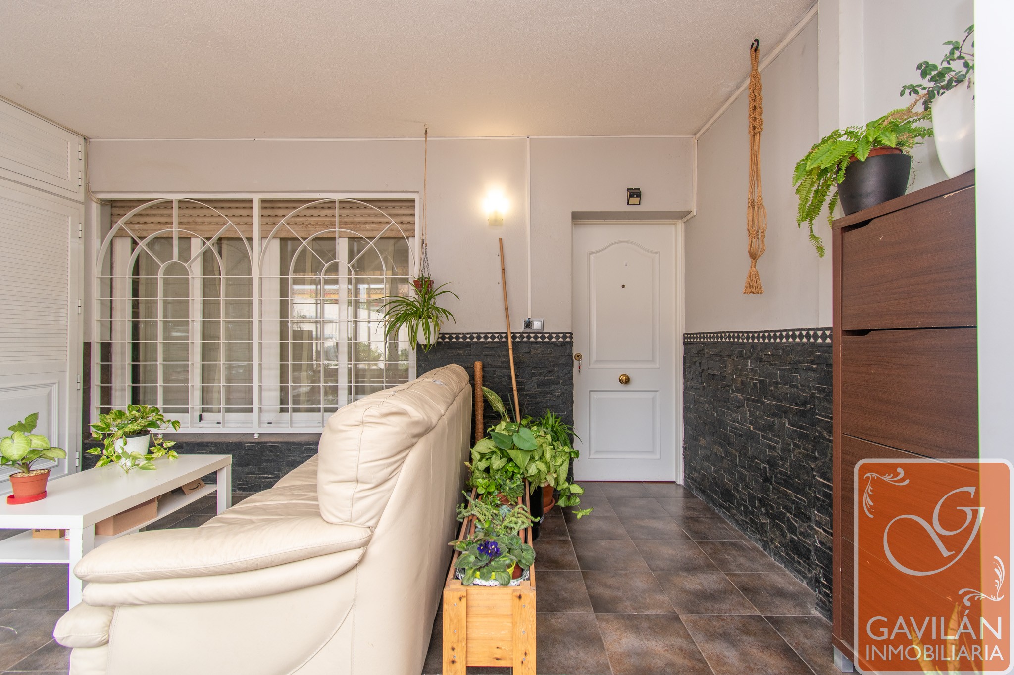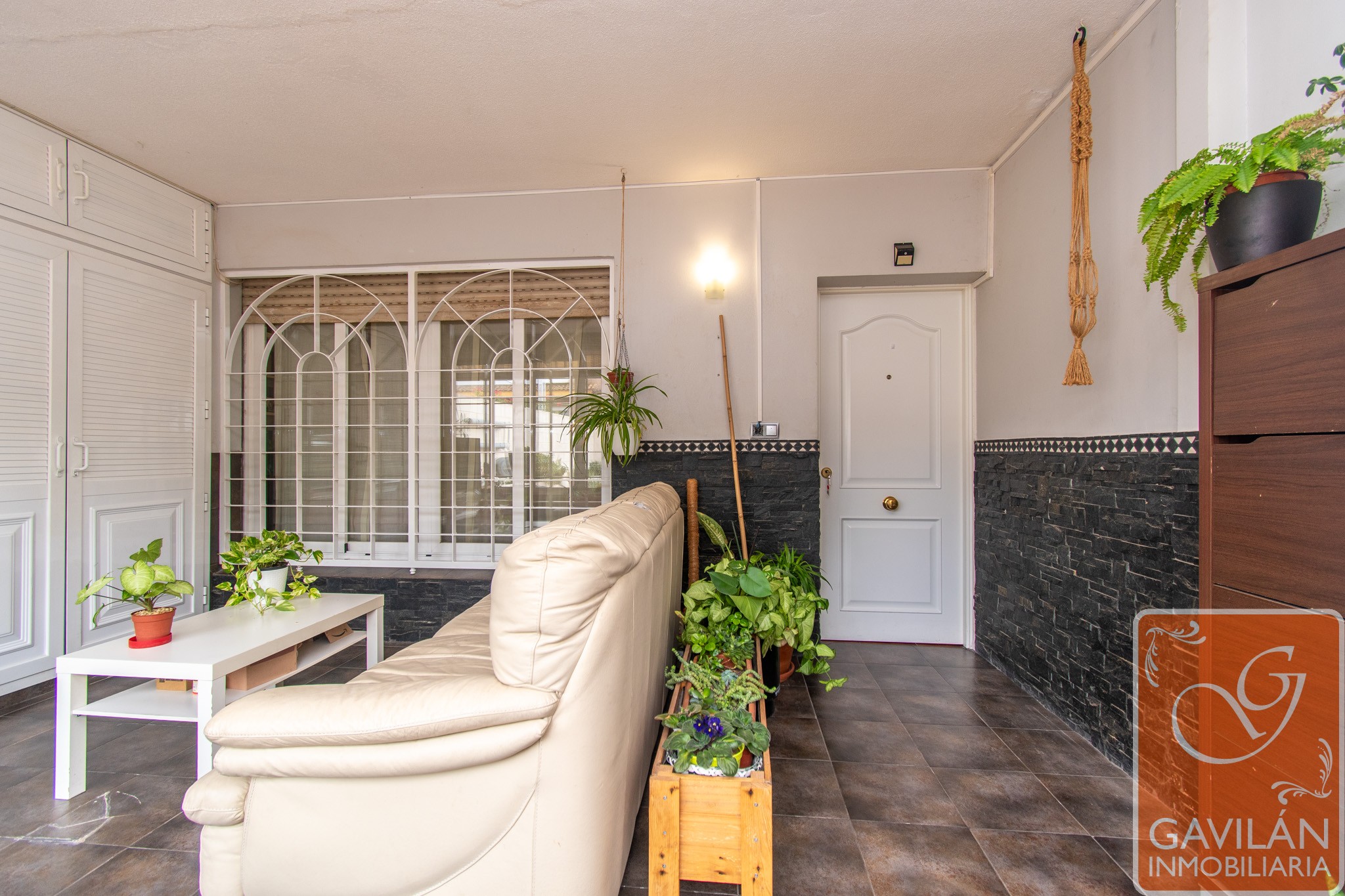 La entrada dispone de un amplio porche/aparcamiento de 47 m² con suelo de hormigón impreso, riego automático, laurel decorativo y muros laterales nuevos. Junto a él, un porche techado y acristalado de 18,40 m², con armario empotrado, toma de TV e inversor fotovoltaico que gestiona 10 placas solares (4.500 W).