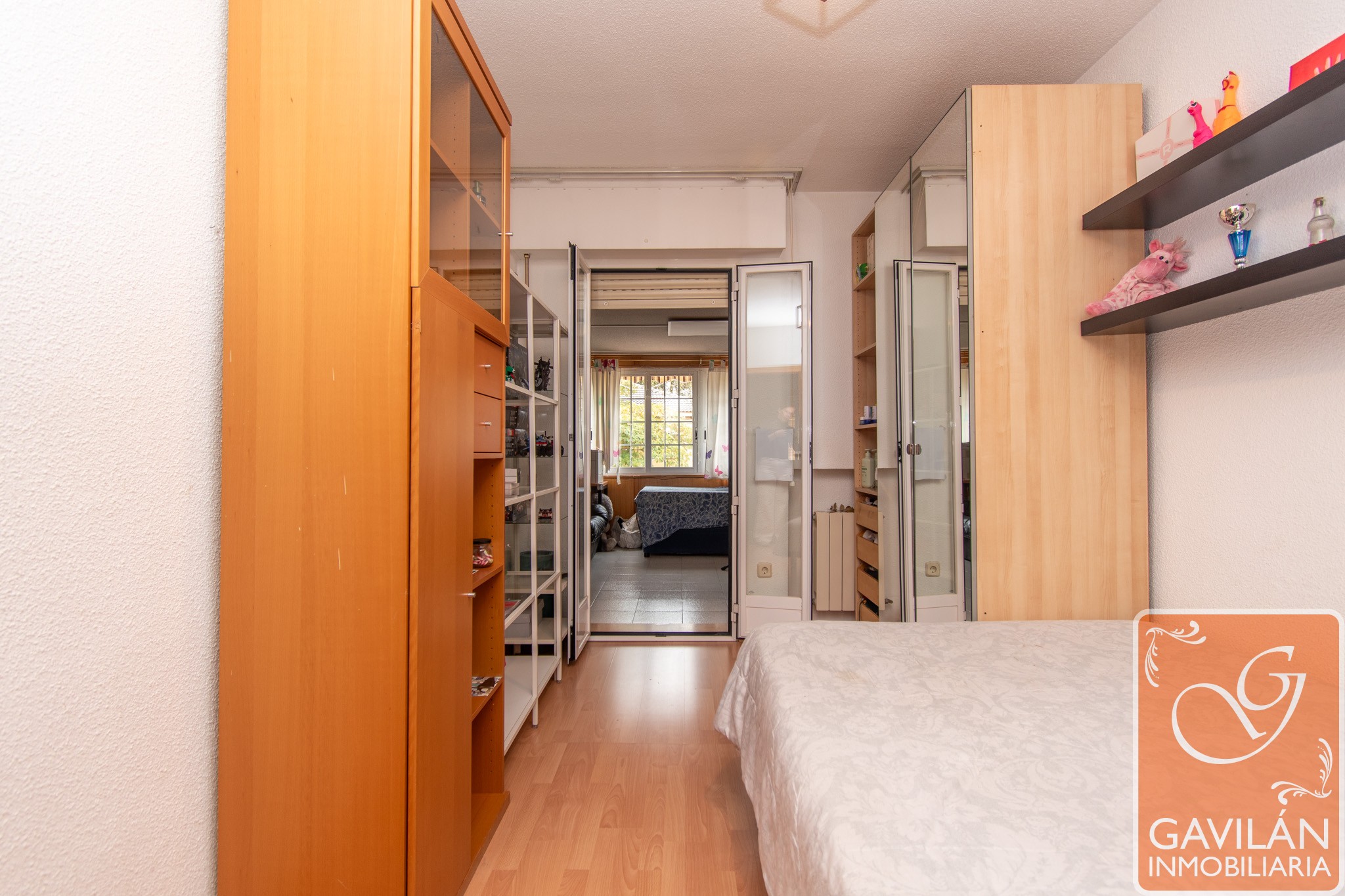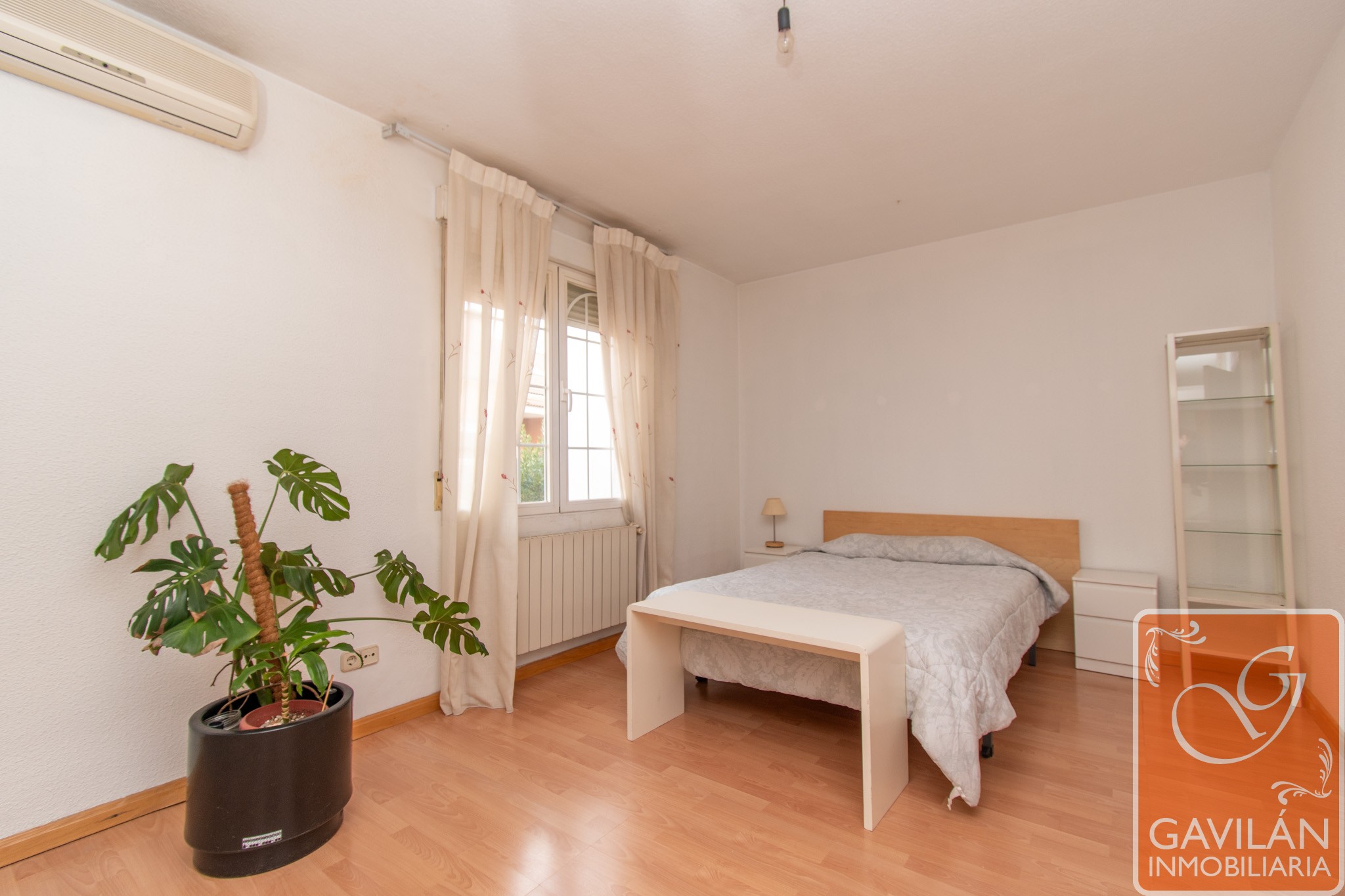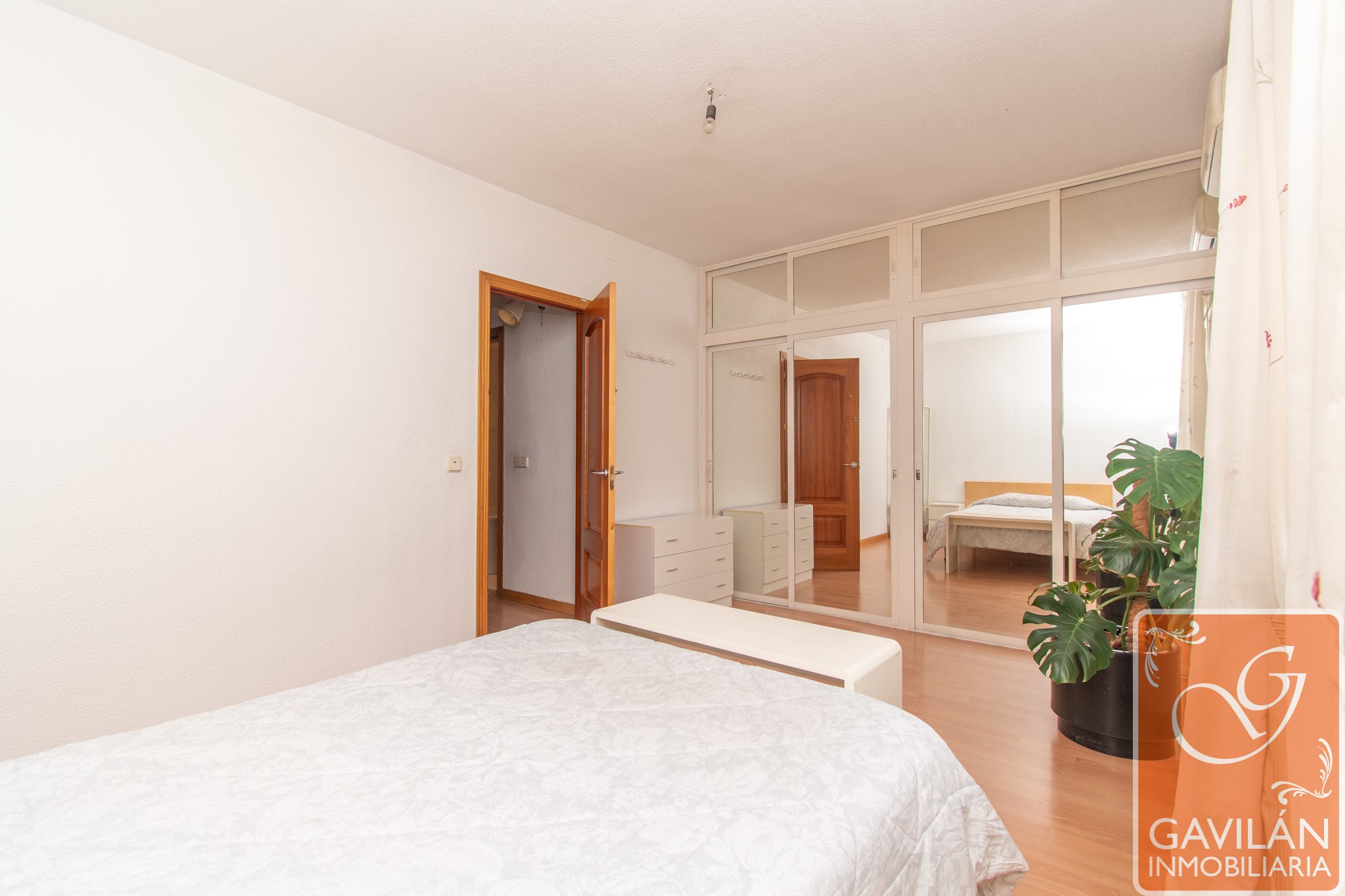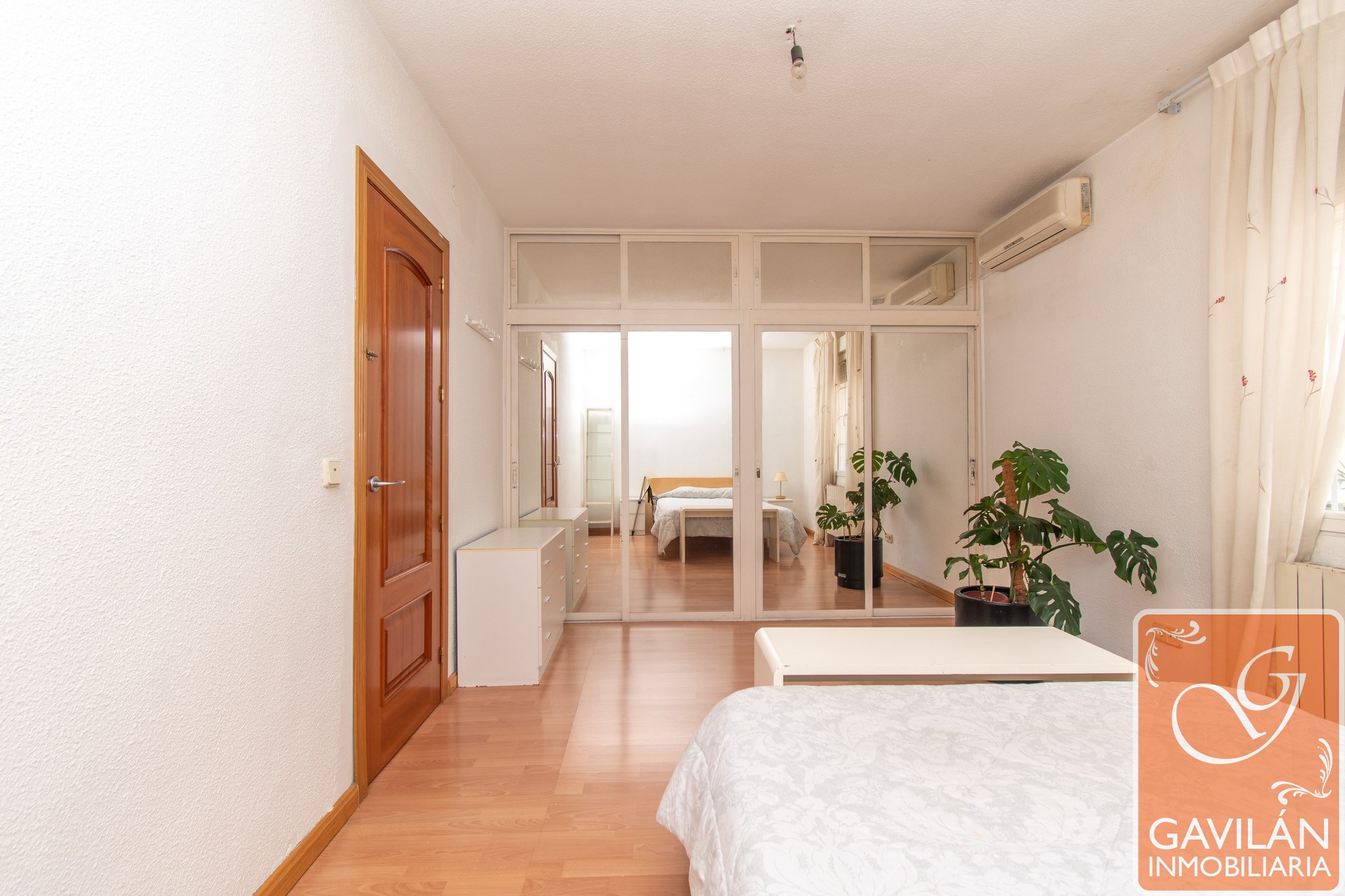 El dormitorio principal (16,7 m²) dispone de armario empotrado de cuatro cuerpos, forrado y vestido con puertas de espejo, además de aire acondicionado frío/calor.