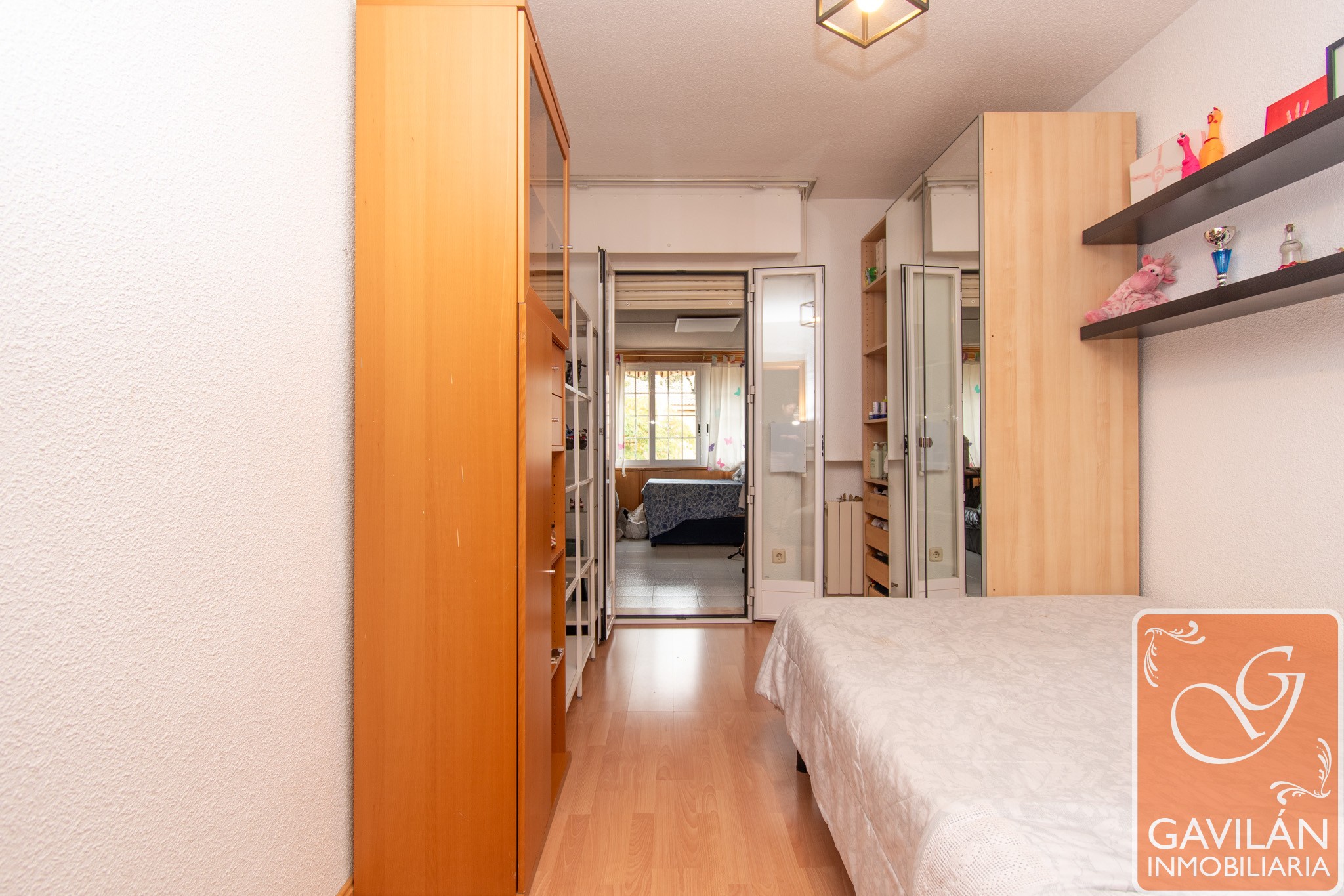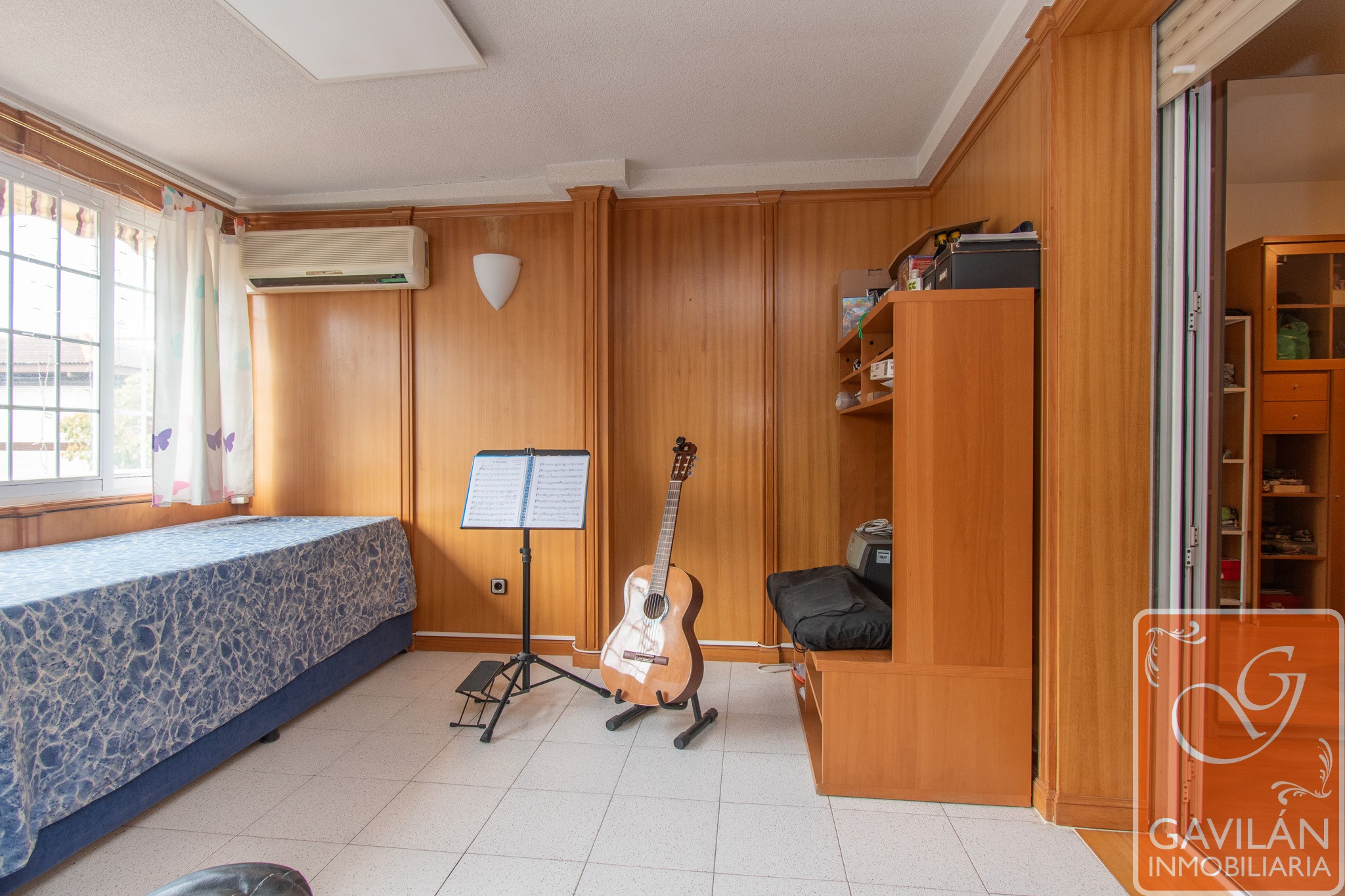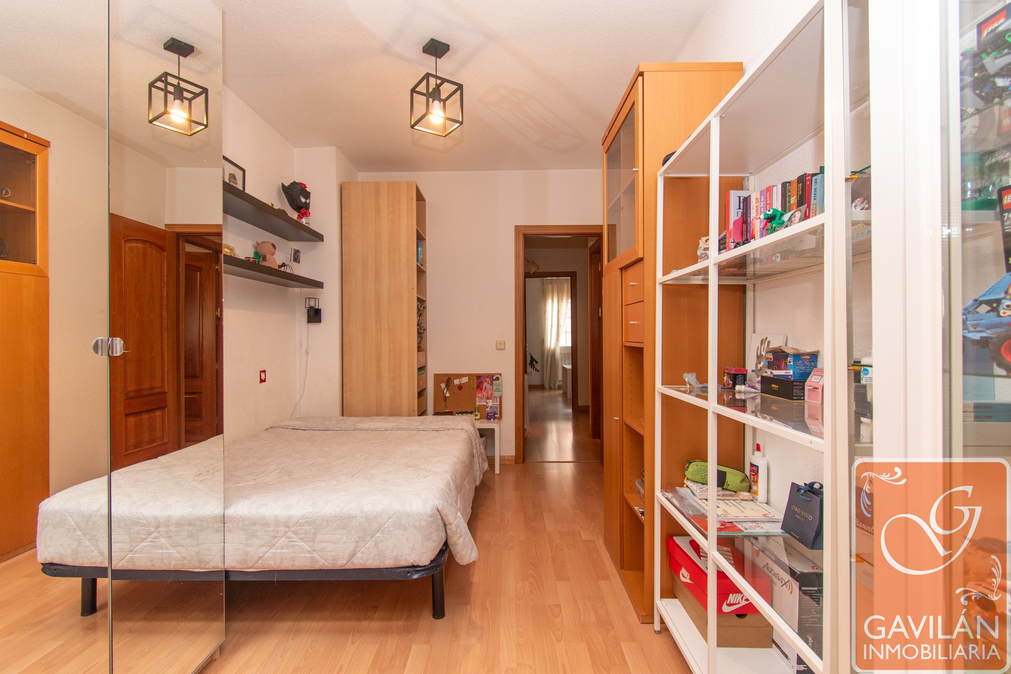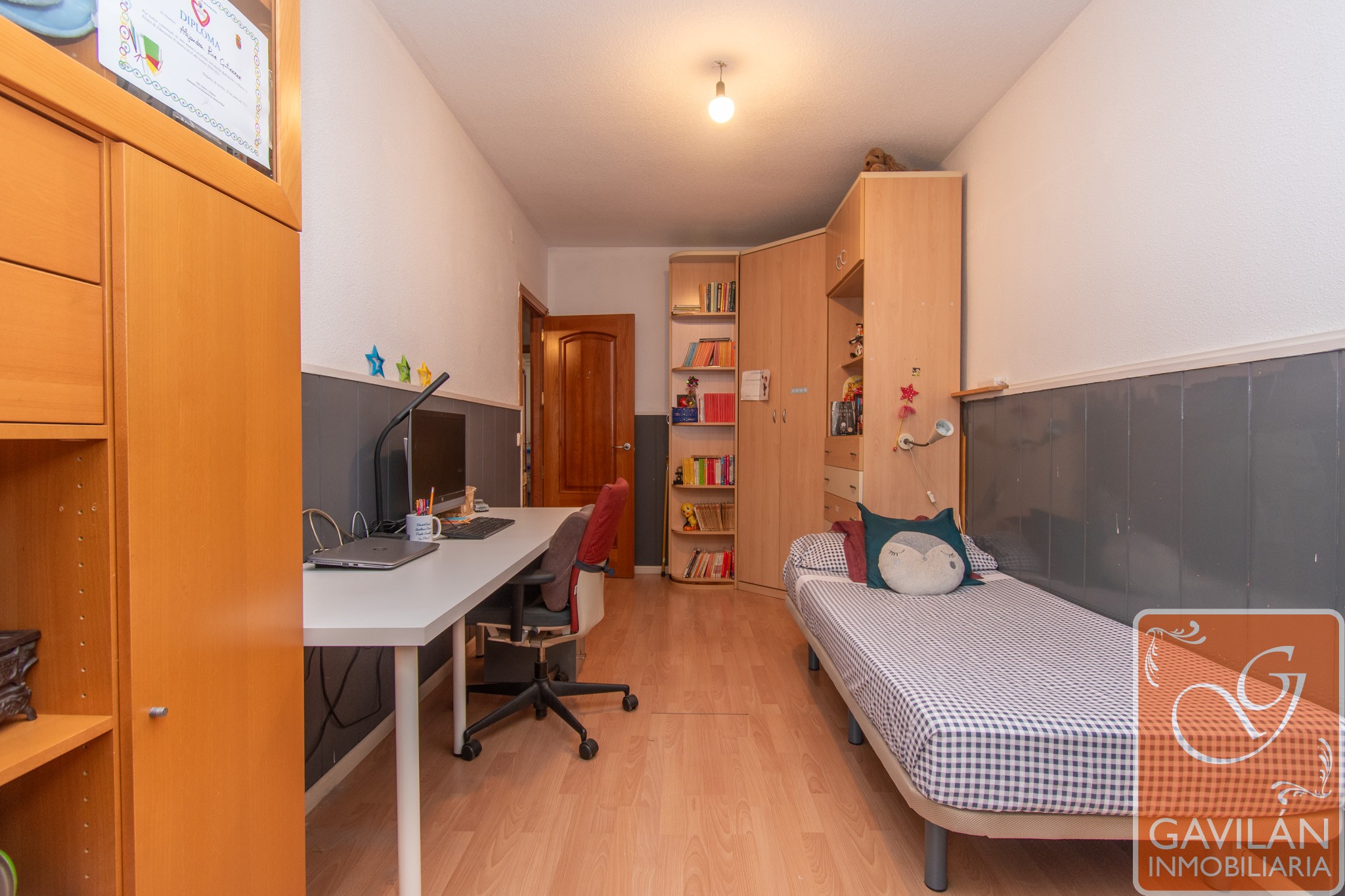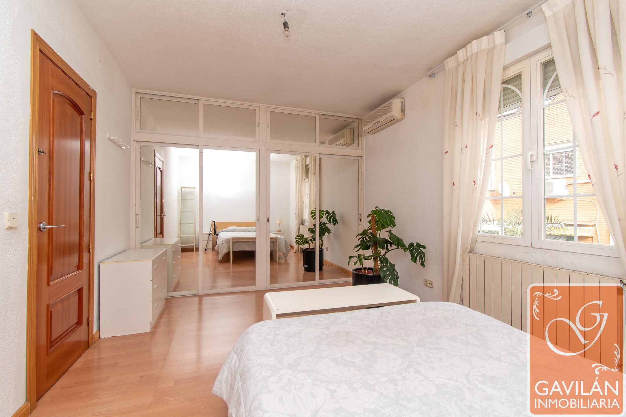 El dormitorio principal (16,7 m²) dispone de armario empotrado de cuatro cuerpos, forrado y vestido con puertas de espejo, además de aire acondicionado frío/calor.