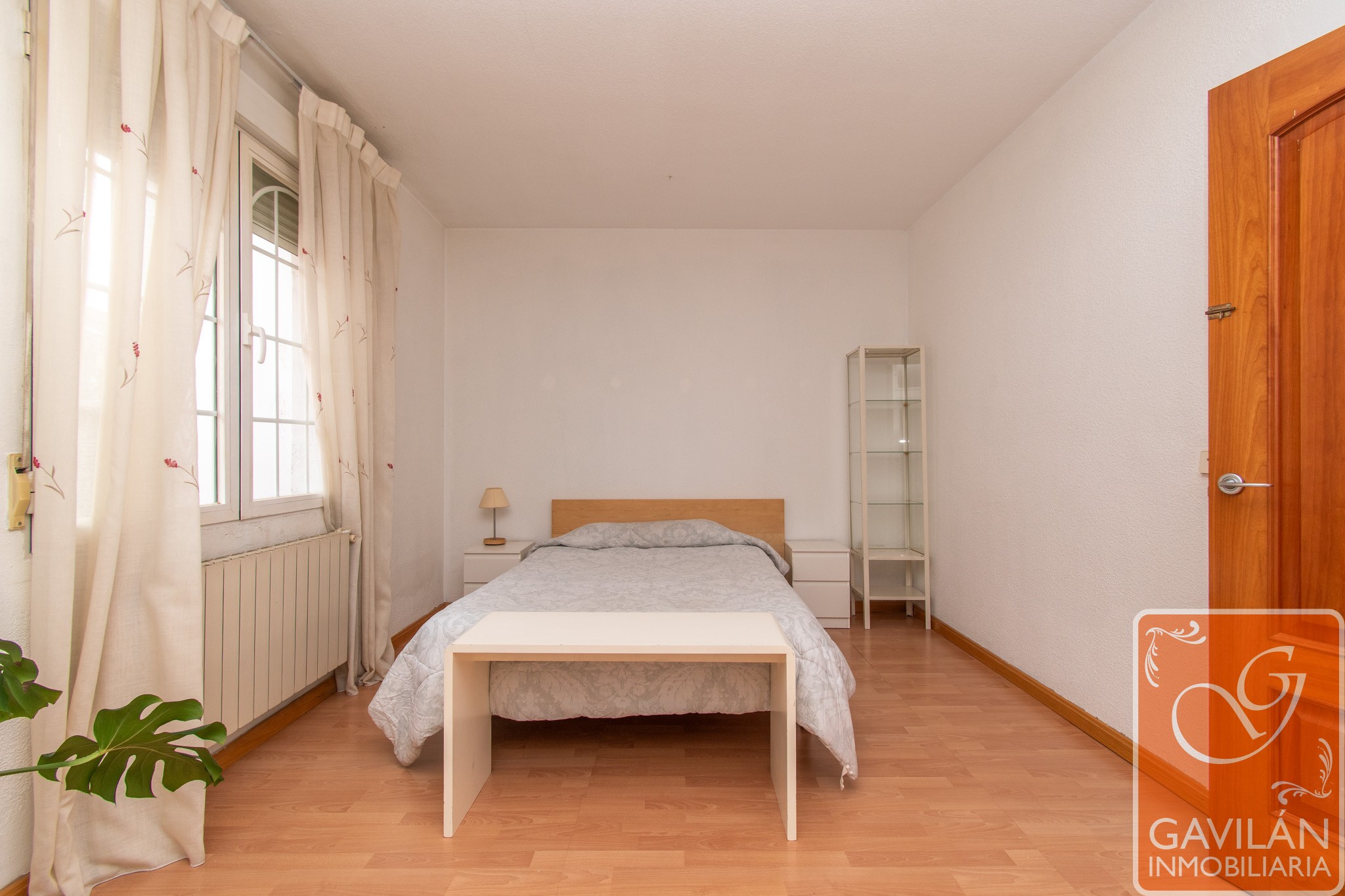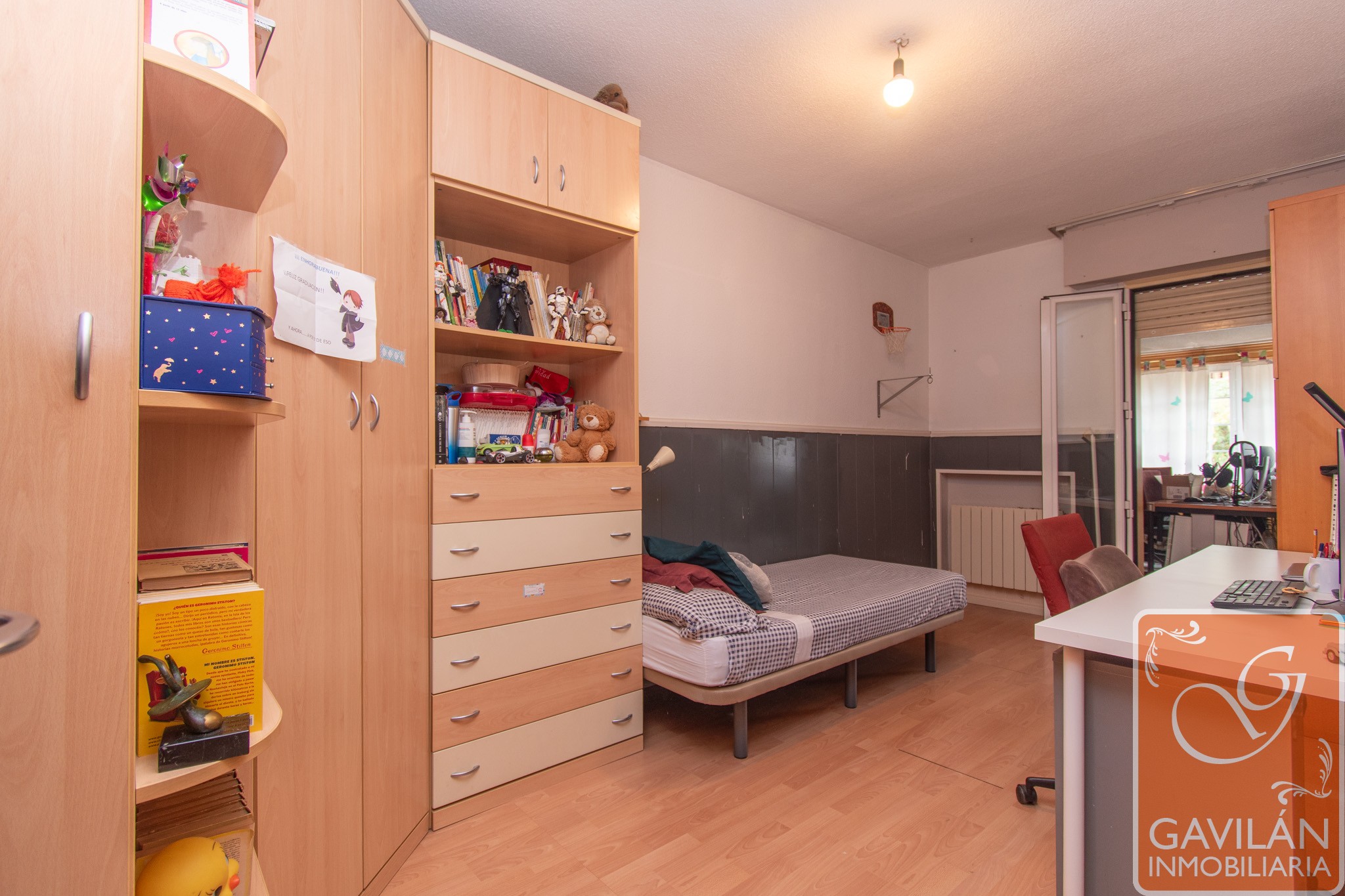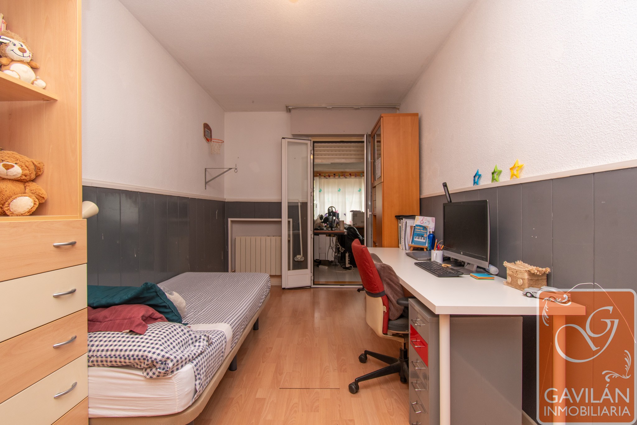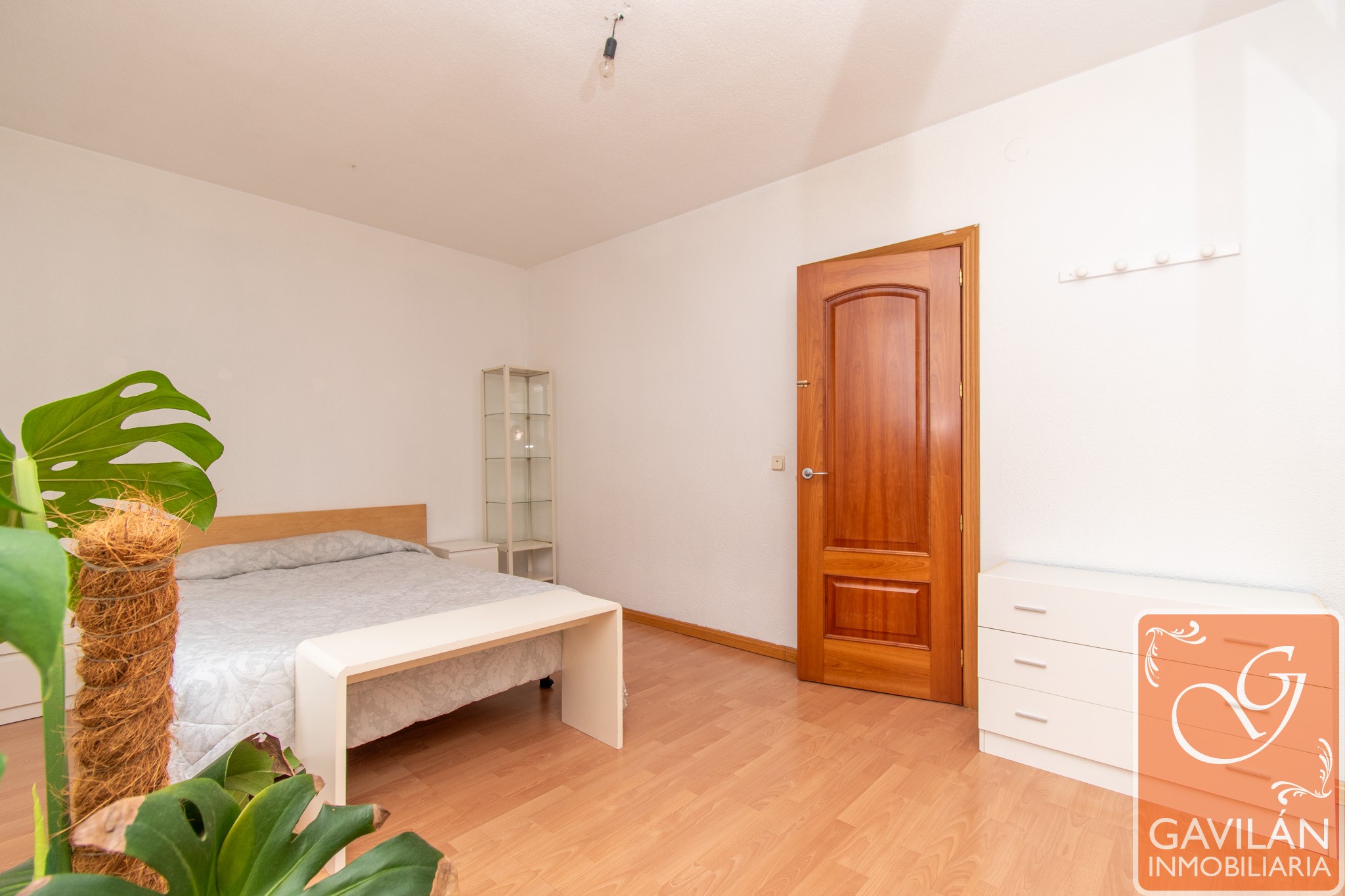 El dormitorio principal (16,7 m²) dispone de armario empotrado de cuatro cuerpos, forrado y vestido con puertas de espejo, además de aire acondicionado frío/calor.