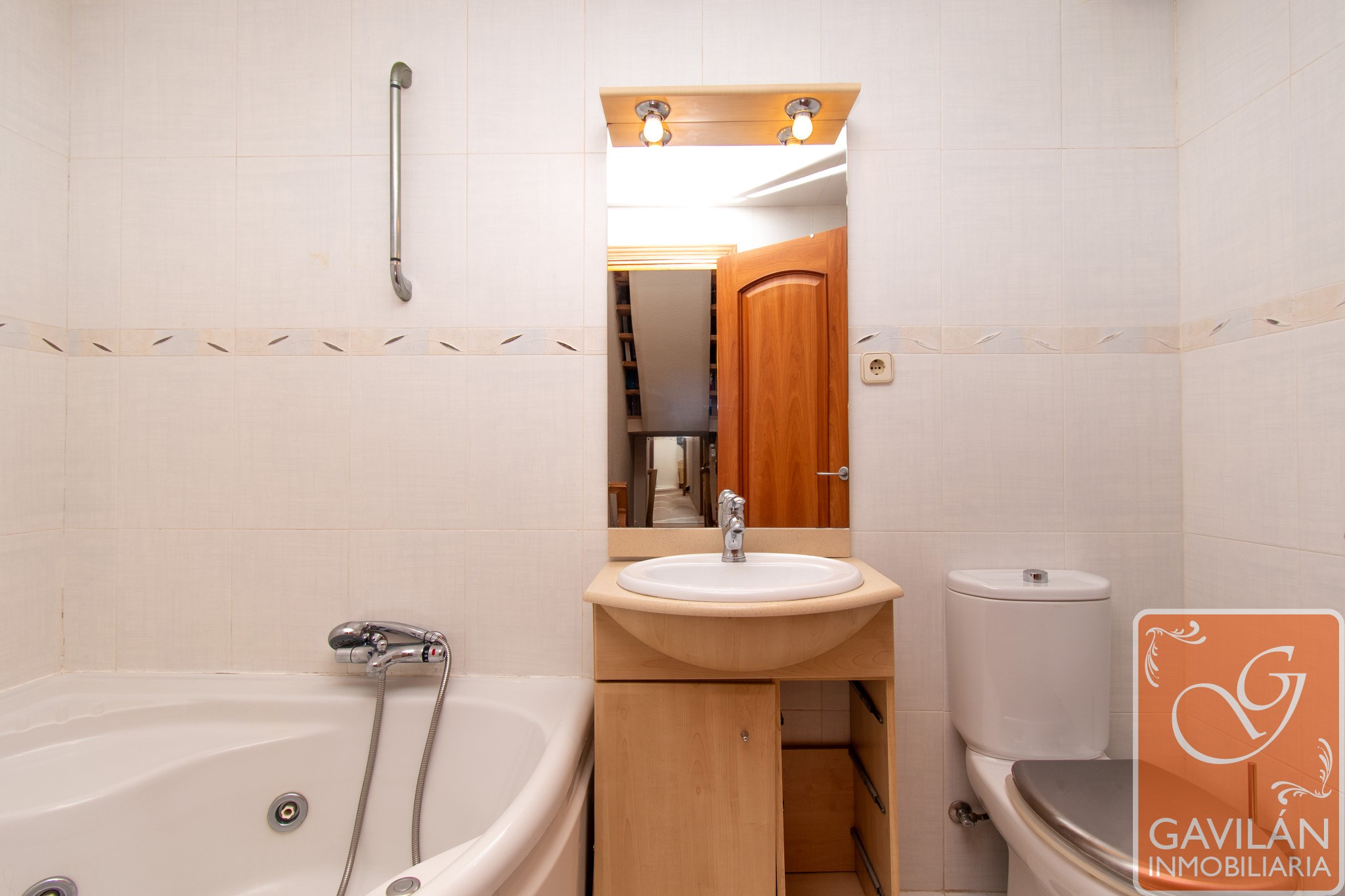 El baño de esta planta cuenta con ducha de hidromasaje, mueble lavabo, armario auxiliar y radiador-toallero.
