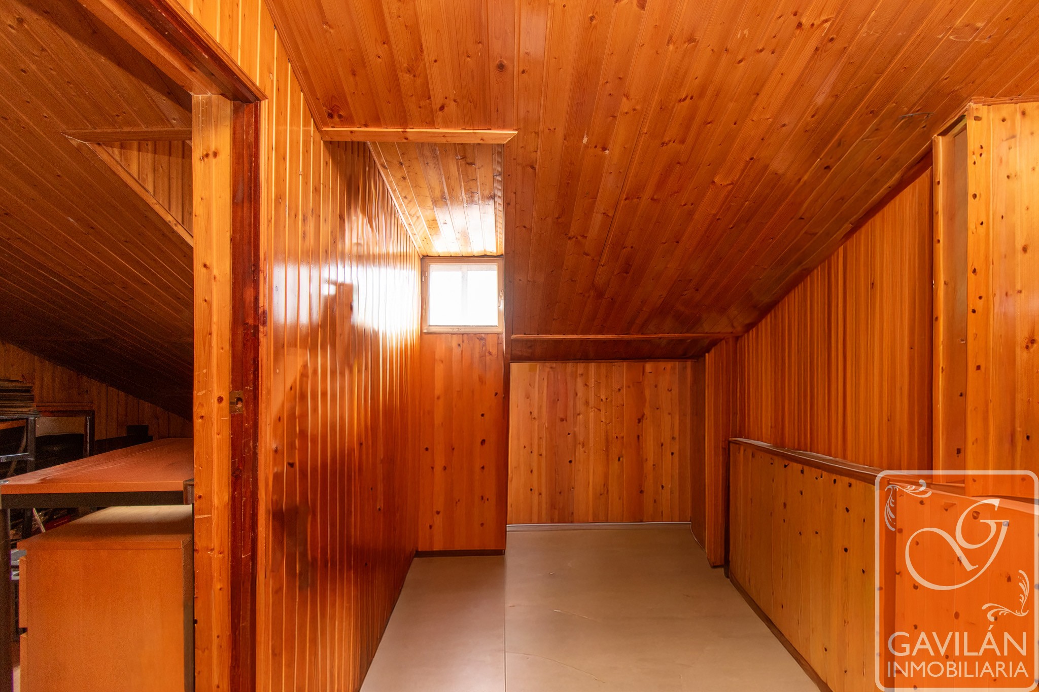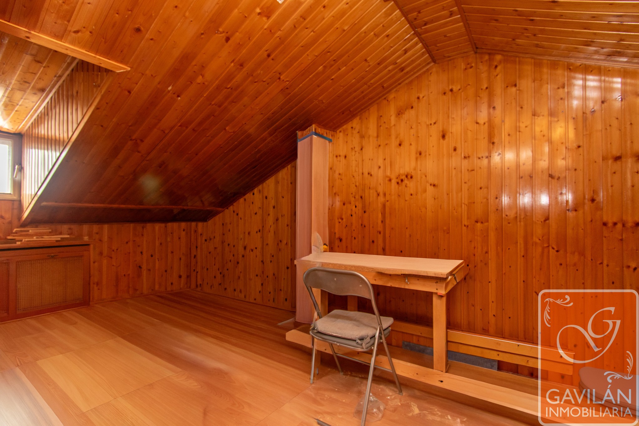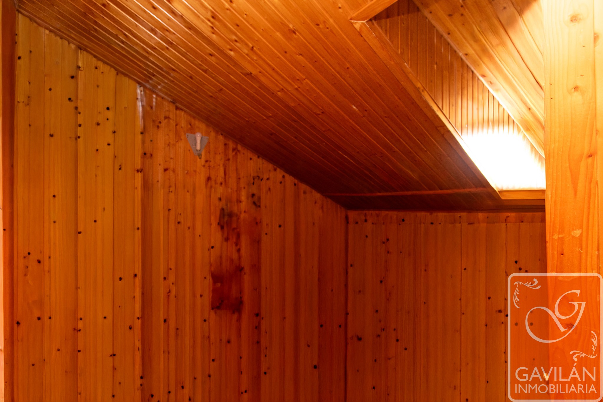 Totalmente cerrada y forrada en madera, la buhardilla se distribuye en un salón (10,45 m²) con ventana y aire acondicionado, dormitorio auxiliar (5,15 m²) y dos trasteros con iluminación, perfectos para almacenaje.