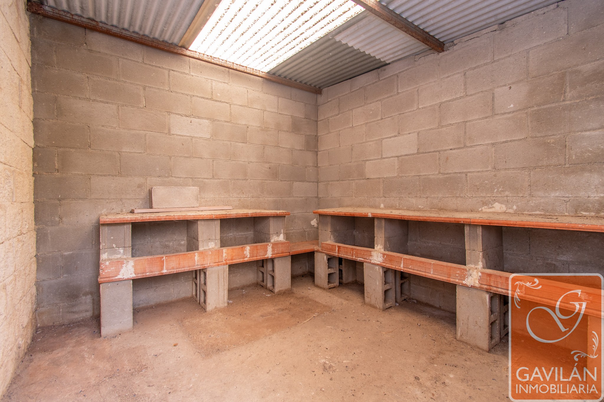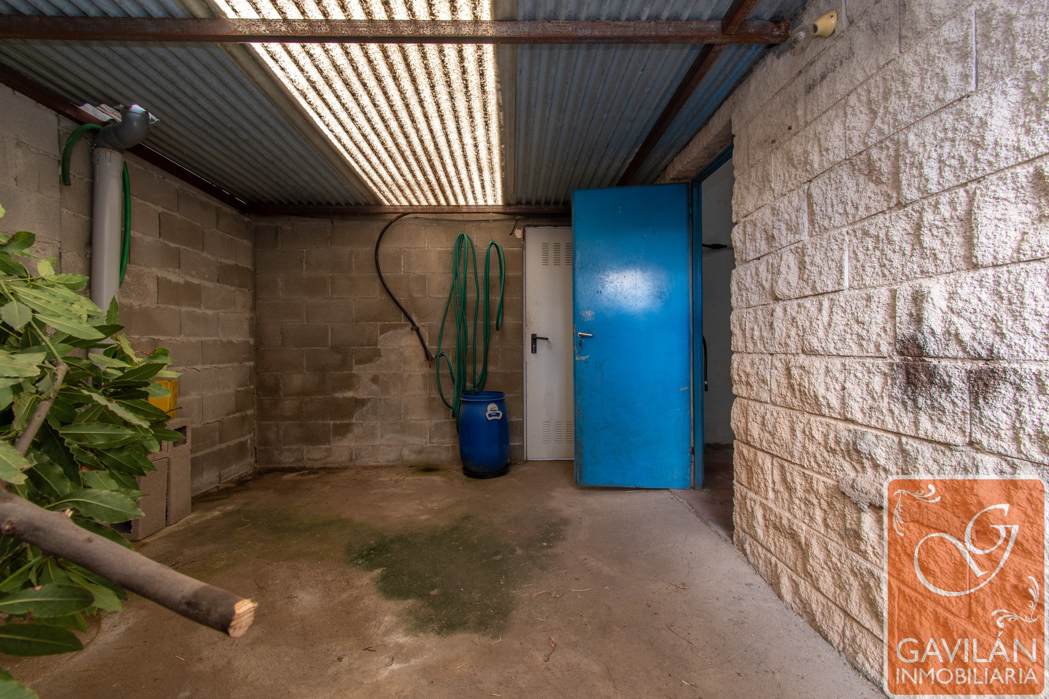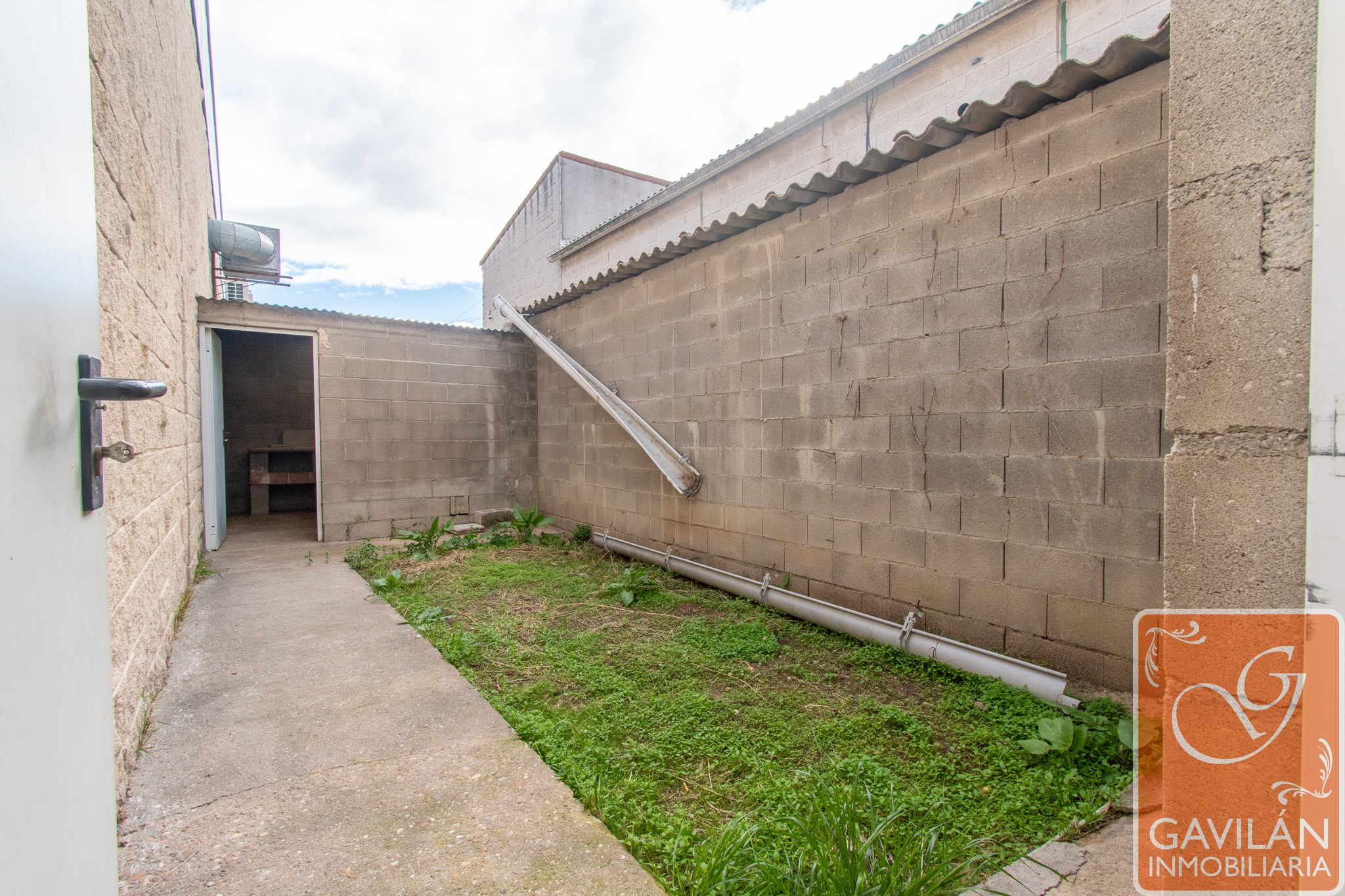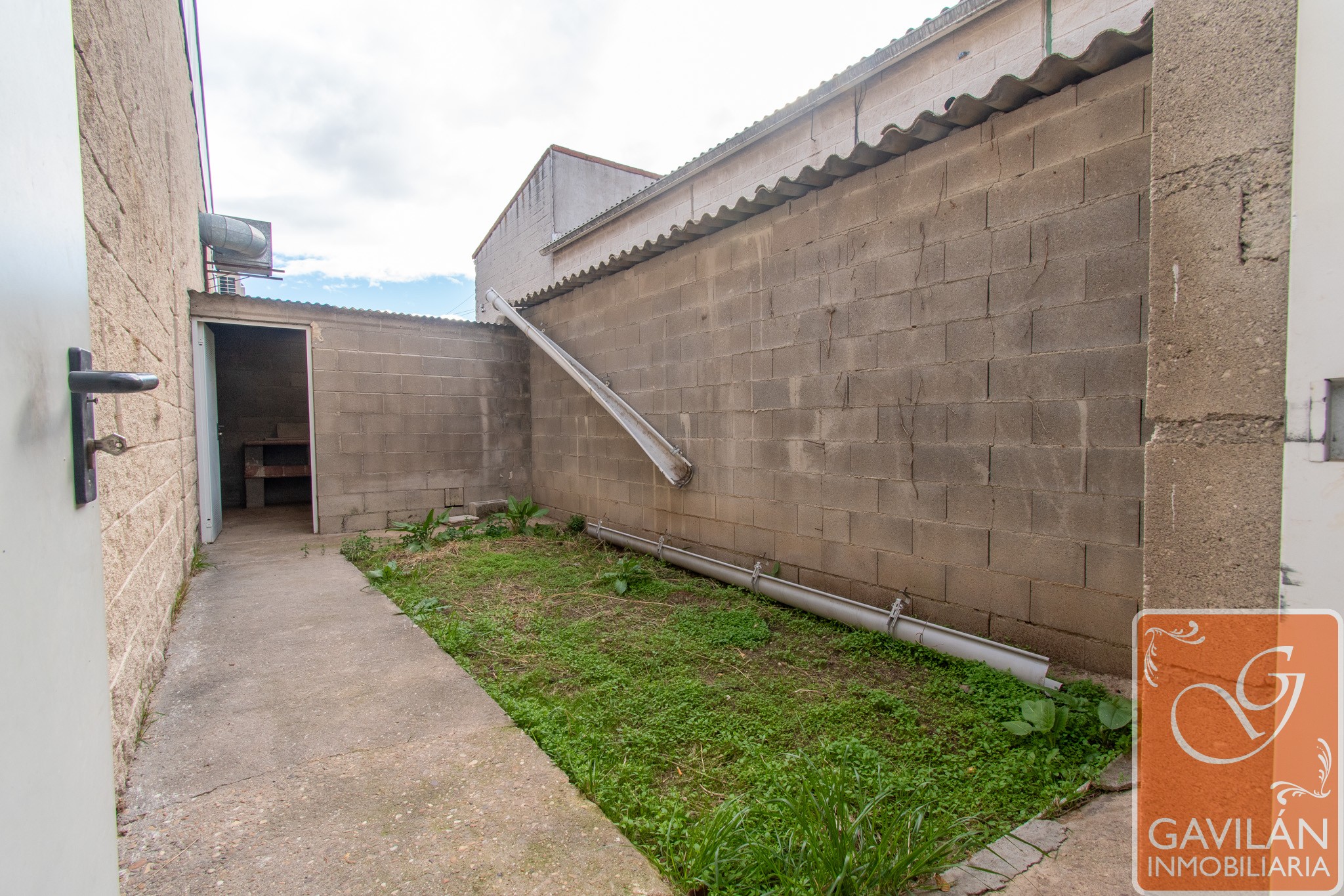* Patio trasero techado de 13,50 m² con toma de agua y estructuras tipo cheniles.