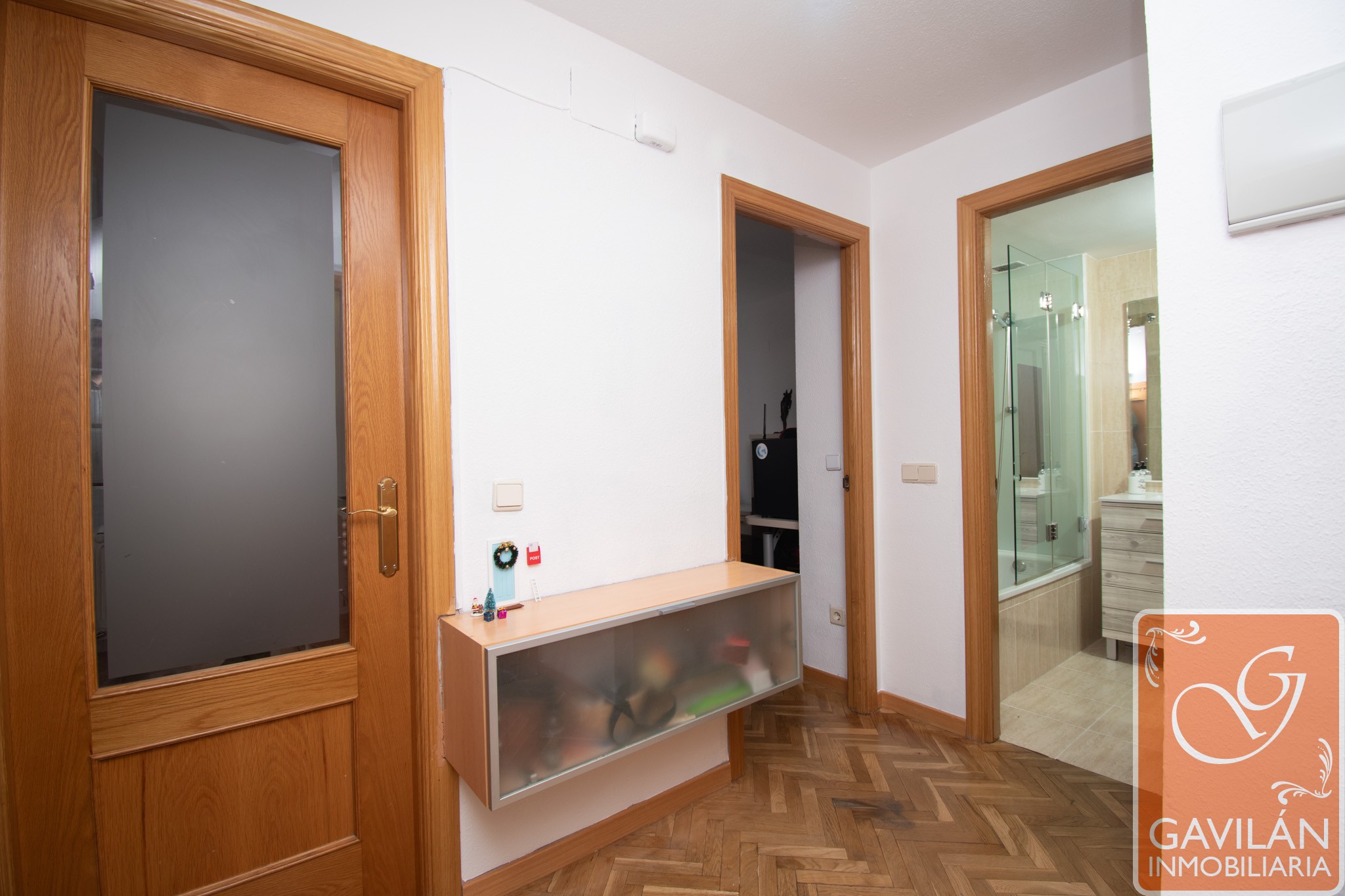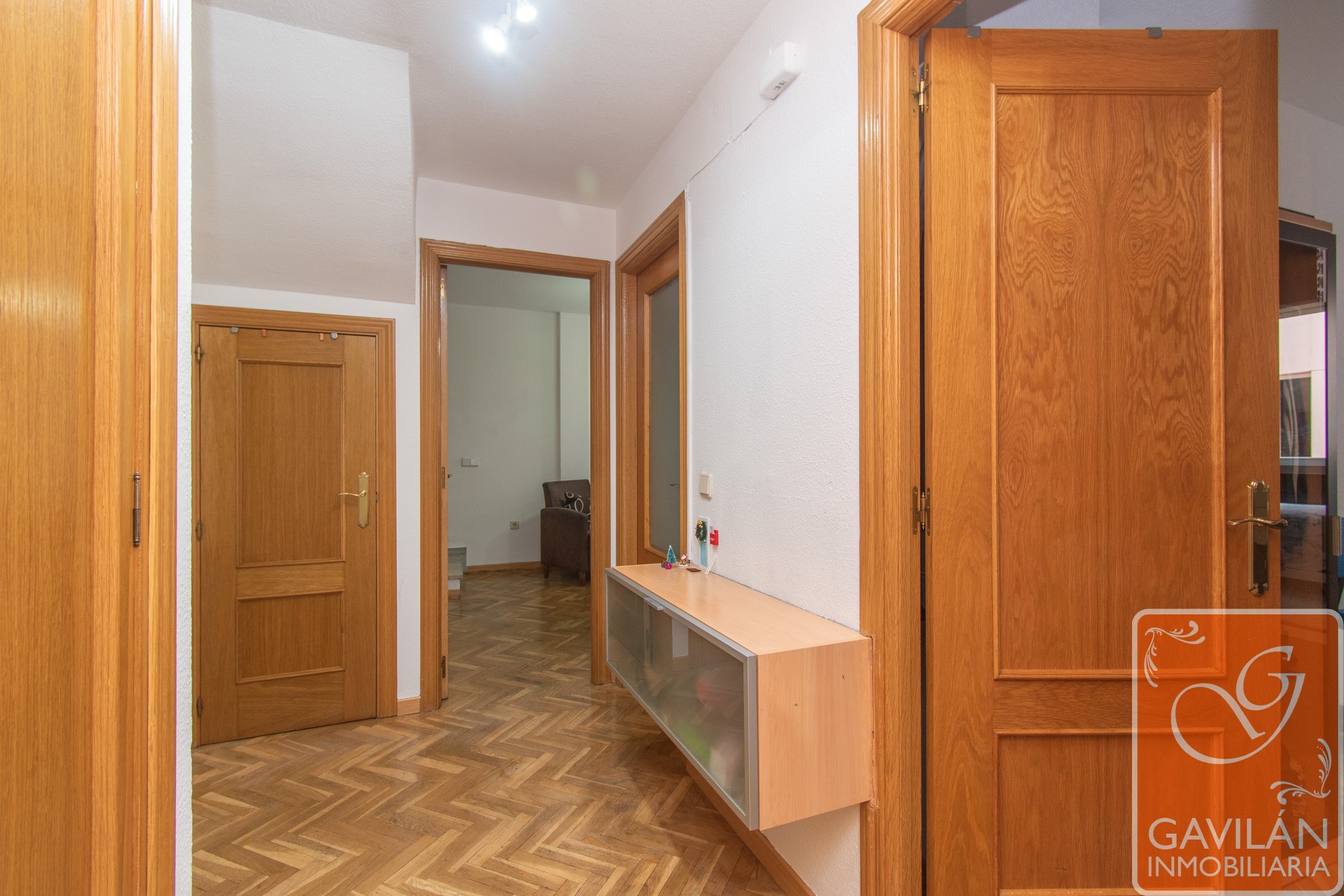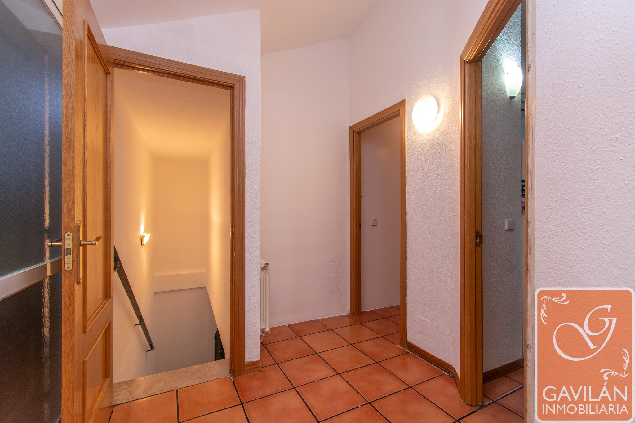 Cómodo Hall equipado con un armario empotrado de dos cuerpos, otro armario bajo la escalera ideal para almacenaje, puerta blindada y portero automático.