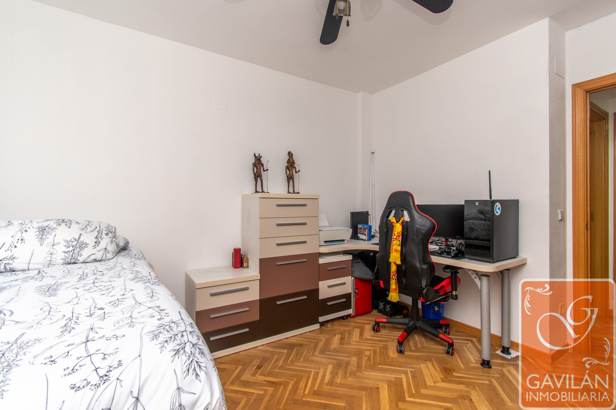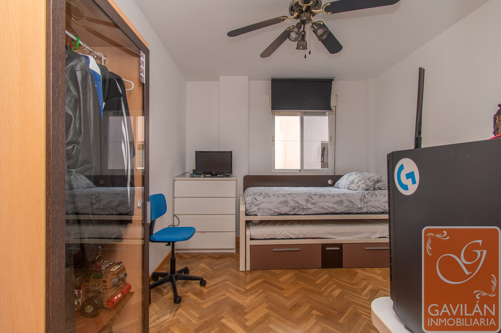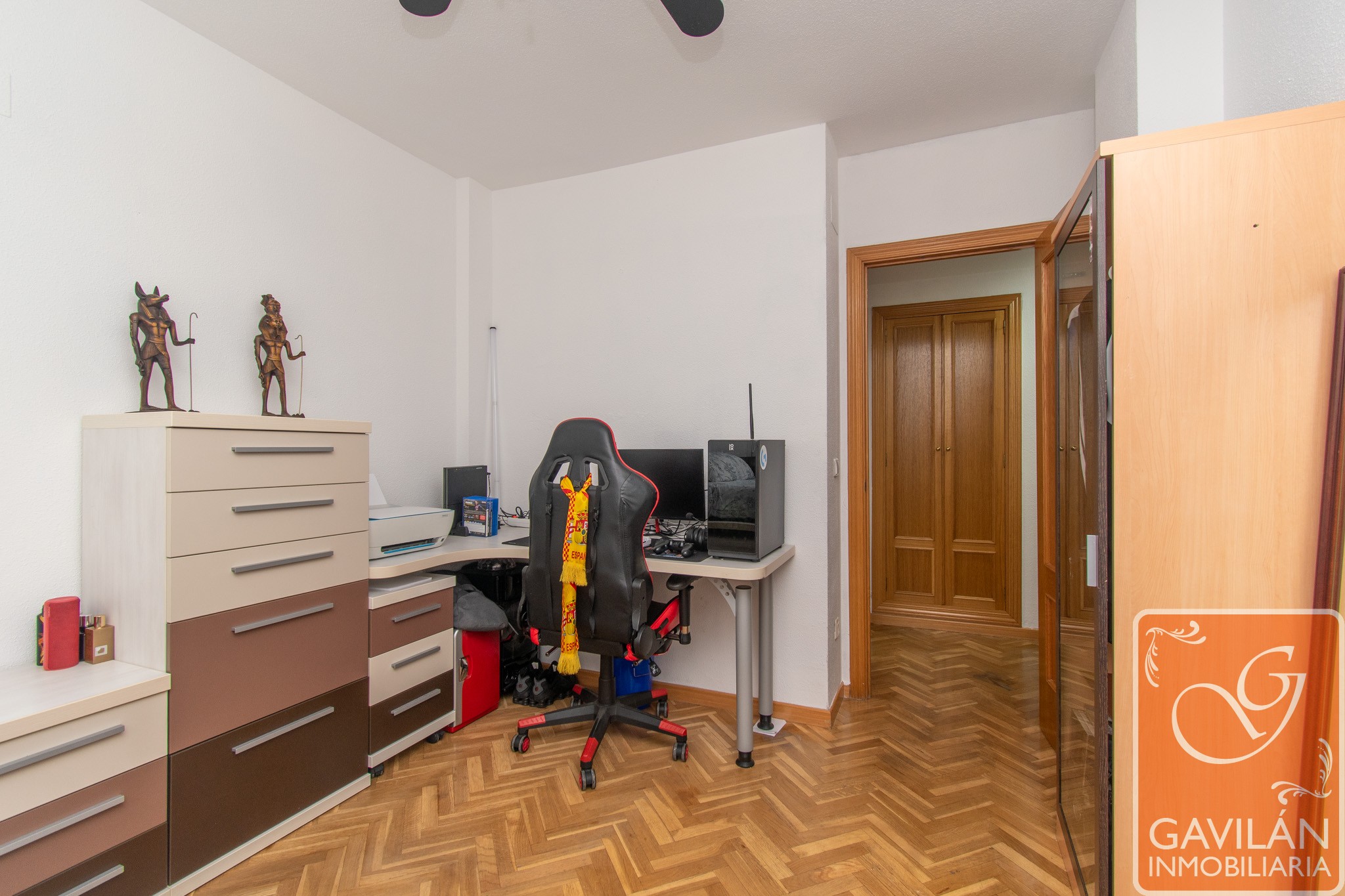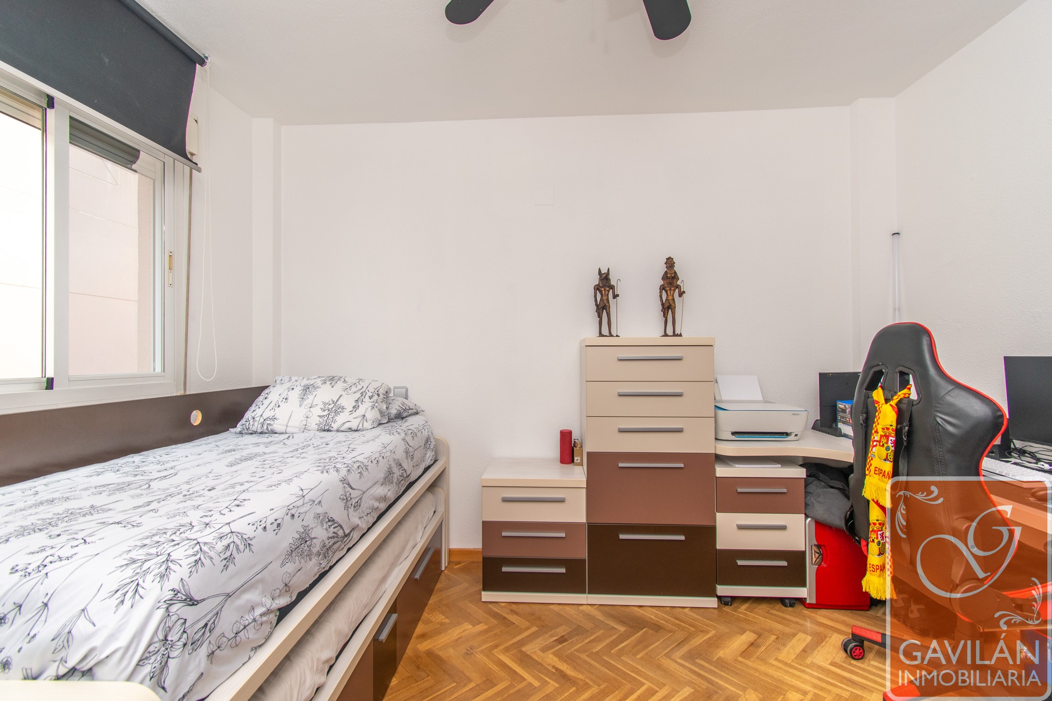 En la planta alta, el distribuidor da paso al segundo baño, con WC, lavabo con armario, espejo. En la misma planta también se encuentran dos amplísimos dormitorios, uno con armario empotrado de tres cuerpos totalmente forrado y vestido y aire acondicionado con bomba de calor