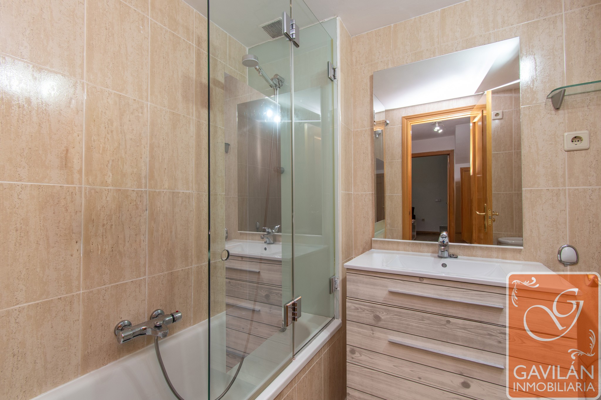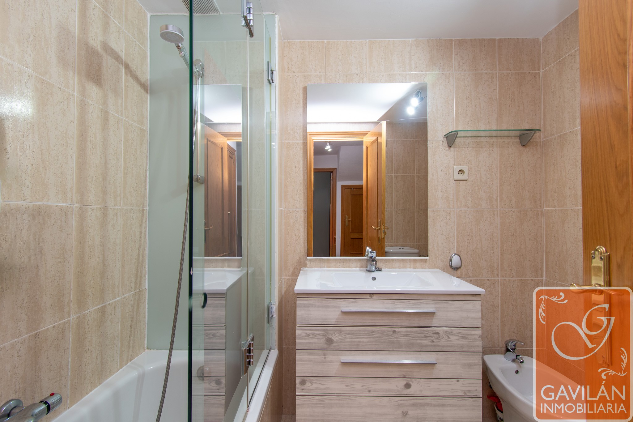 En la planta baja también se dispone de un baño completo, con lavabo con mueble, espejo, bañera con mampara, WC y bidé. Completa la planta un dormitorio de 10,9 m².