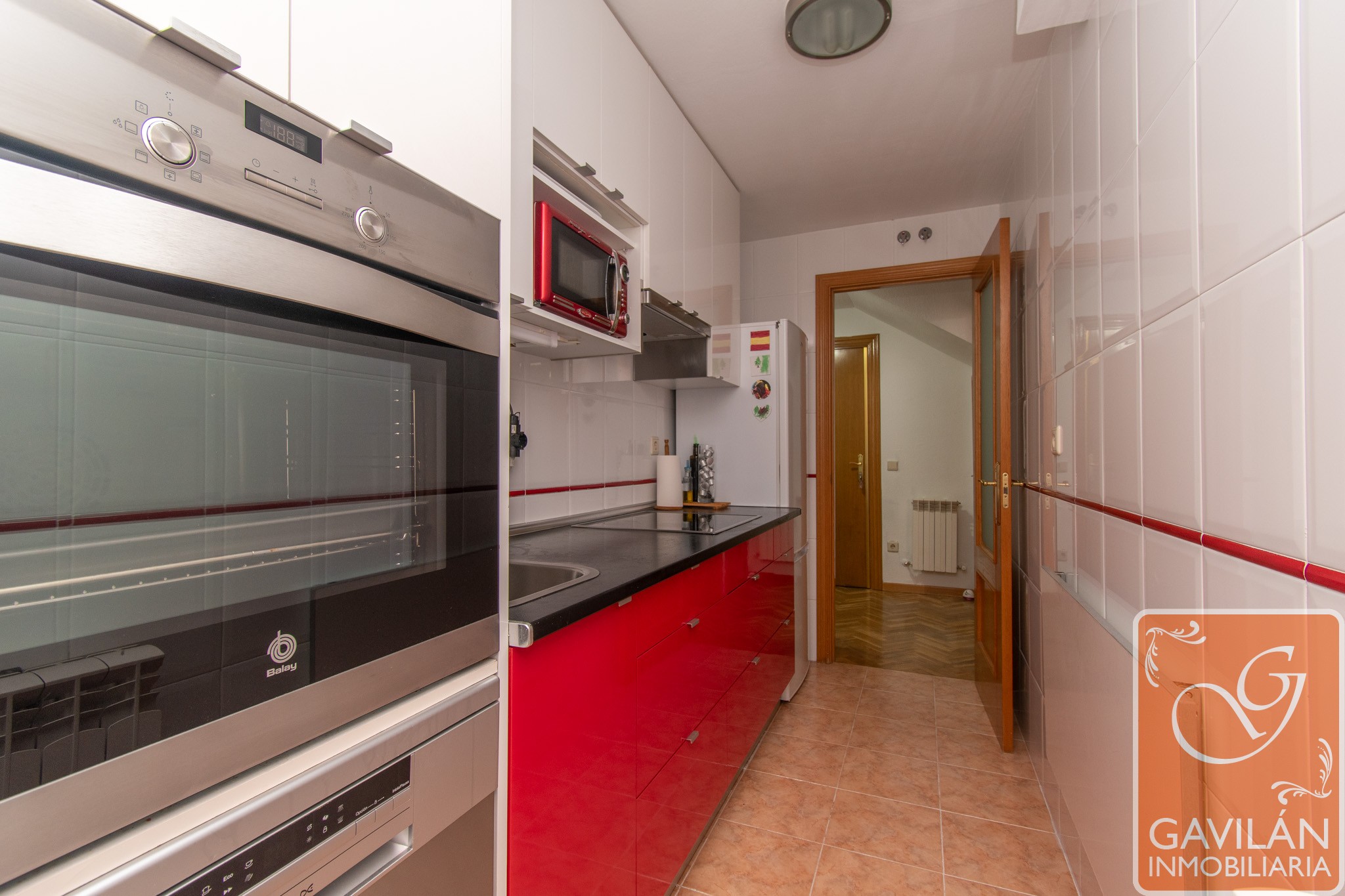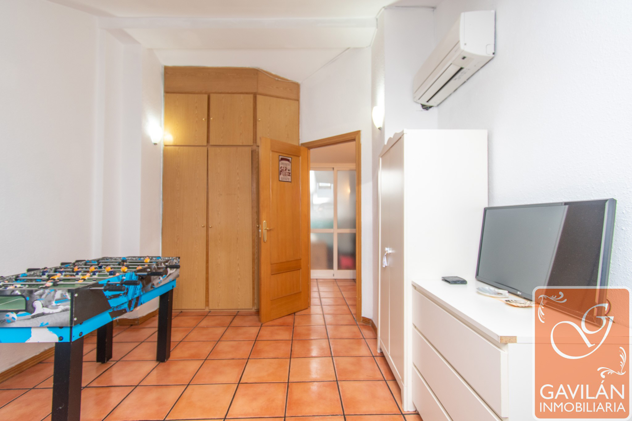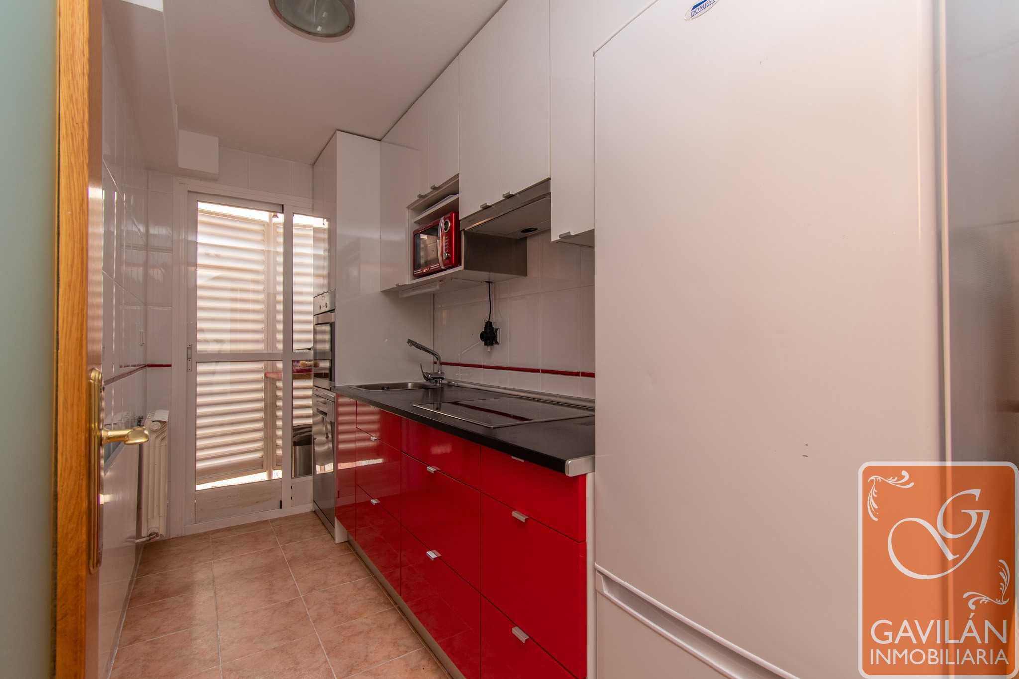 Un luminoso salón con aire acondicionado con bomba de calor, la cocina, está totalmente equipada: vitrocerámica, campana, horno, lavavajillas y muebles altos y bajos bien distribuidos. Desde aquí se accede al tendedero.
