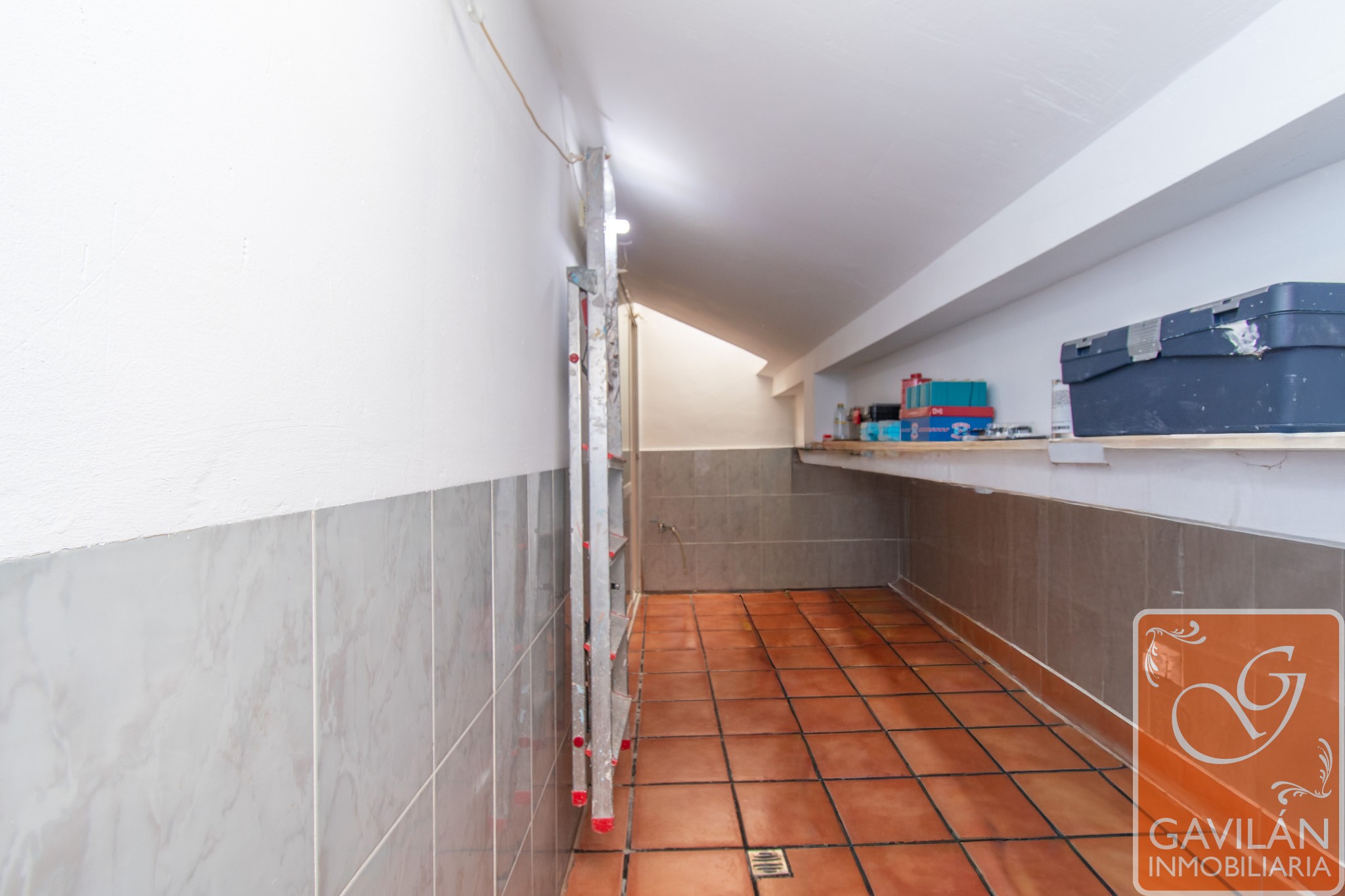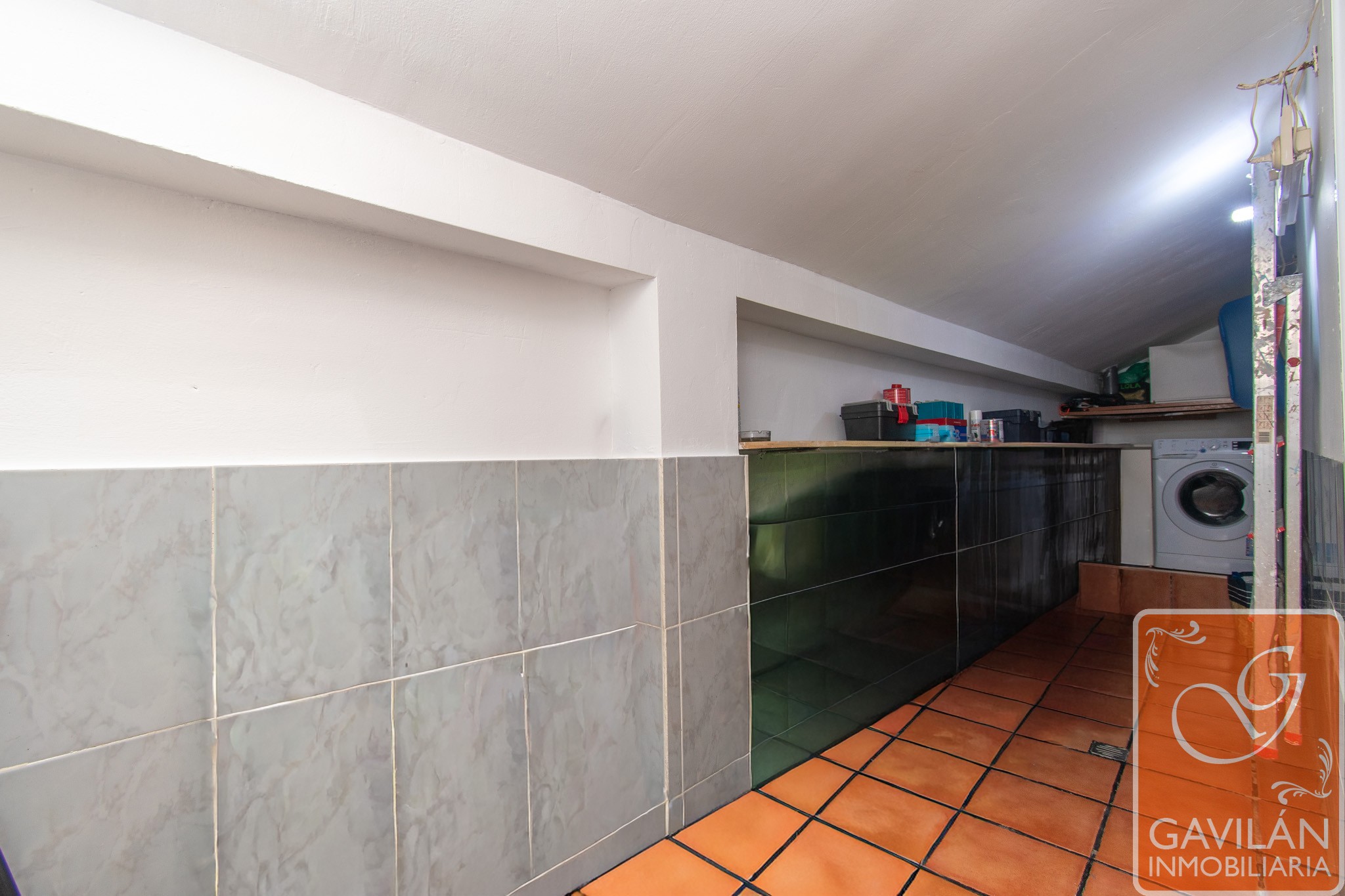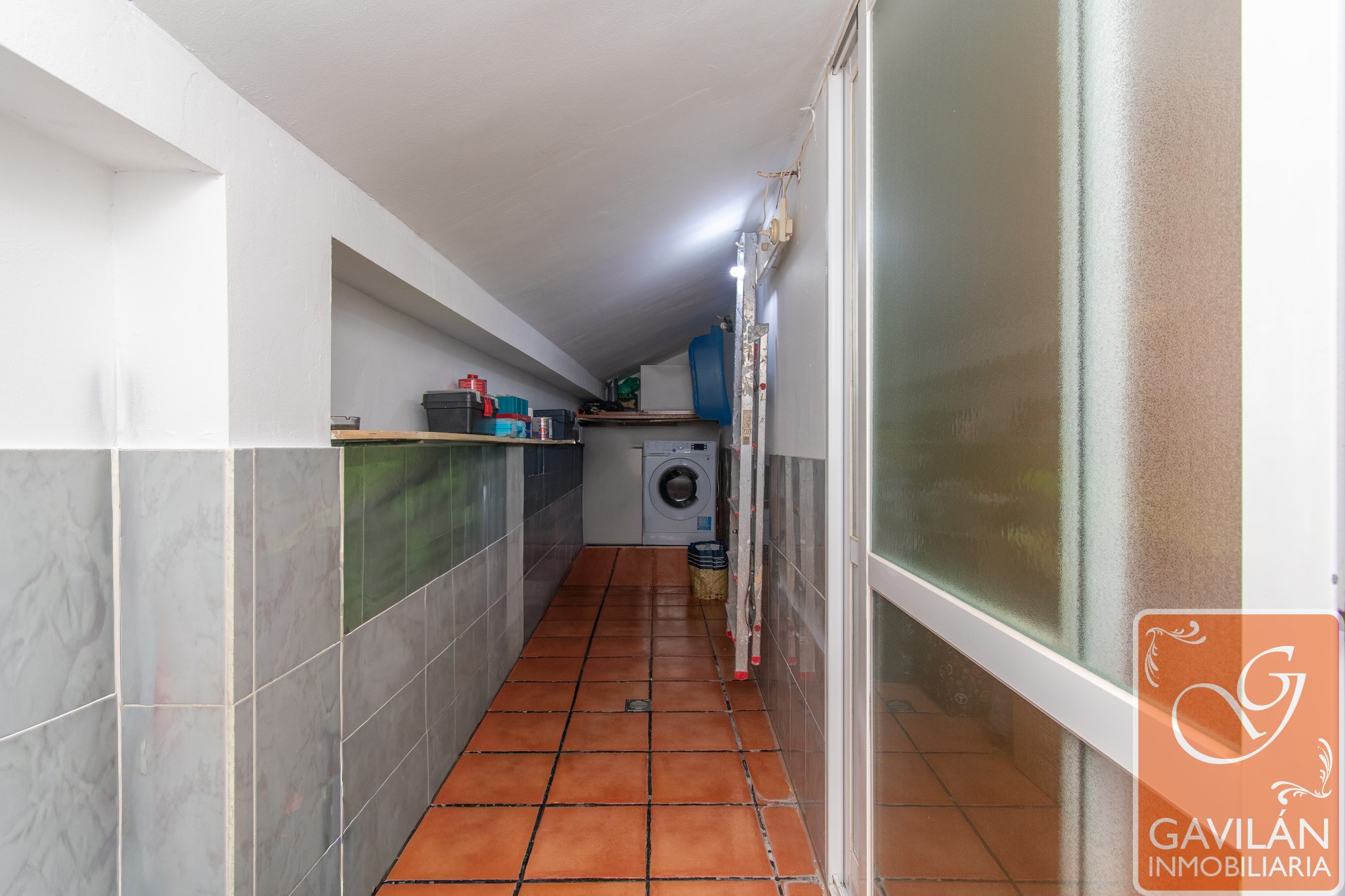 Una cómoda terraza con una pequeña zona de lavandería, ya que cuenta con toma de agua fría y caliente, sumidero, toma para lavadora y Velux.