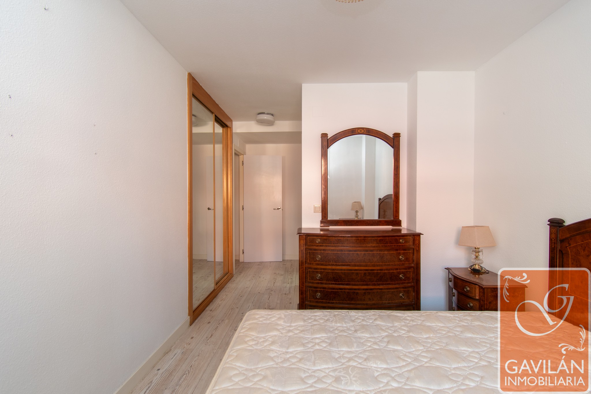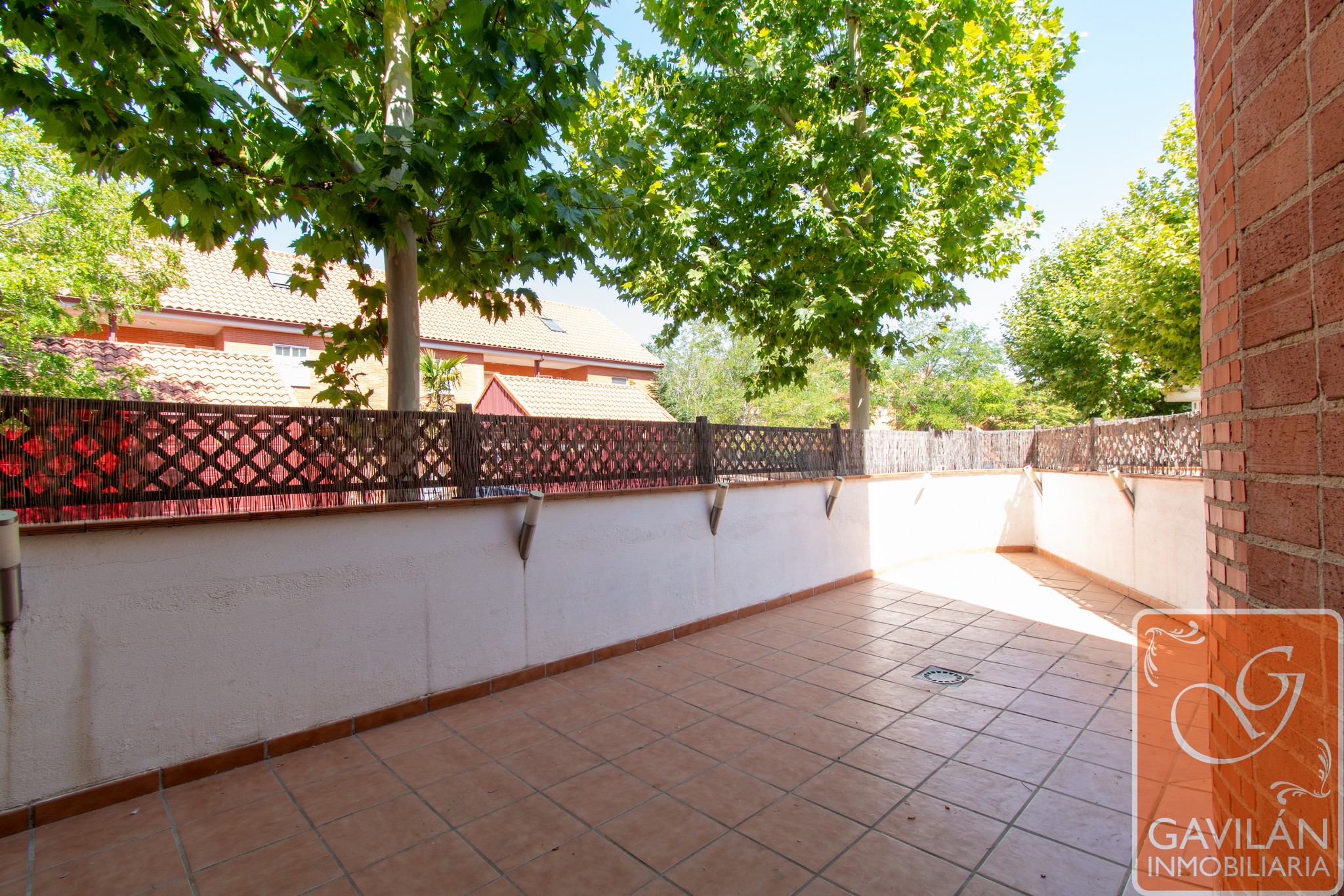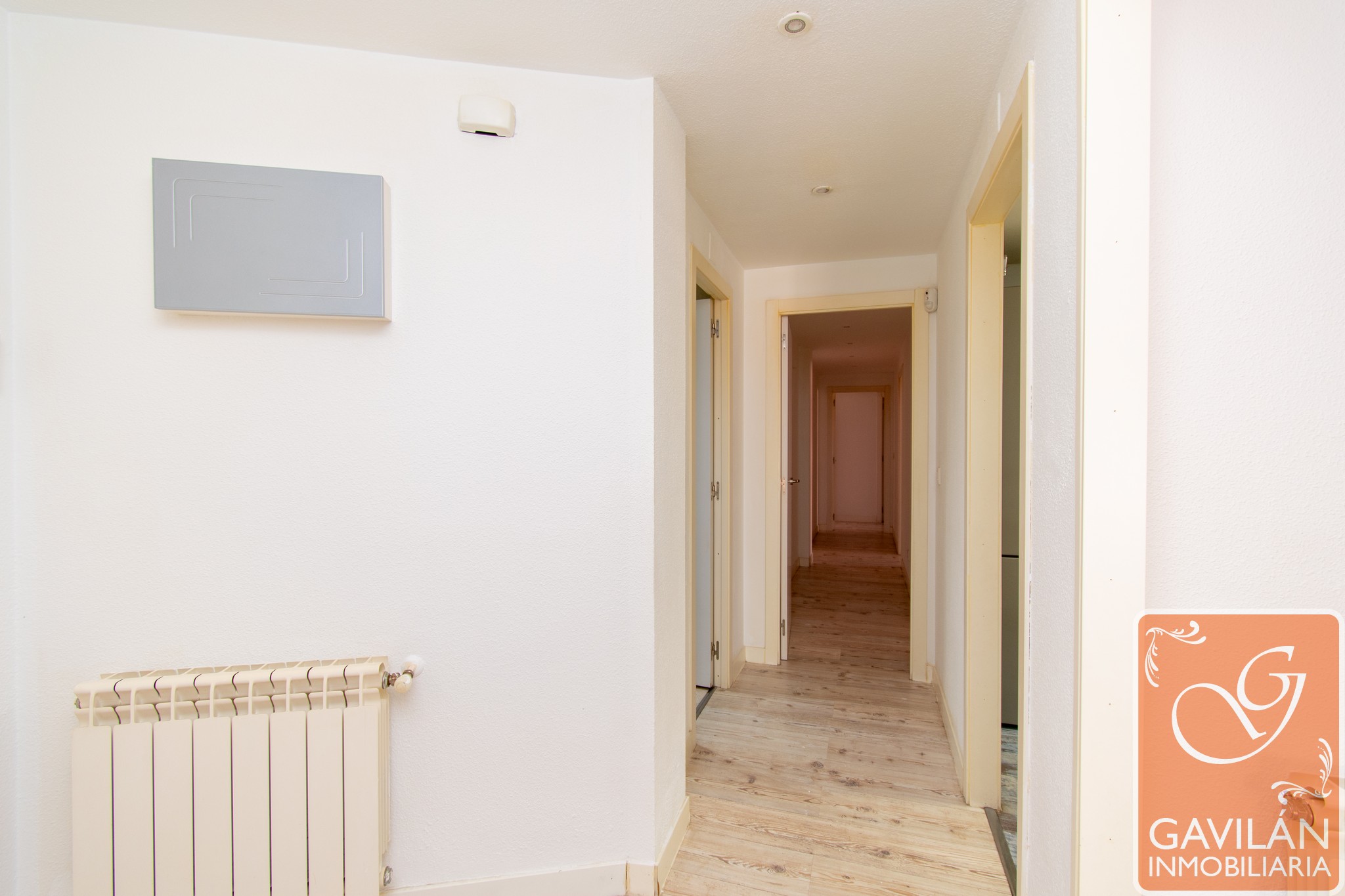 Amplio hall con armario empotrado completamente vestido, puerta blindada y sistema de alarma. Salón de 28m² muy luminoso luminosidad, con aire acondicionado con bomba de calor y salida directa a una agradable terraza-patio.