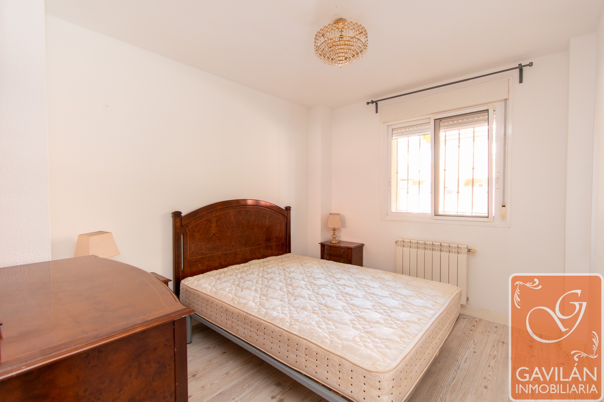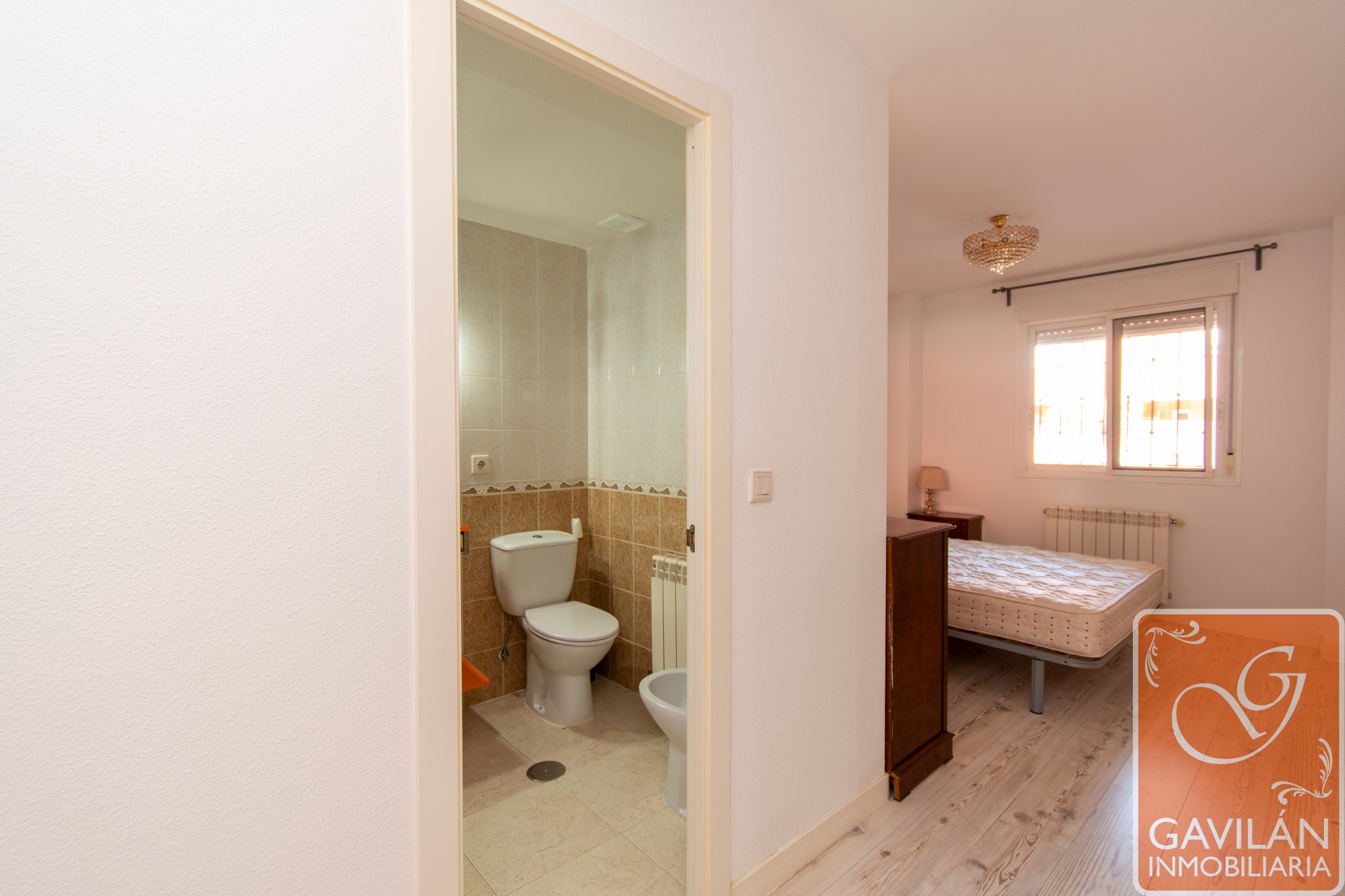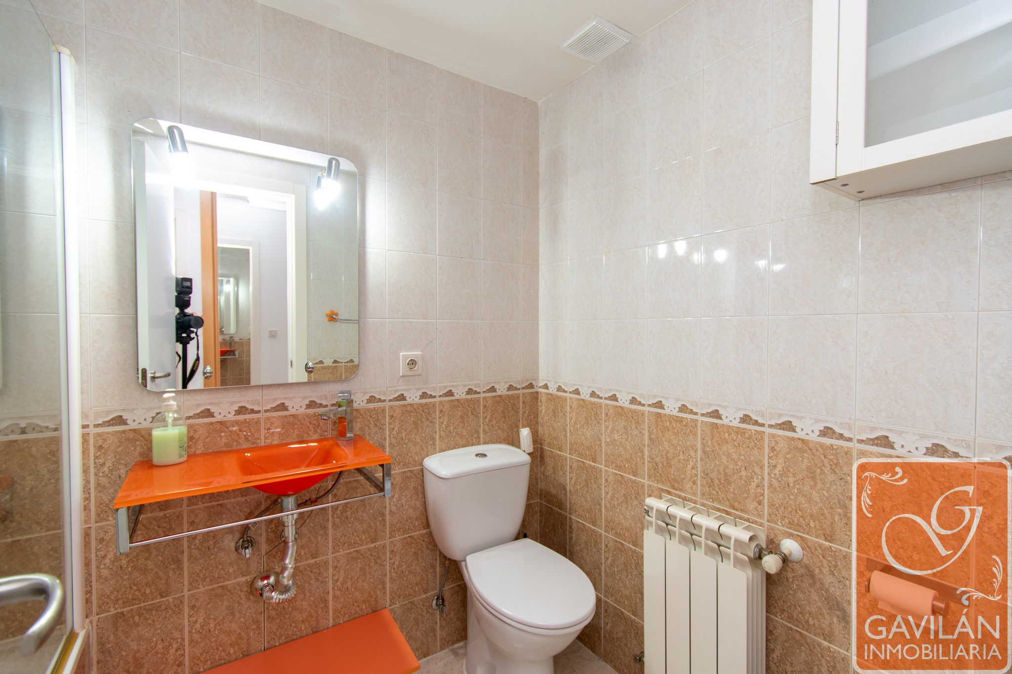 Amplio hall con armario empotrado completamente vestido, puerta blindada y sistema de alarma. Salón de 28m² muy luminoso luminosidad, con aire acondicionado con bomba de calor y salida directa a una agradable terraza-patio.