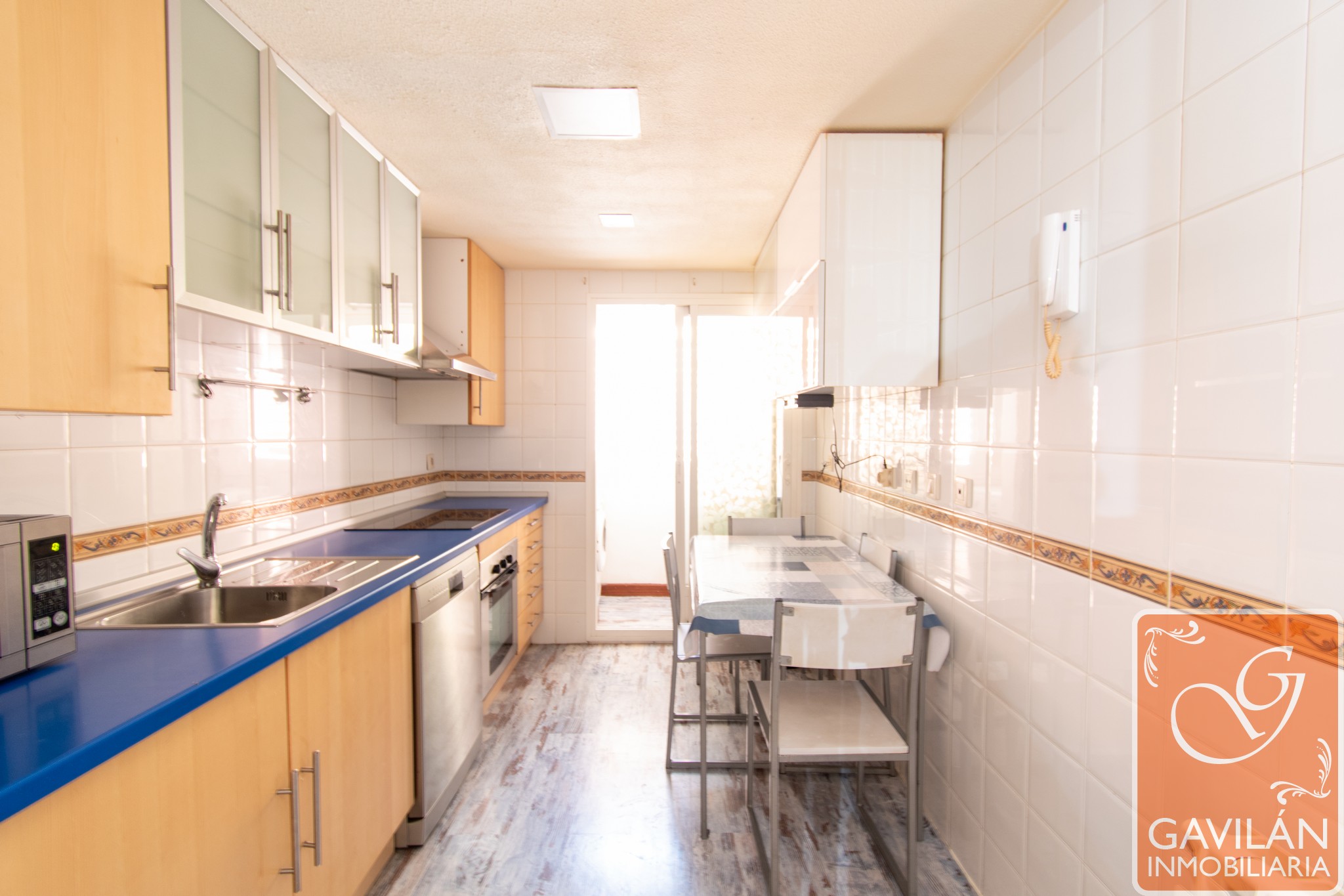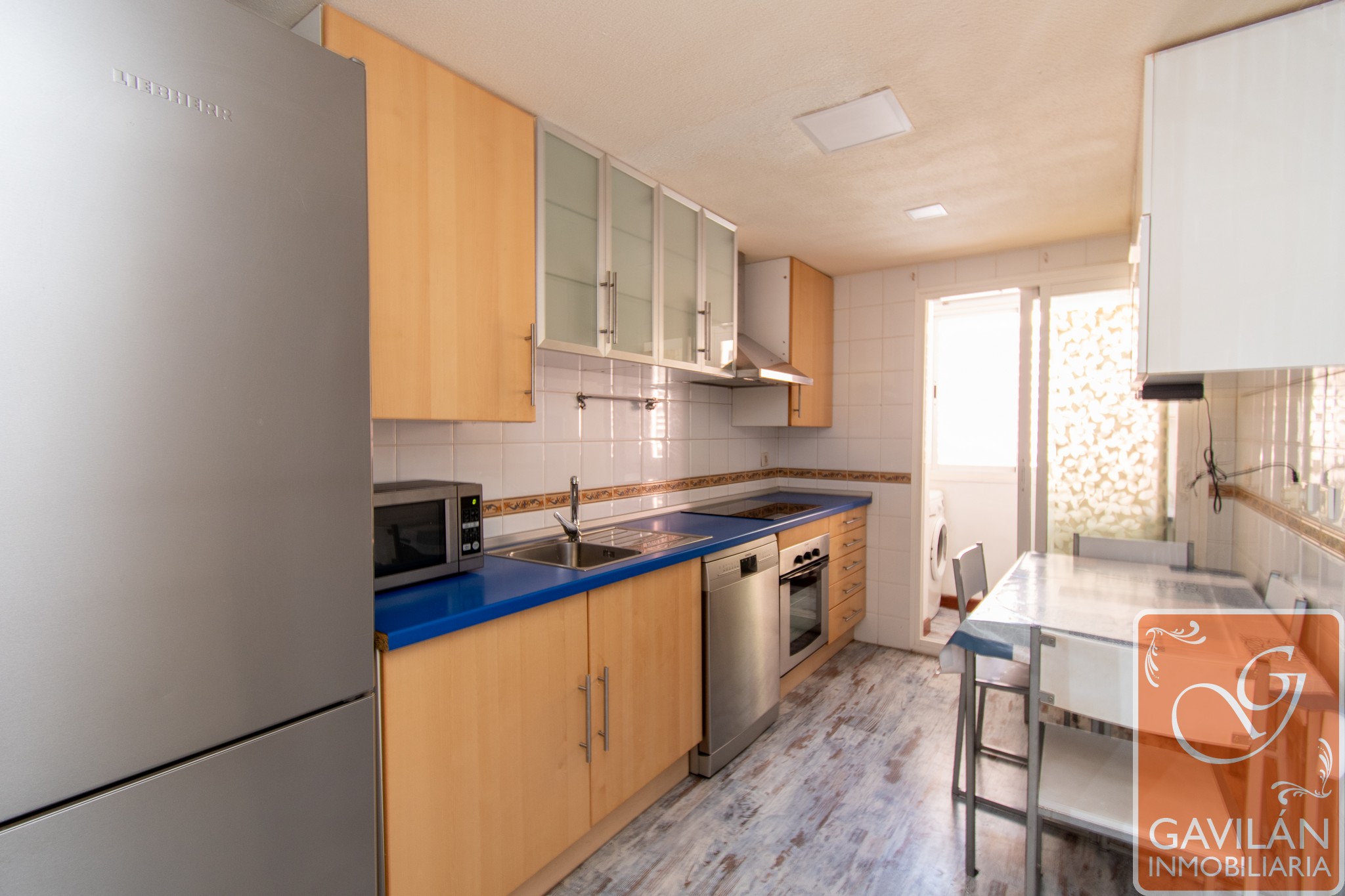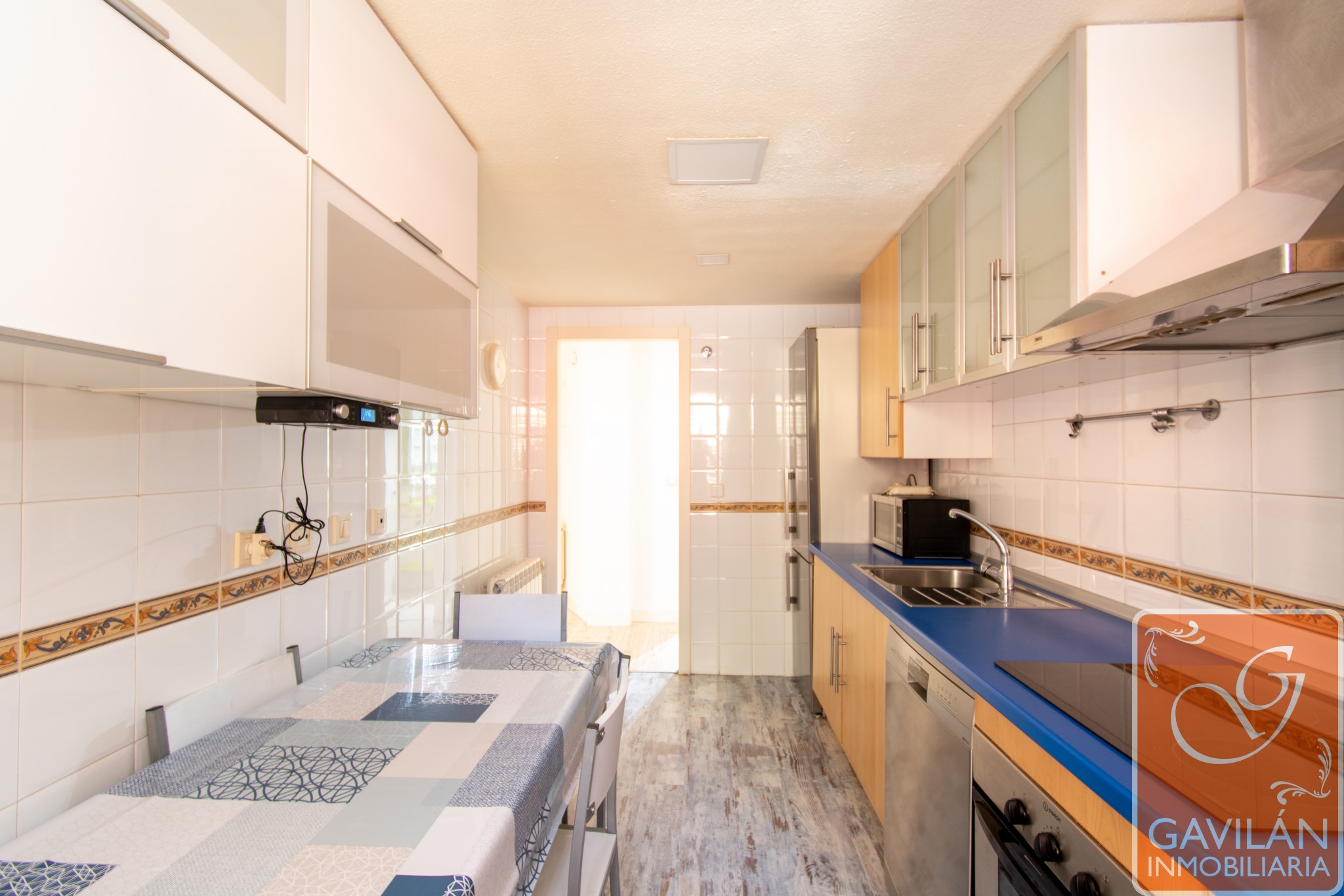 La cocina es práctica y funcional, equipada con muebles y electrodomésticos, y cuenta además con un tendedero acristalado donde se ubica la caldera de gas.