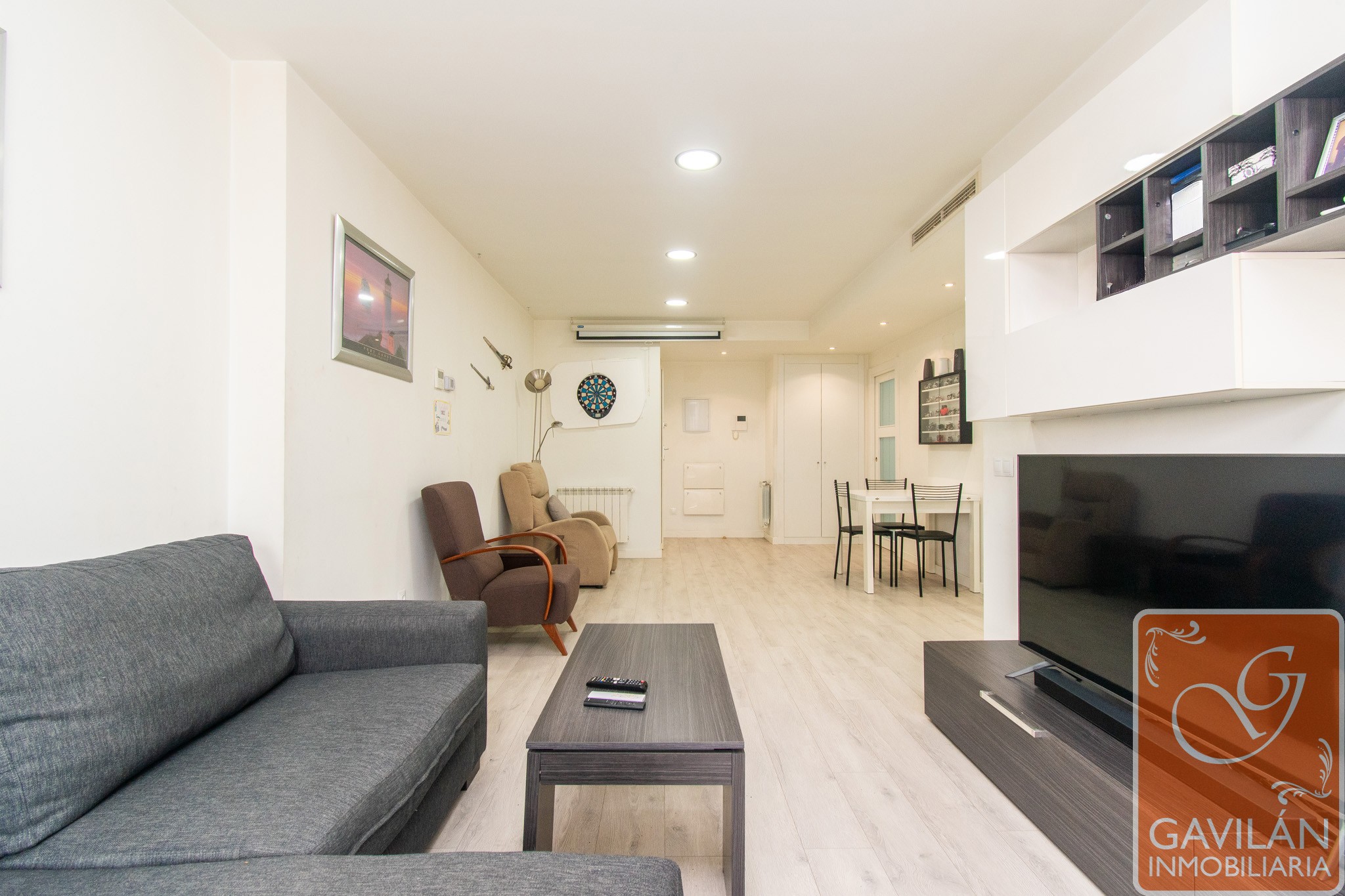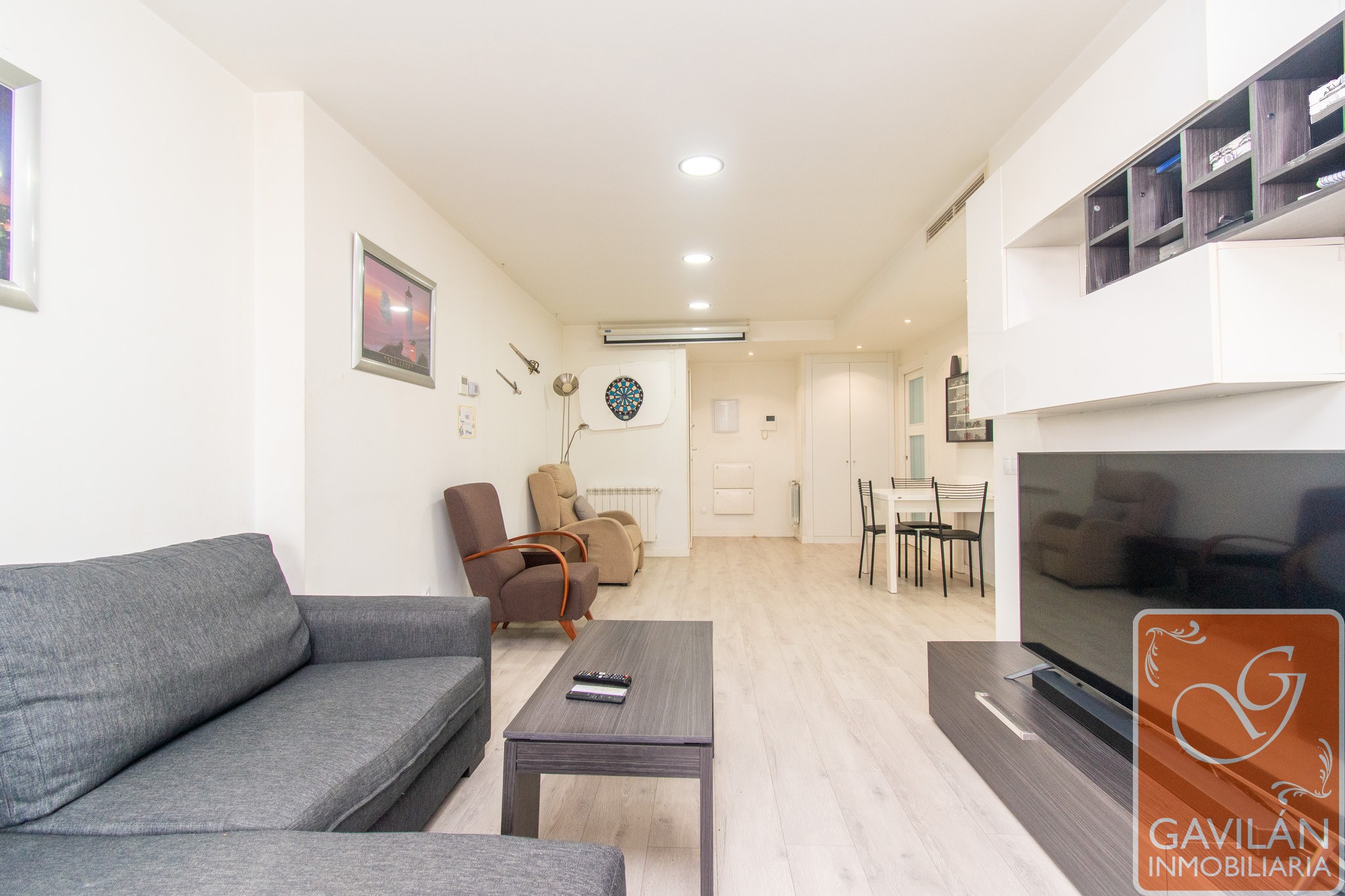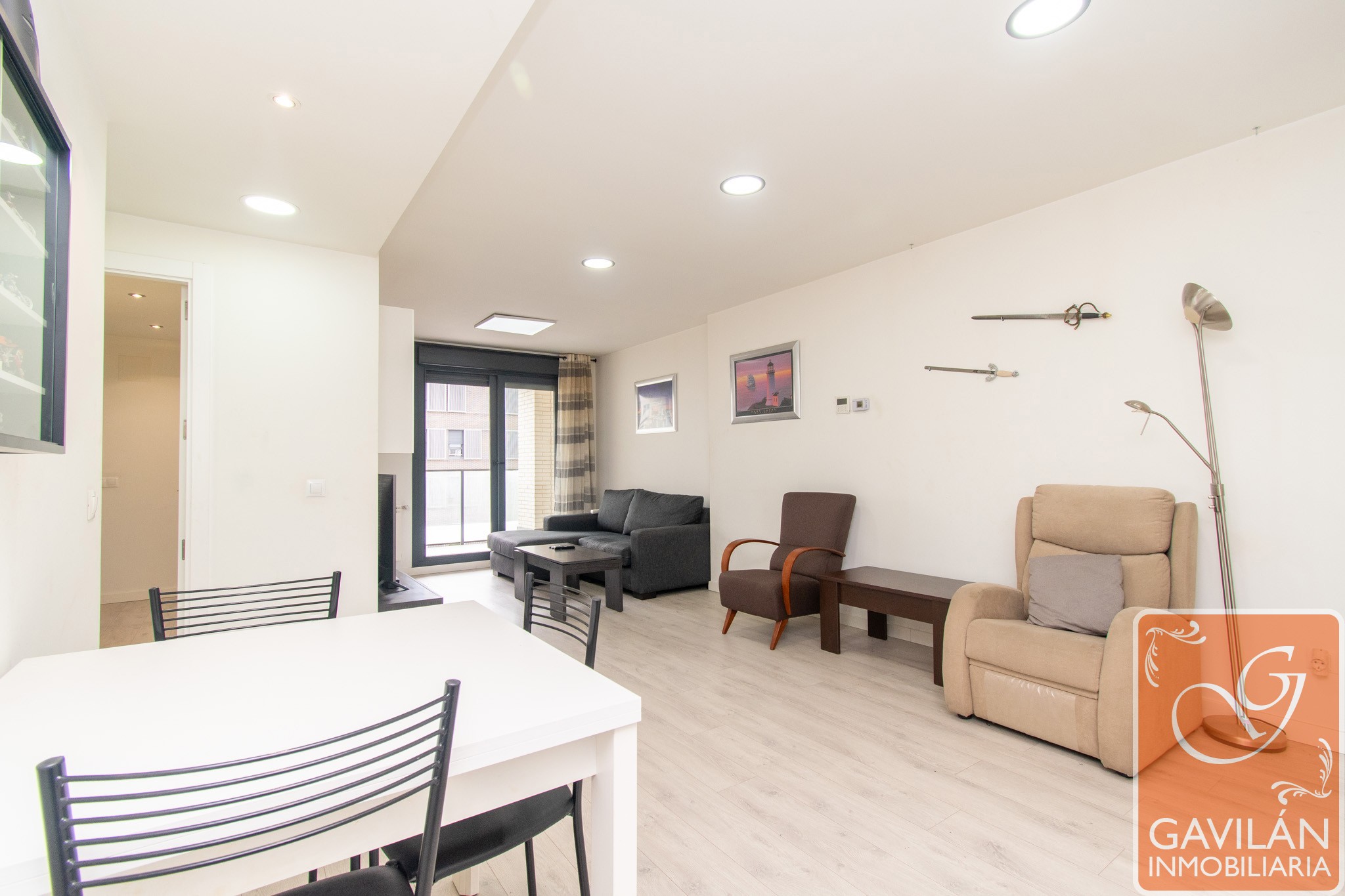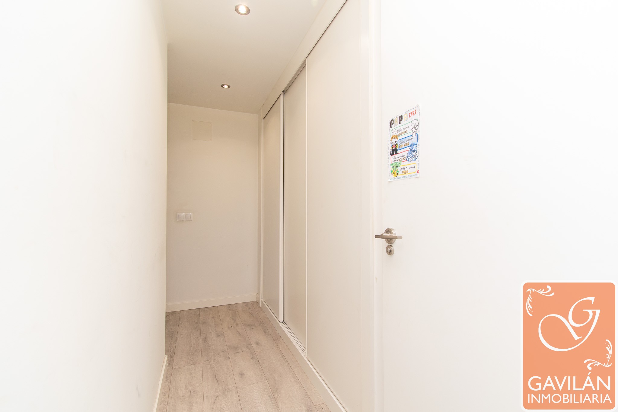 Puerta blindada de seguridad que permite acceder a la vivienda a través de un espectacular salón de 26 m², un espacio amplio, super luminoso y funcional, con armario empotrado, salida a una terraza techada de 4,65 m² con barandilla de cristal, perfecta para disfrutar al aire libre todo el año.