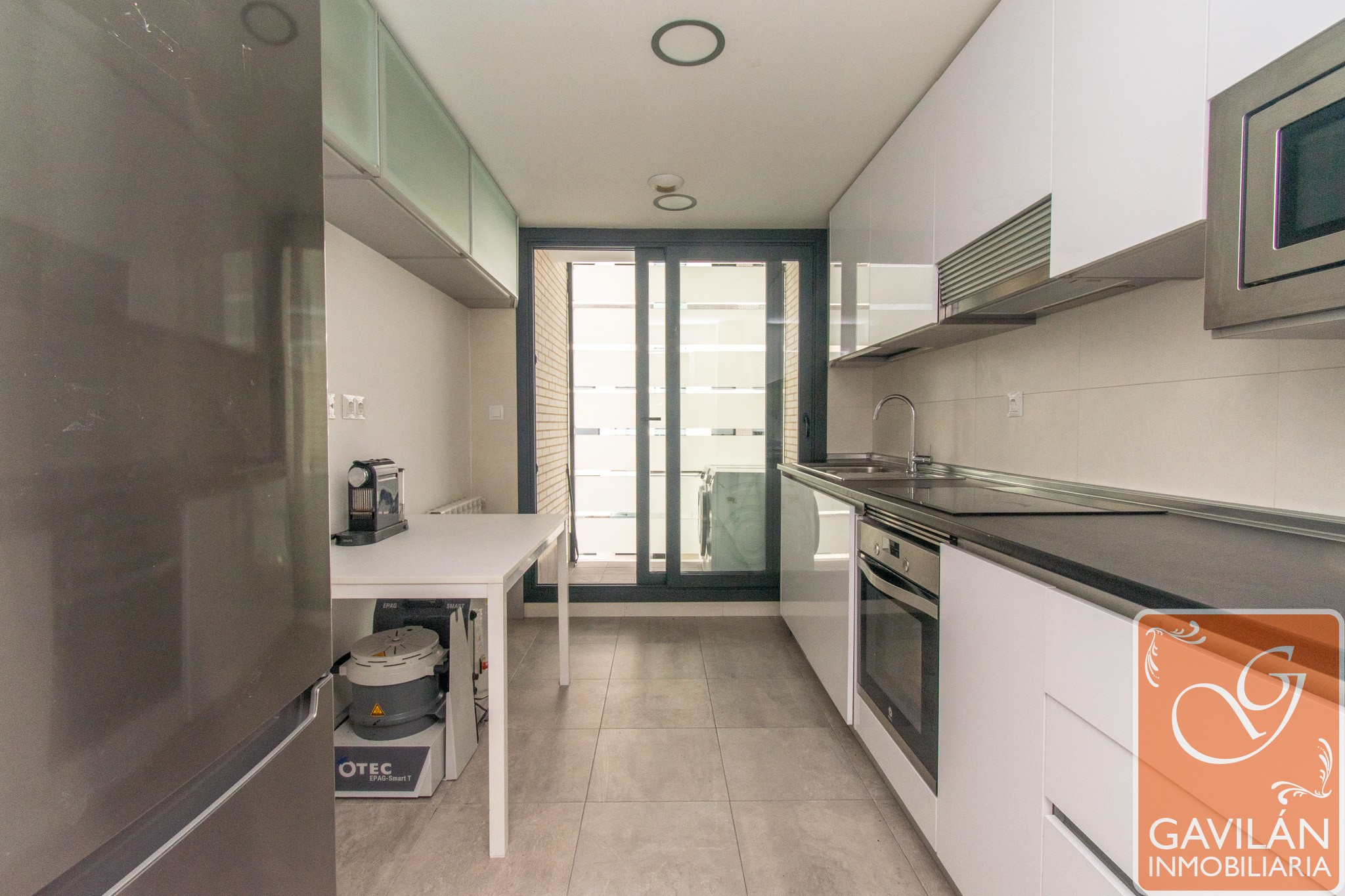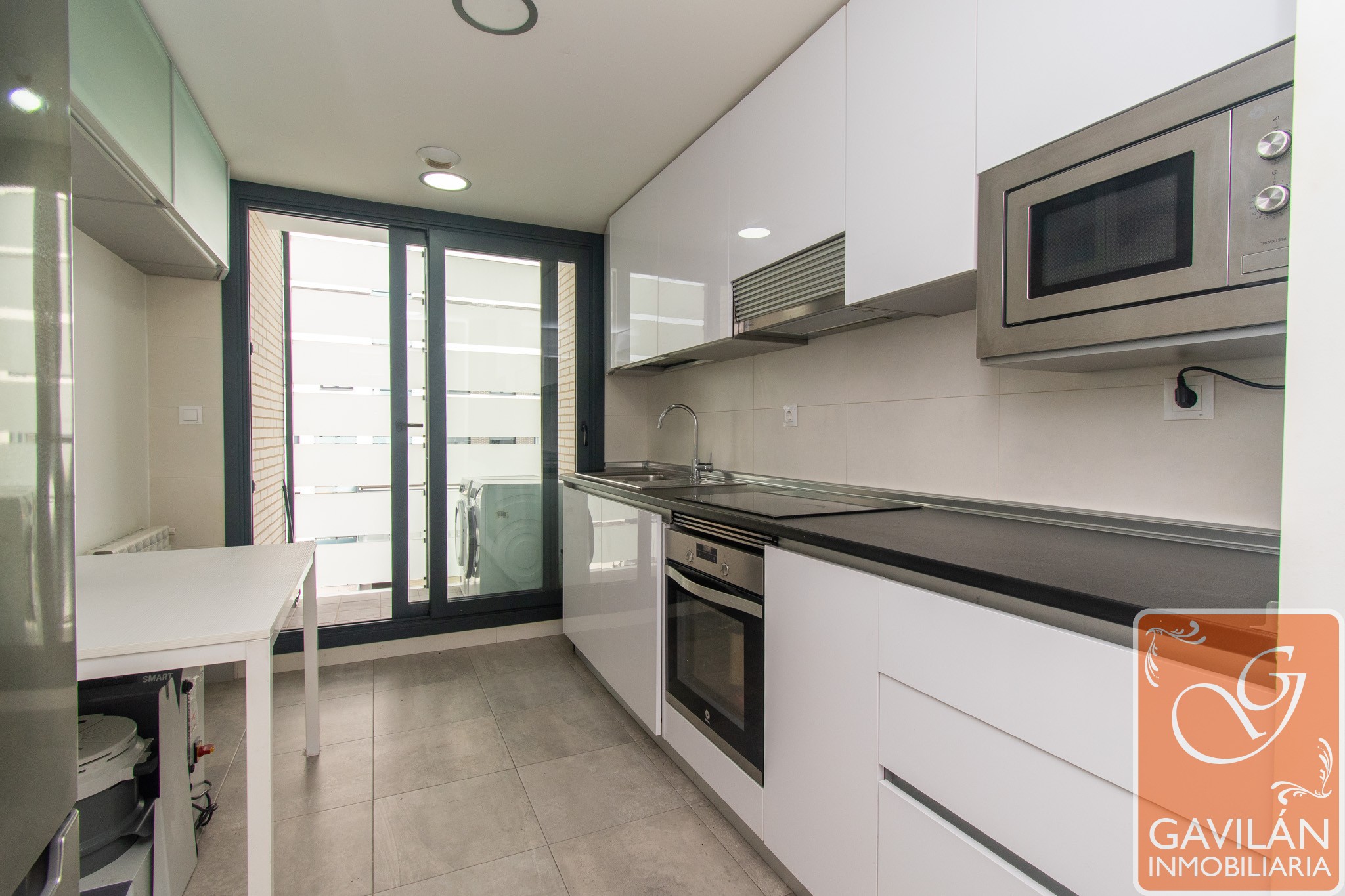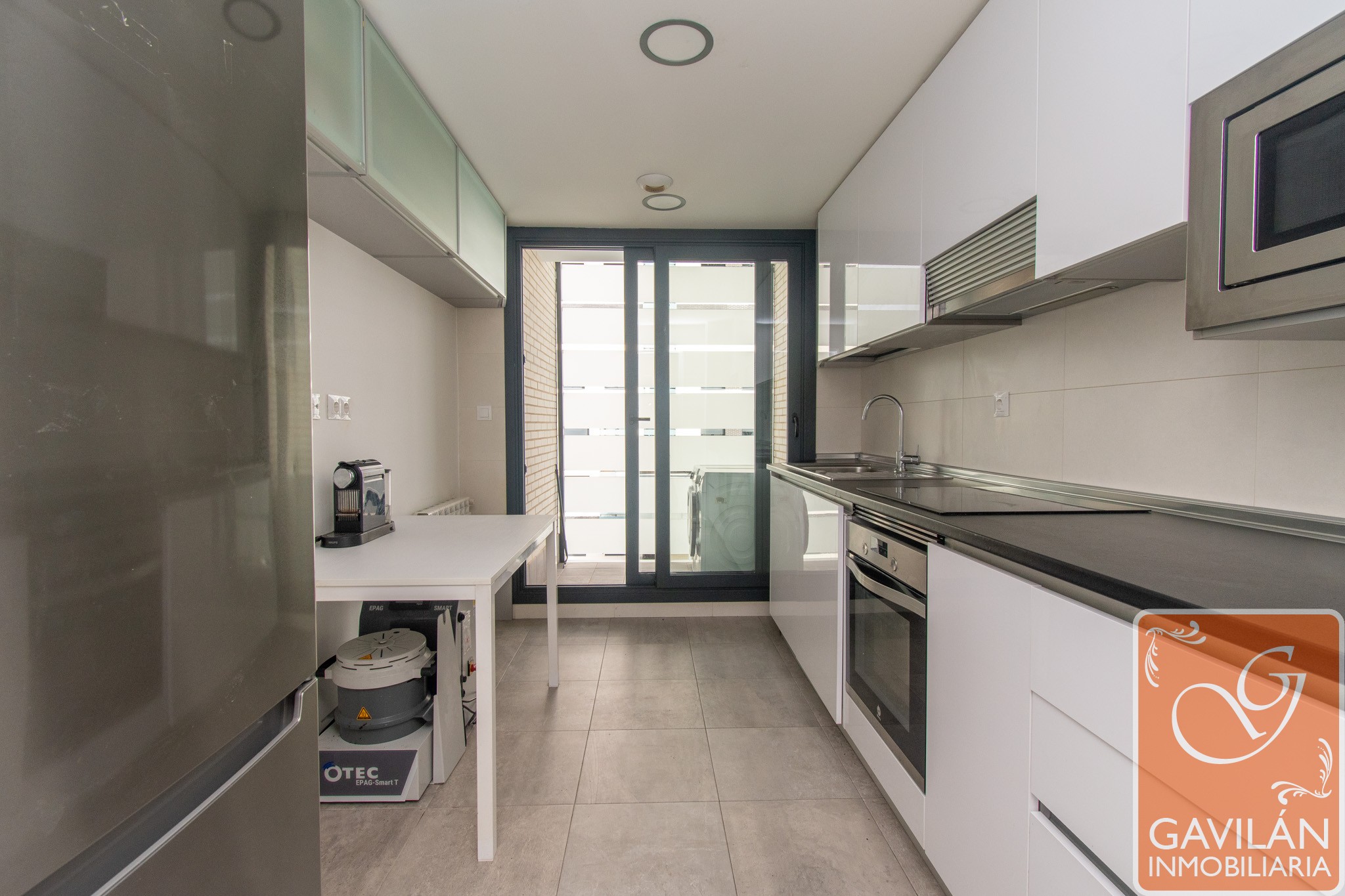 La cocina independiente de 8m², está totalmente equipada con muebles altos y bajos, electrodomésticos (horno, vitrocerámica, microondas y campana Balay), muy bien diseñada con espacio para comer en familia. Cuenta además con salida a un práctico tendedero semiabierto con mucha capacidad.