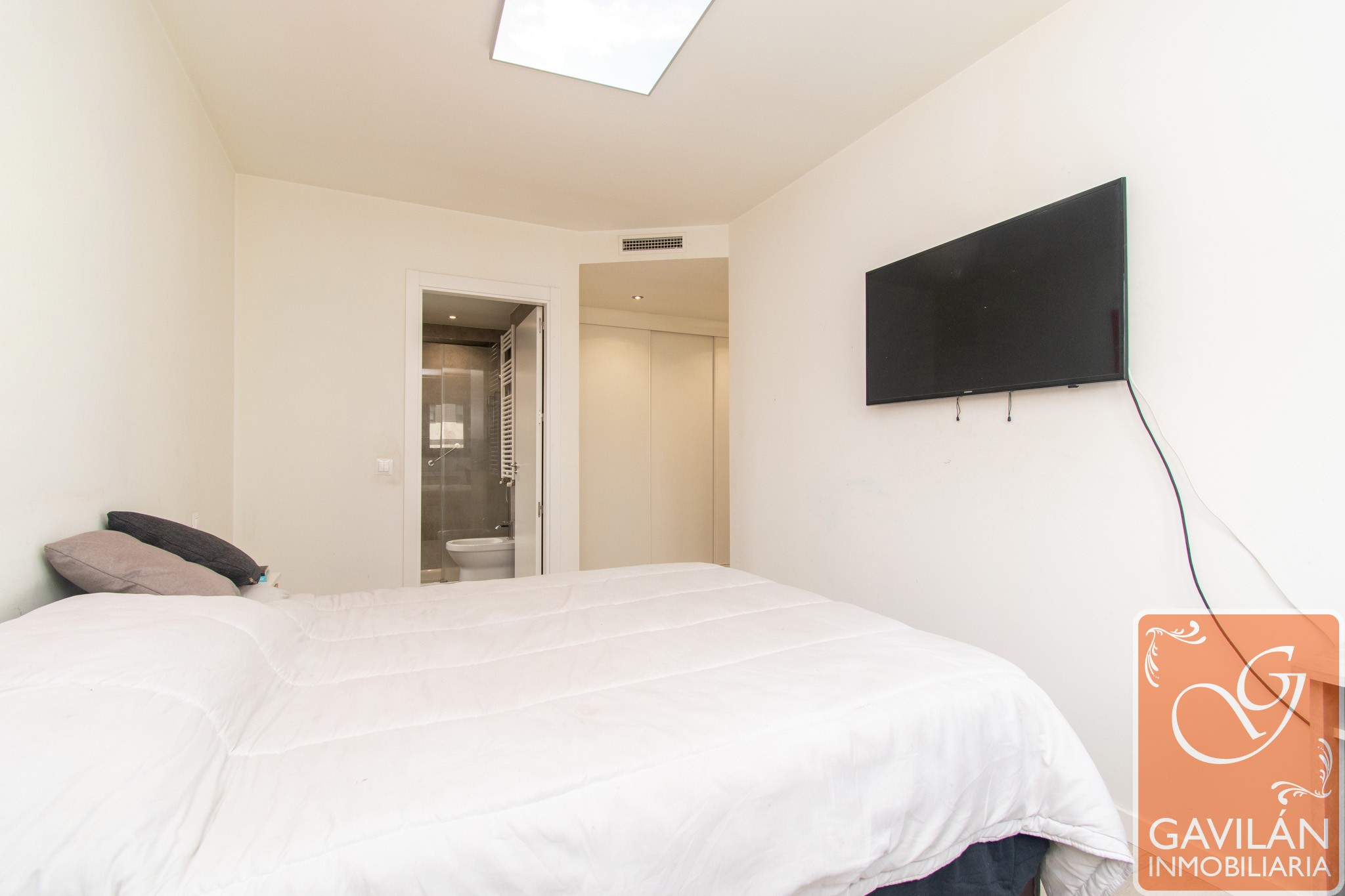 •Dormitorio principal en suite de 16 m², con armario empotrado de tres puertas, A/A canalizado y baño completo con ventana, plato de ducha con mampara, radiador toallero, bidet y lavabo.