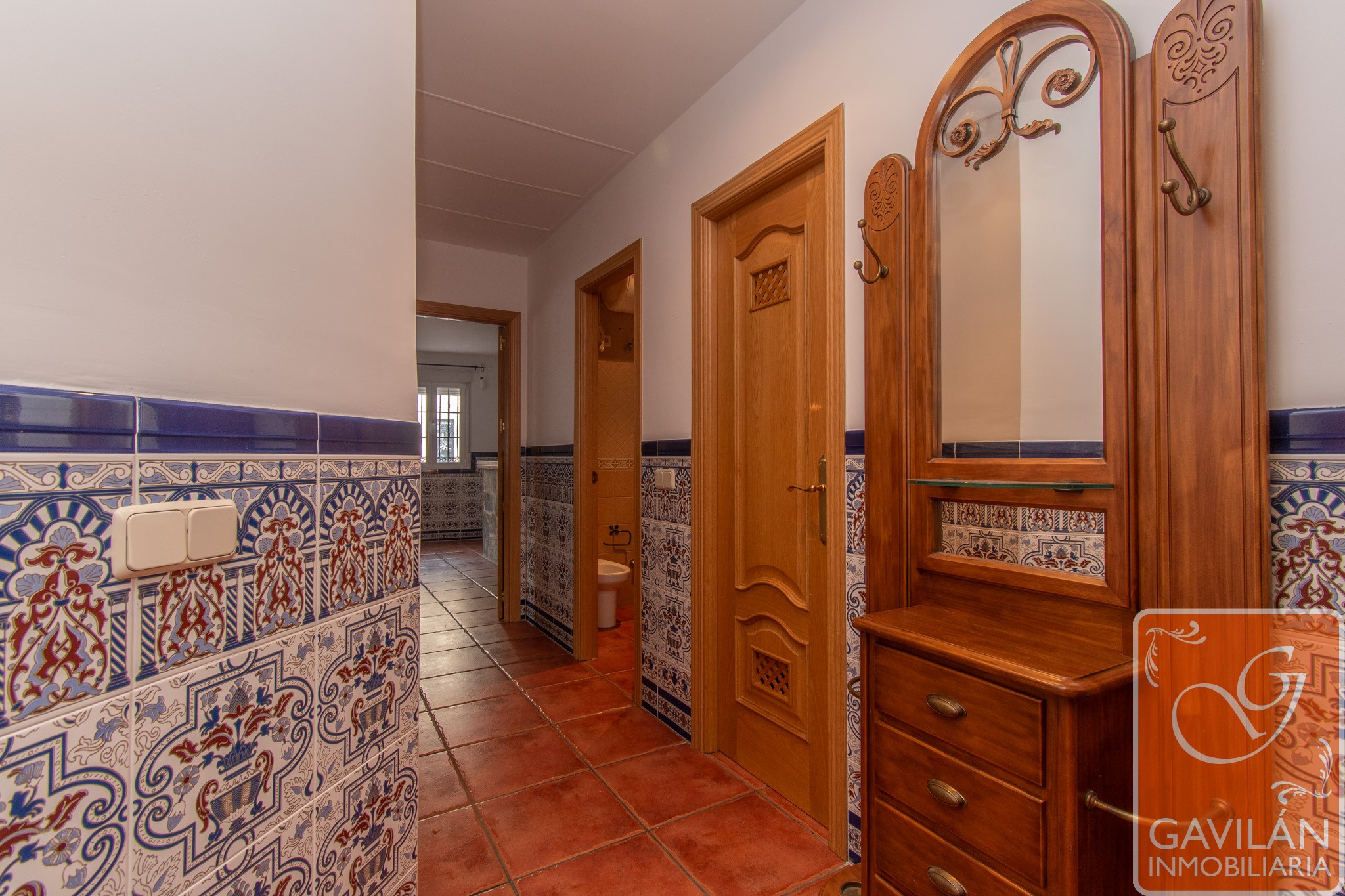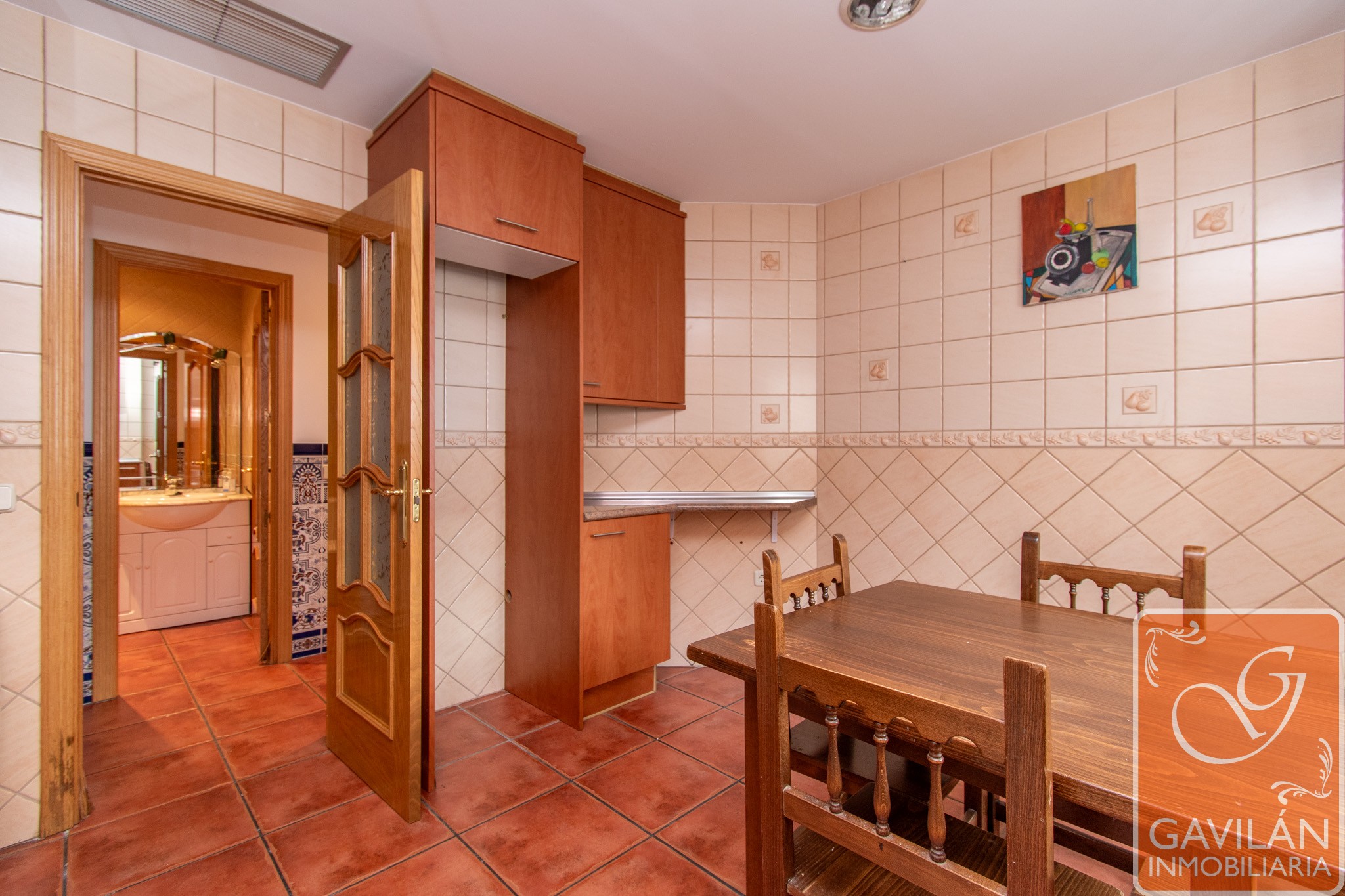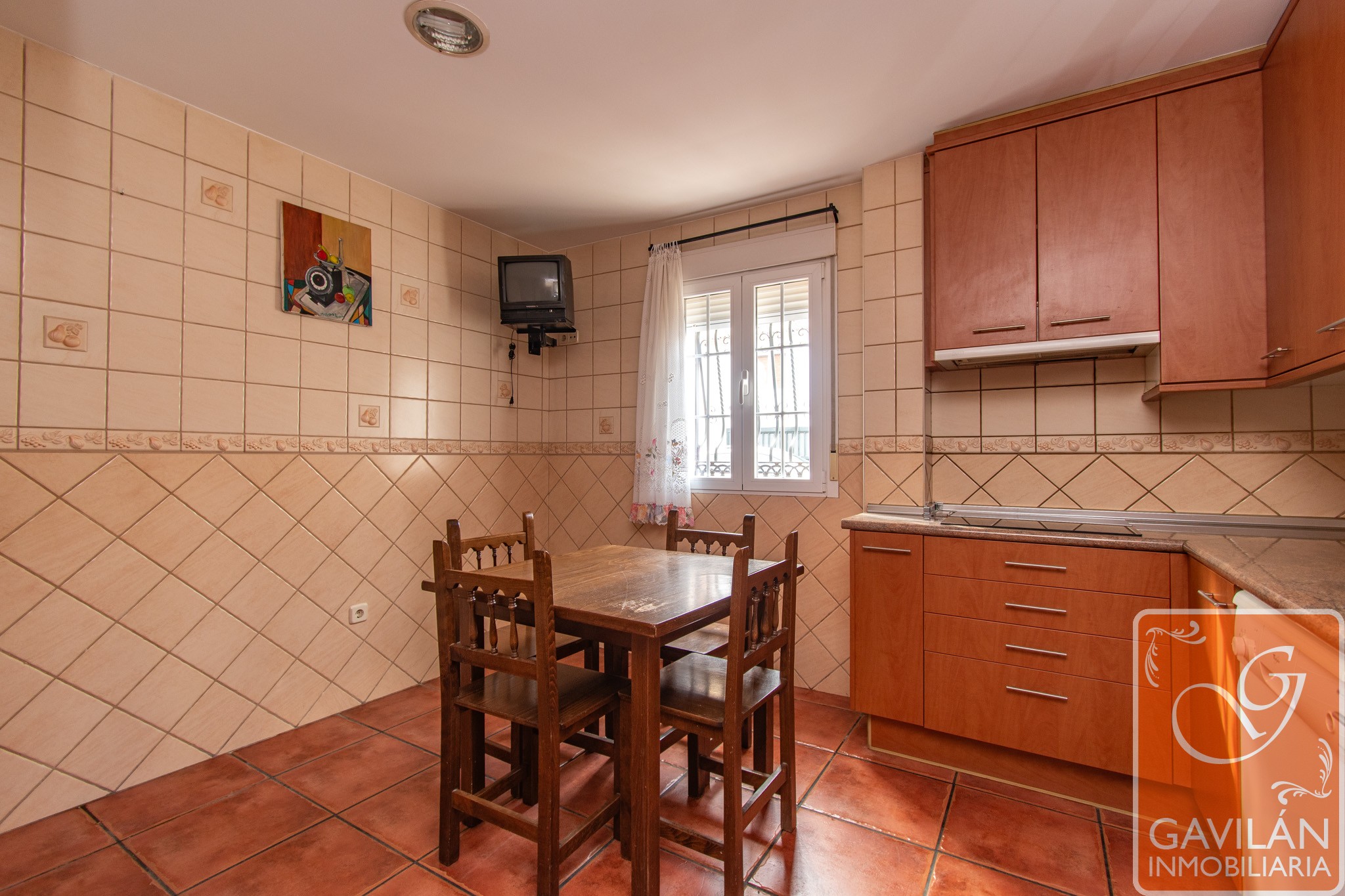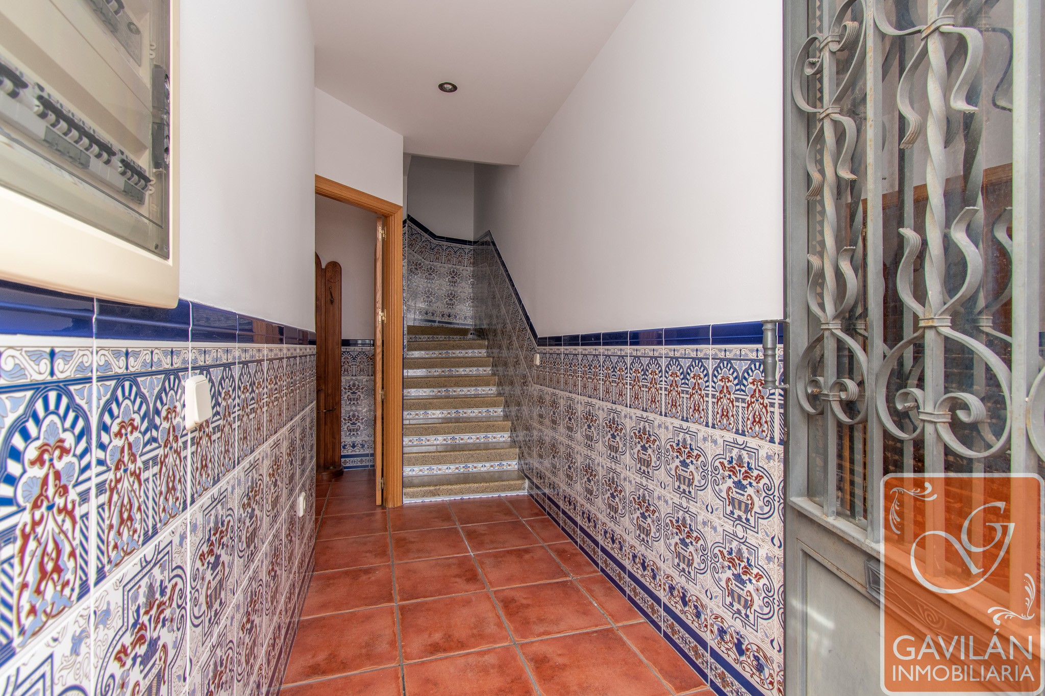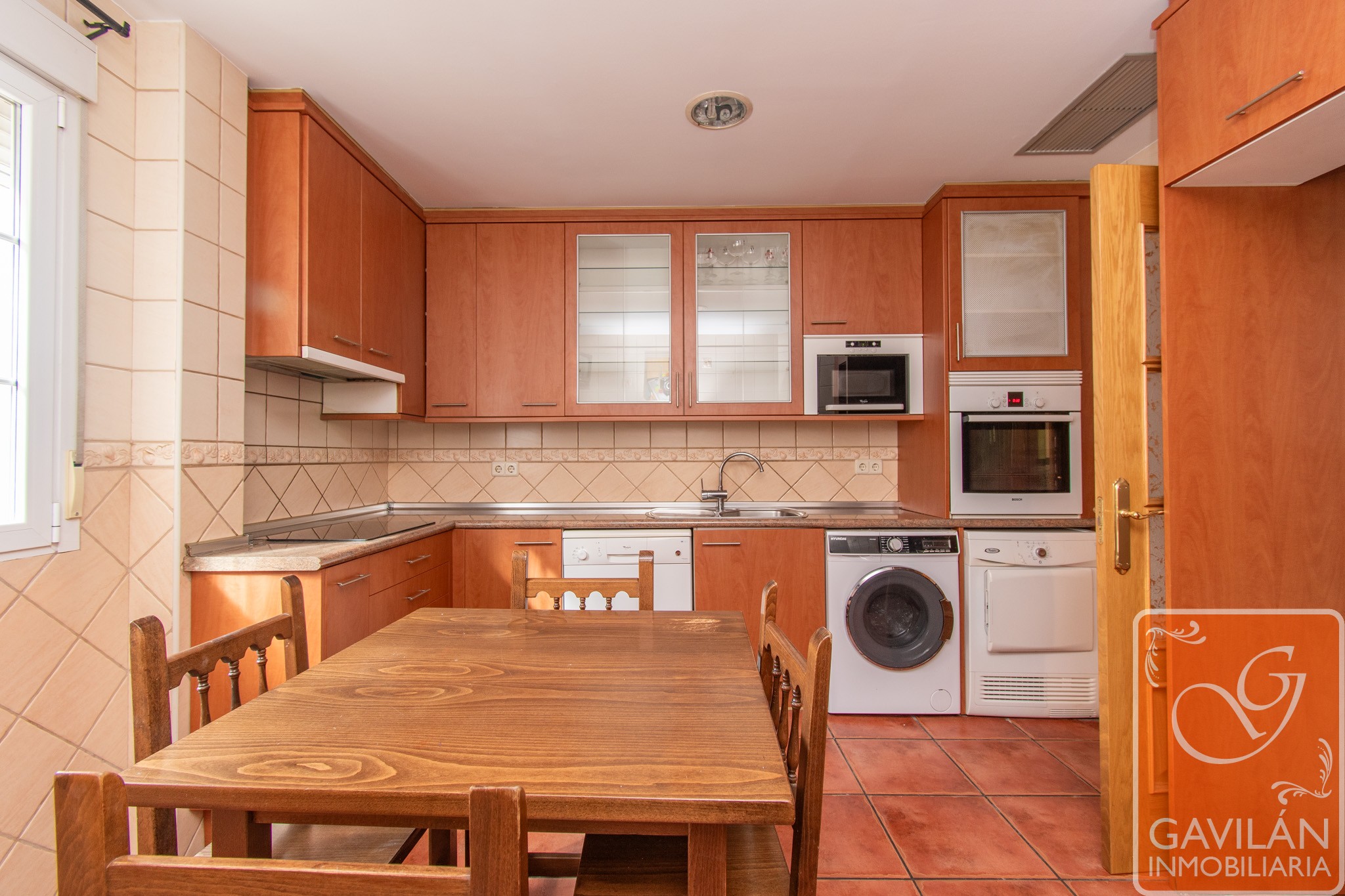 La entrada a la vivienda es a través de una puerta de hierro que da un detalle único. La planta baja se organiza de forma práctica y acogedora, comenzando por un elegante recibidor que da paso a una cocina amplia y funcional, con buena capacidad de almacenaje e iluminación.