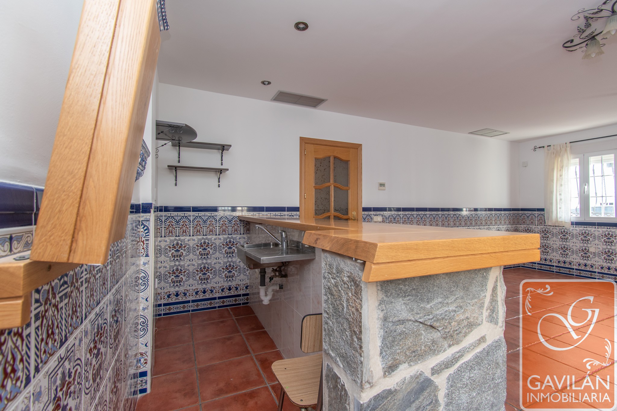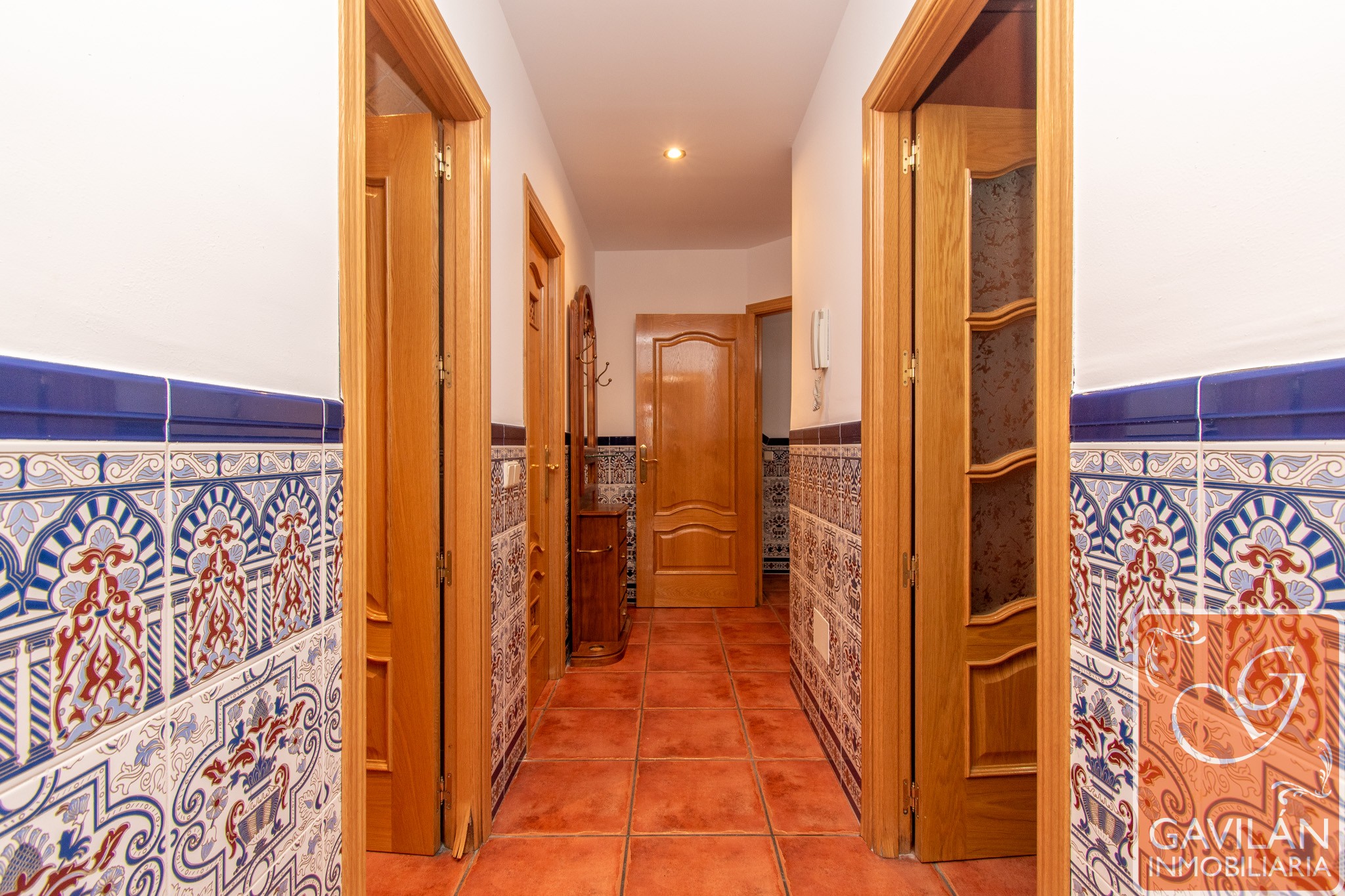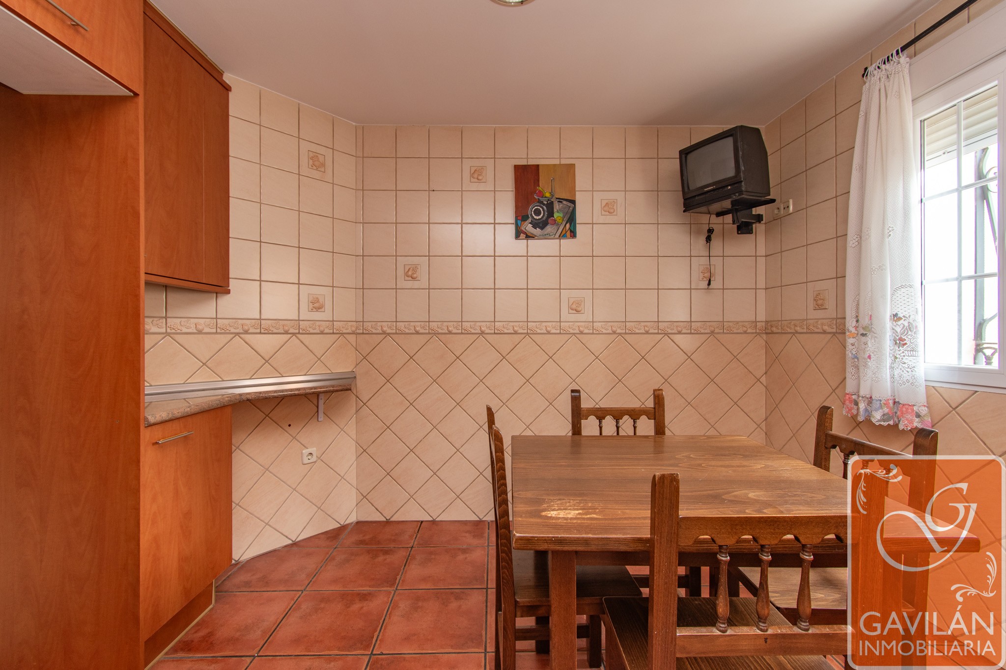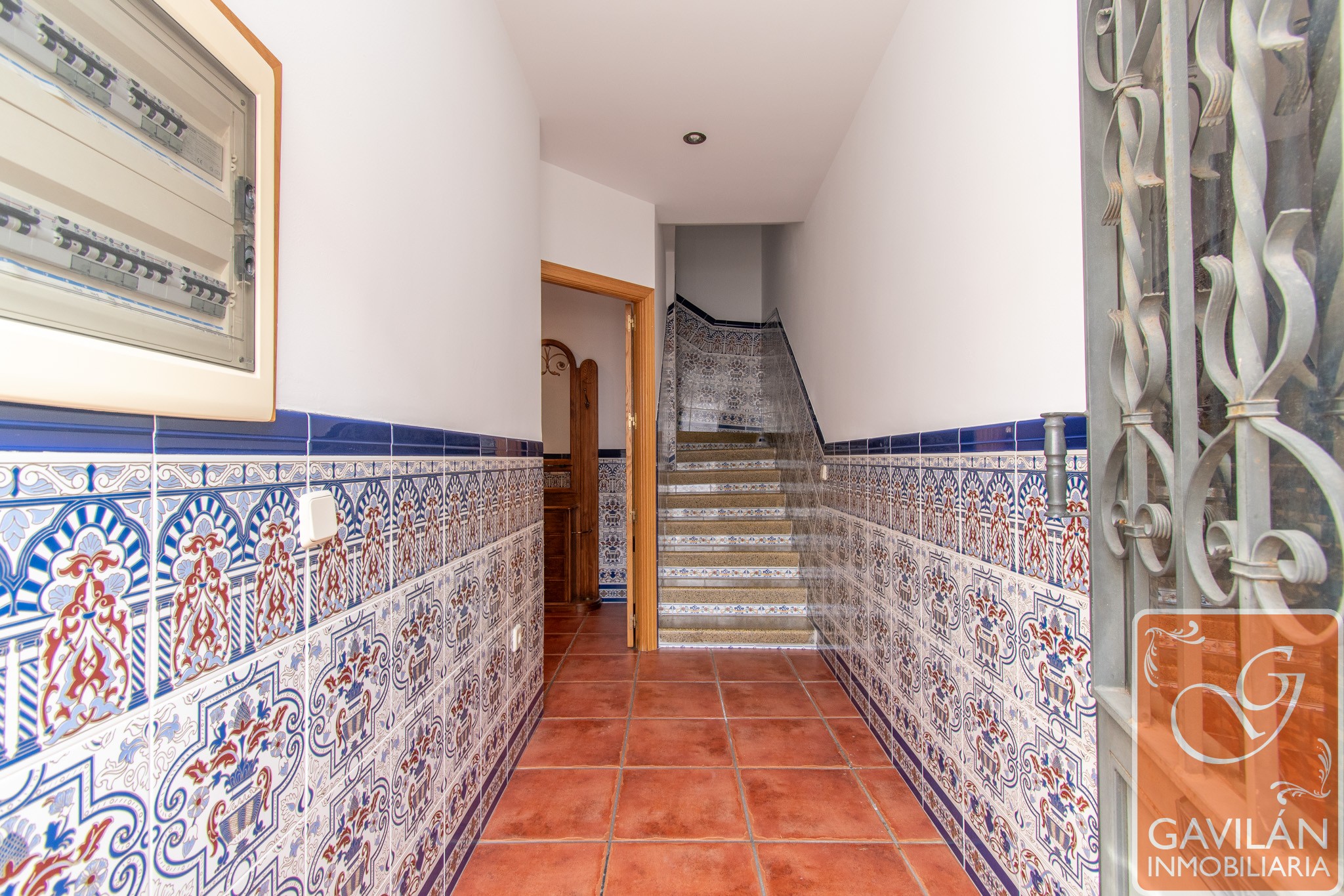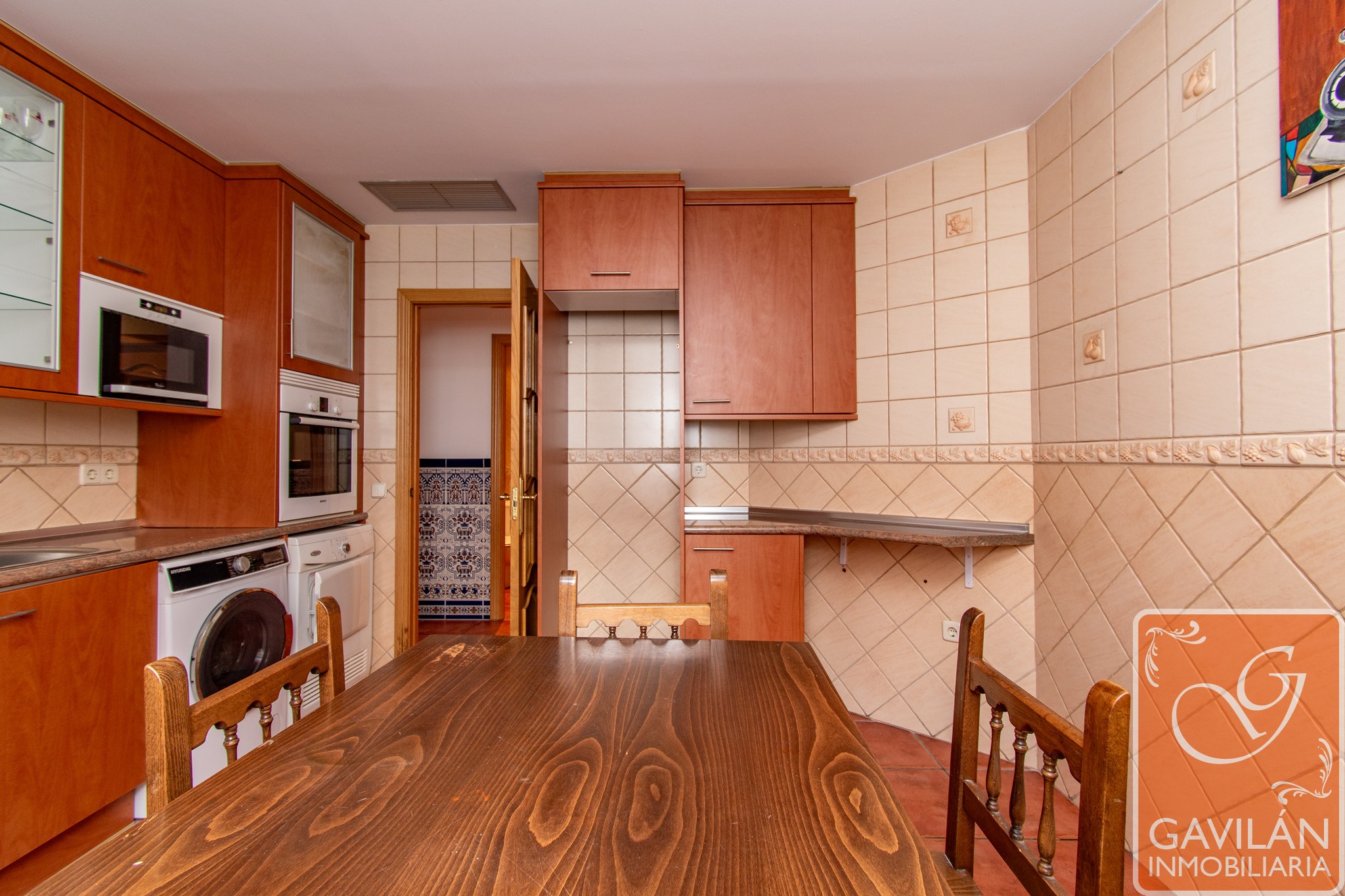 La entrada a la vivienda es a través de una puerta de hierro que da un detalle único. La planta baja se organiza de forma práctica y acogedora, comenzando por un elegante recibidor que da paso a una cocina amplia y funcional, con buena capacidad de almacenaje e iluminación.