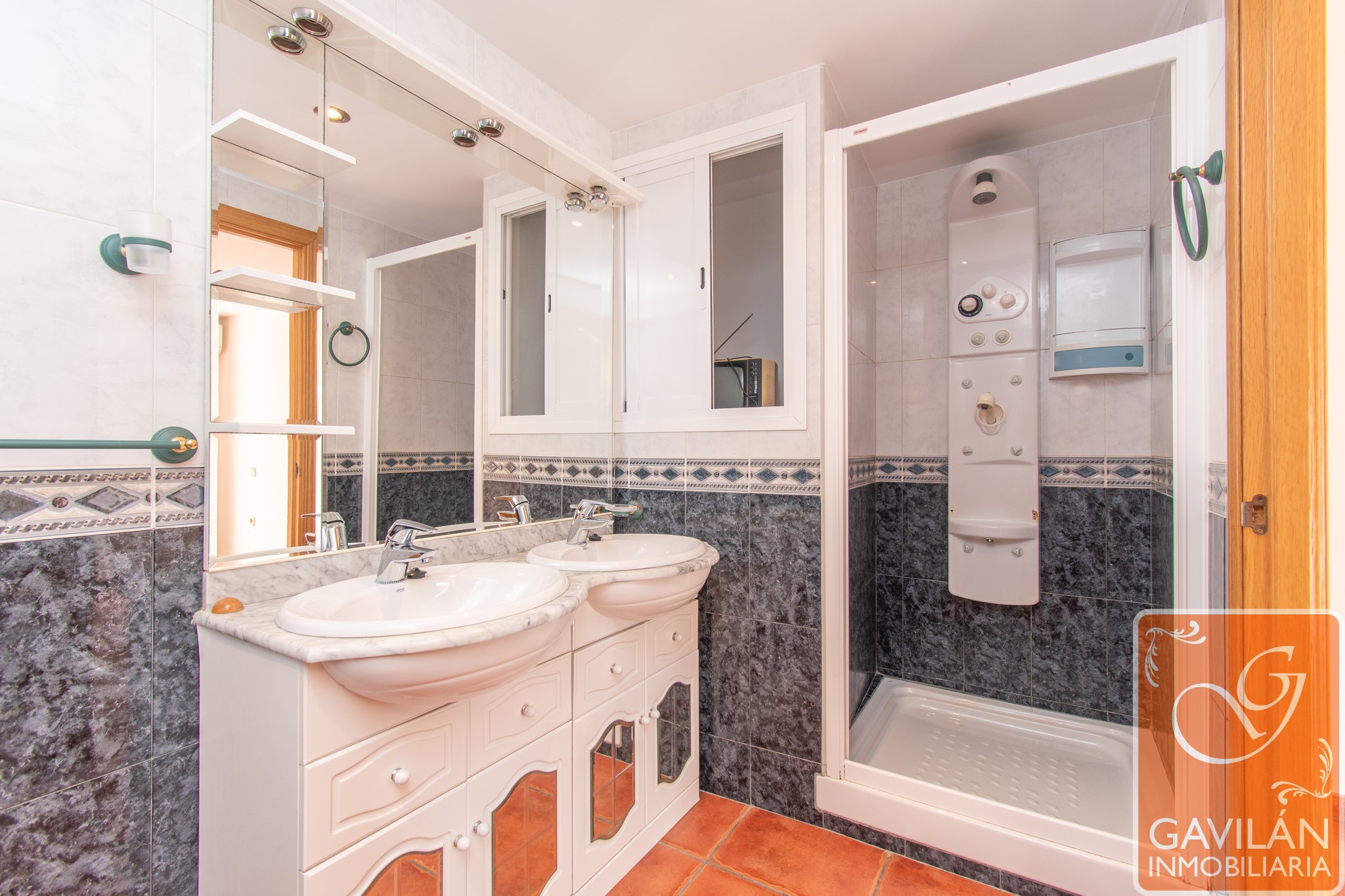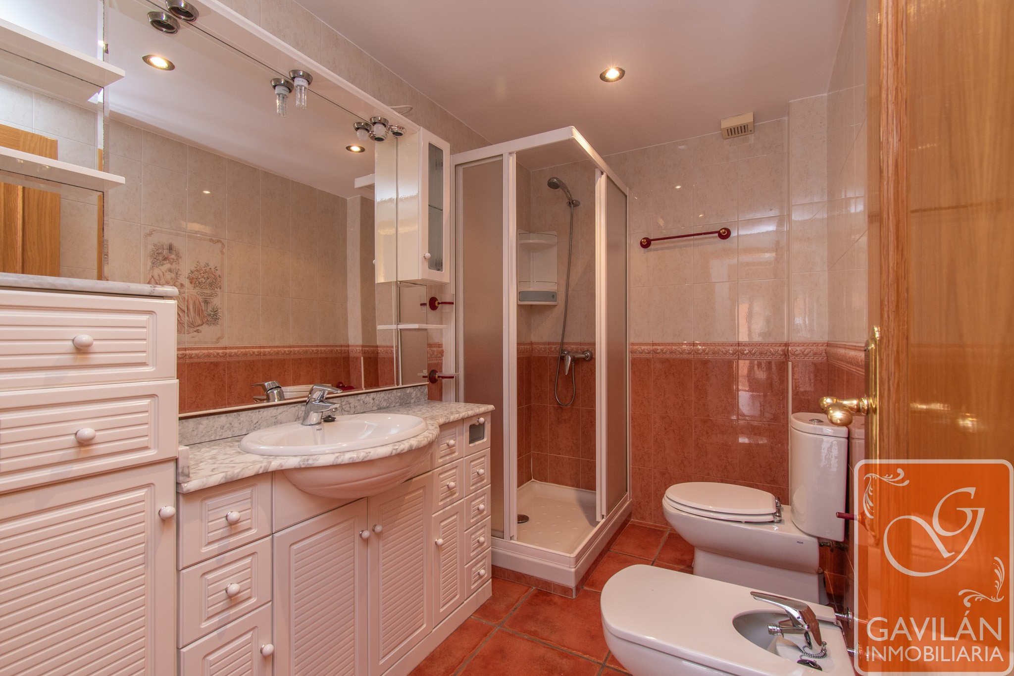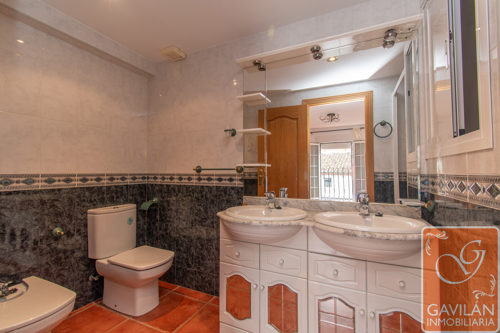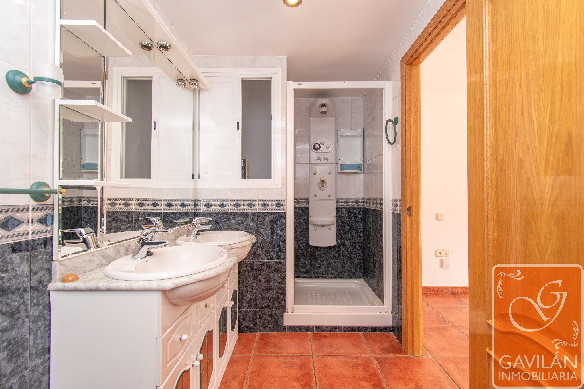 La planta superior, ofrece una distribución cómoda y bien diferenciada. El dormitorio principal en suite cuenta con armarios empotrados, aire acondicionado con bomba de calor, salida a balcón y un baño completo con ducha de hidromasaje, doble lavabo y un espacio de almacenaje independiente.
