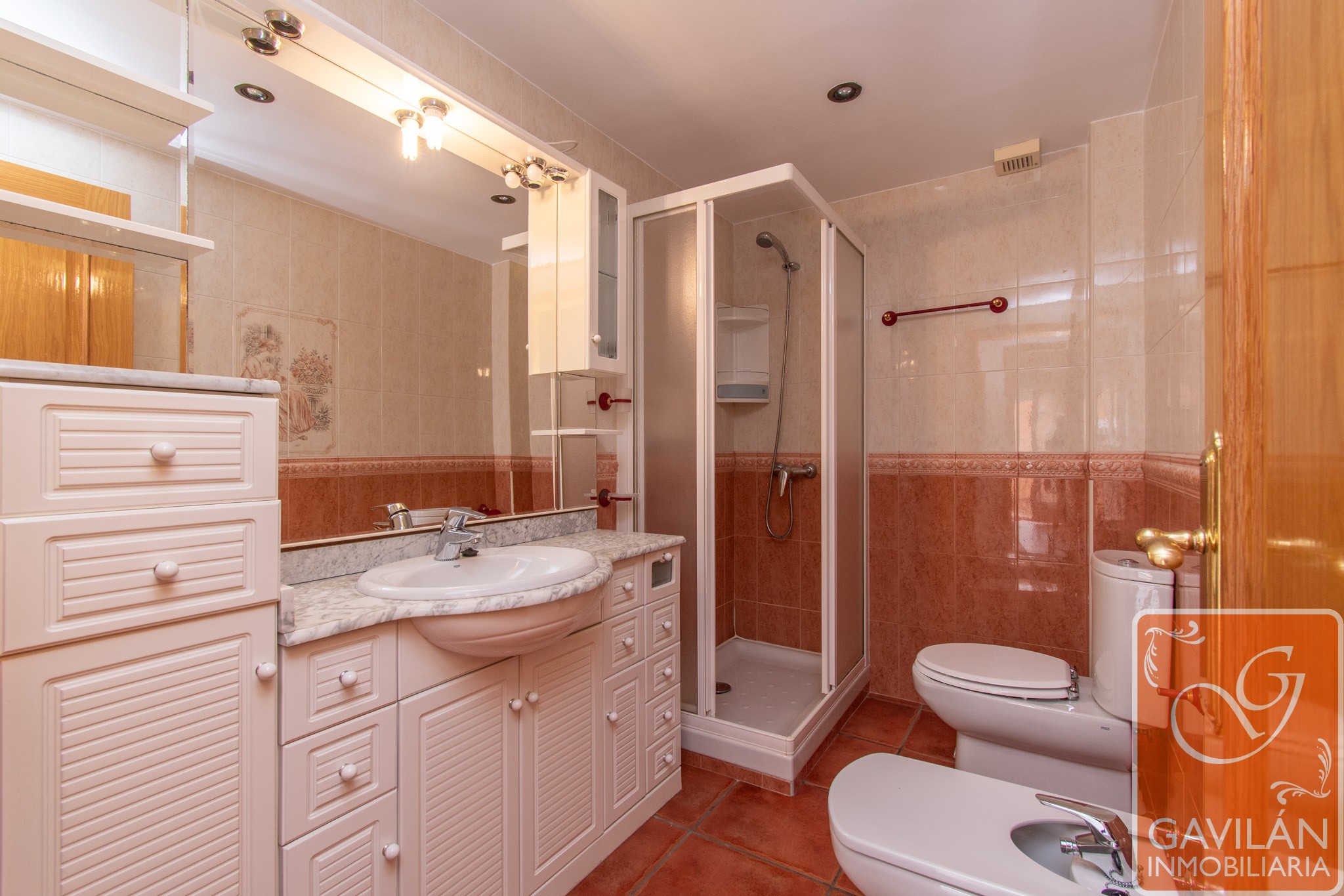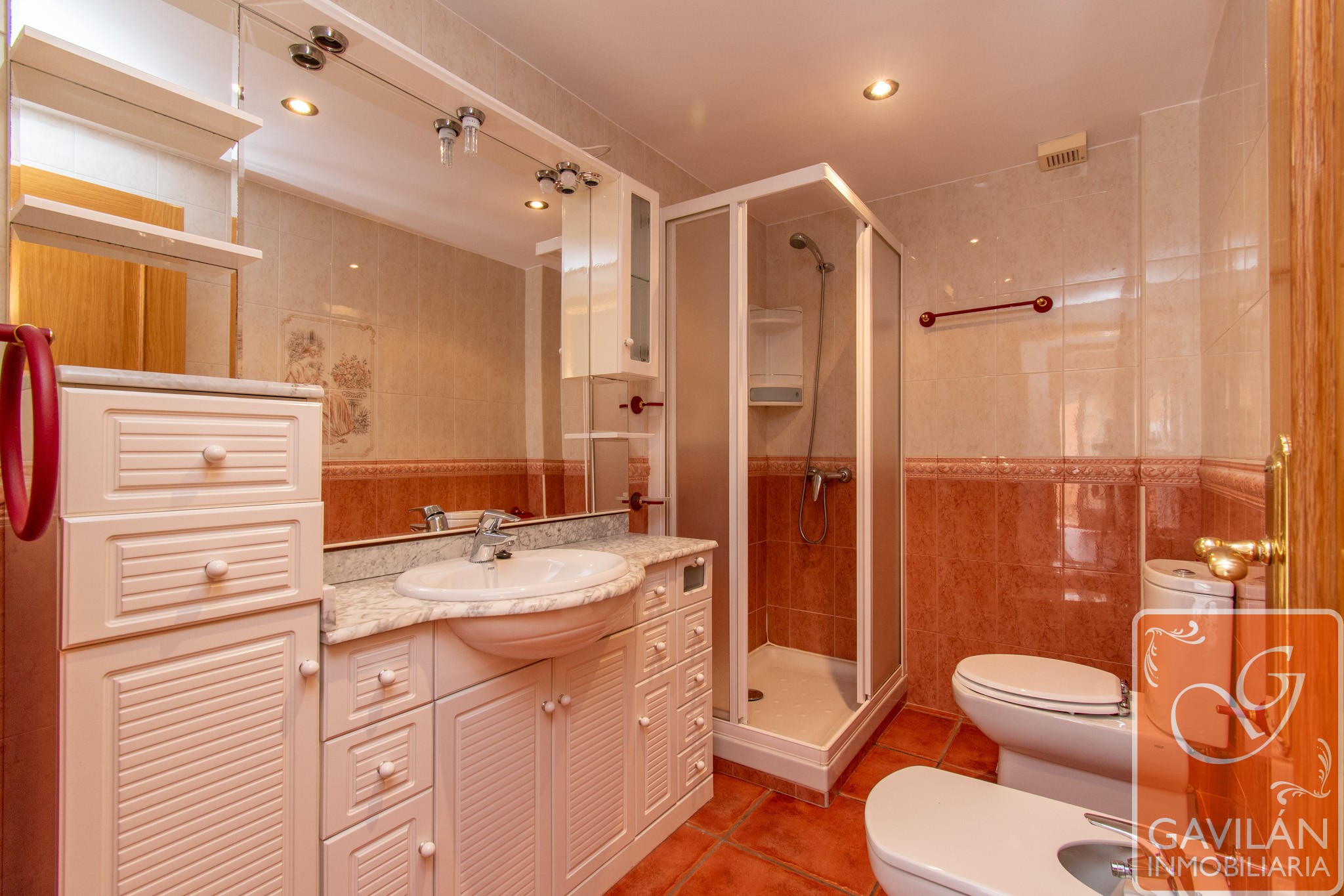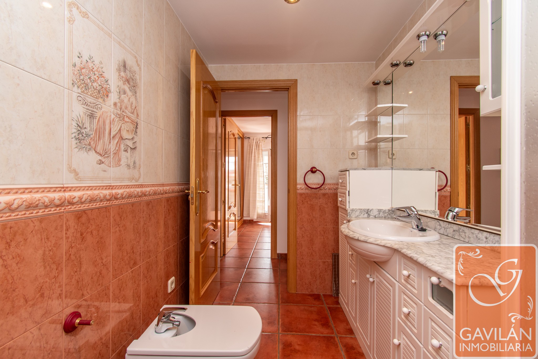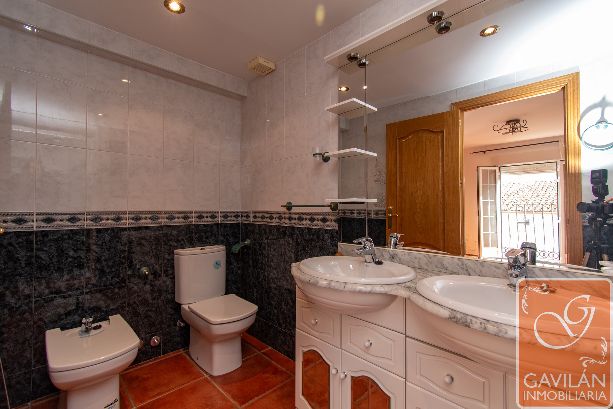 La planta superior, ofrece una distribución cómoda y bien diferenciada. El dormitorio principal en suite cuenta con armarios empotrados, aire acondicionado con bomba de calor, salida a balcón y un baño completo con ducha de hidromasaje, doble lavabo y un espacio de almacenaje independiente.